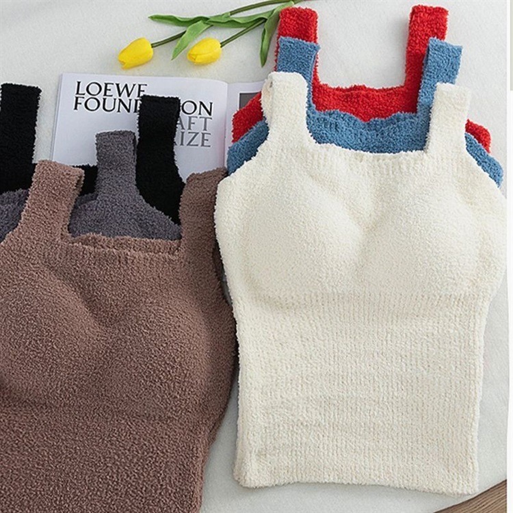 Fleece And Thickened Design Plush Thermal Vest With A Chest Pad Tops