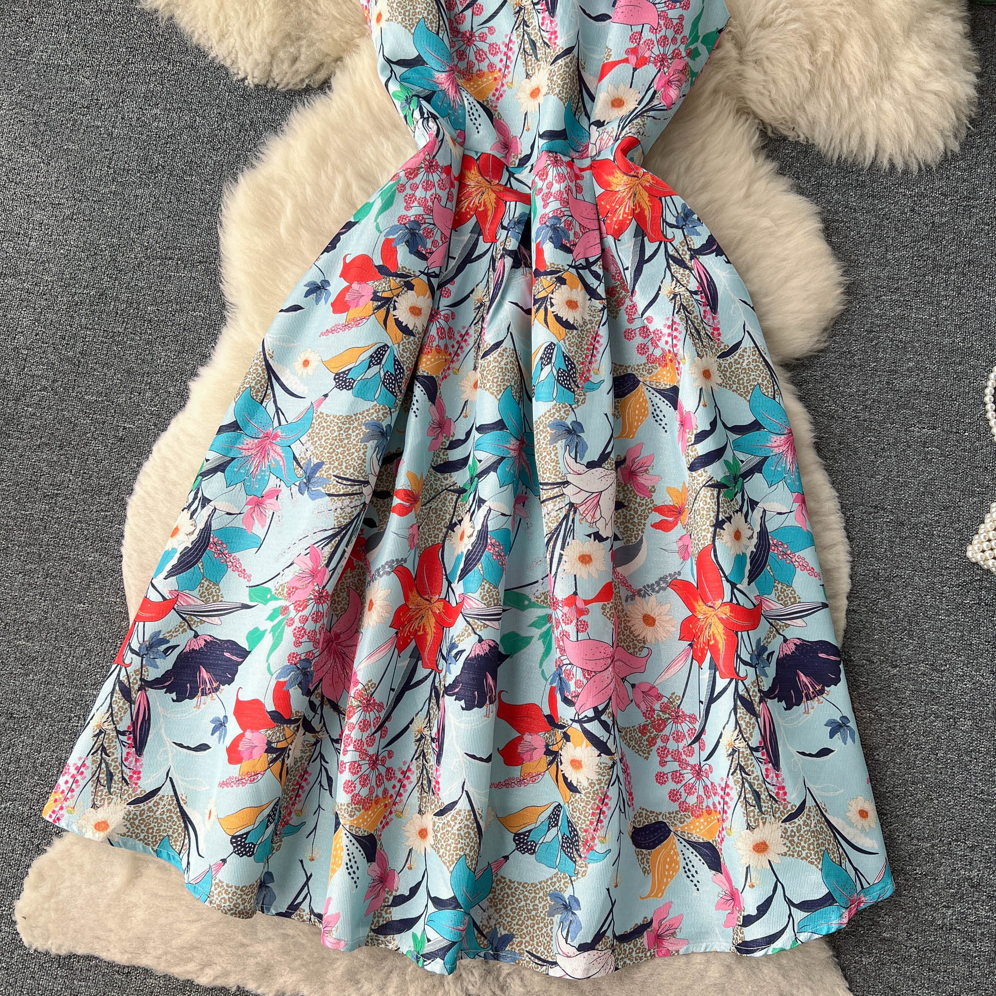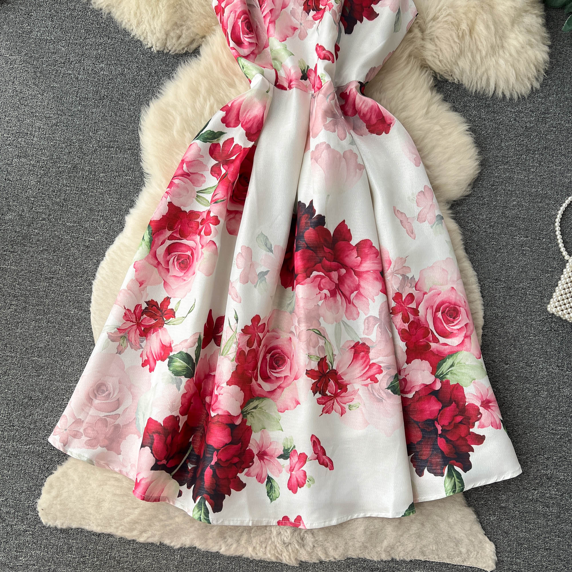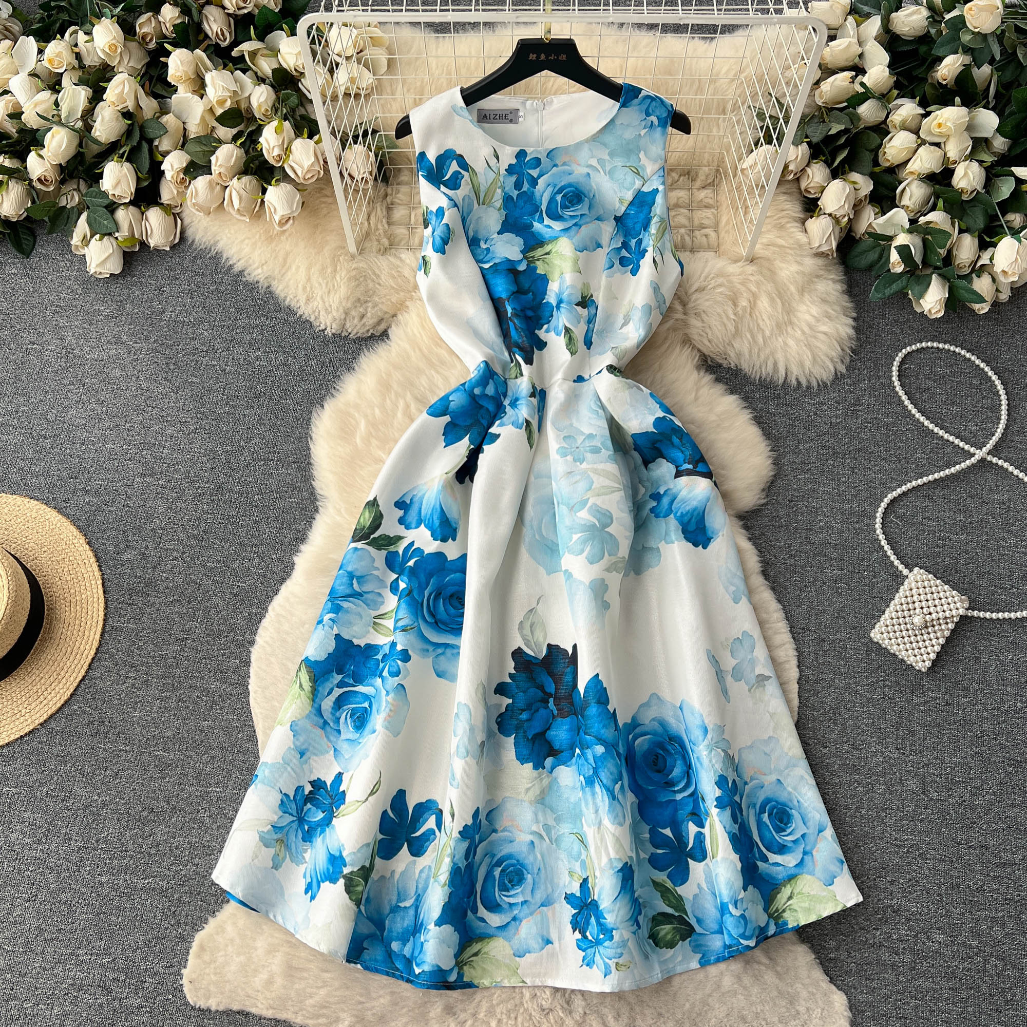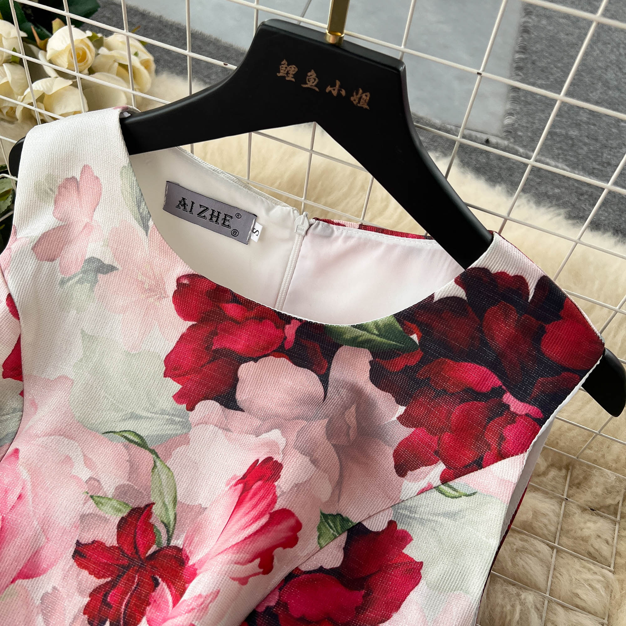 Floral Elegant Sleeveless Pleated Waist-Defining Skirt Dress For Women