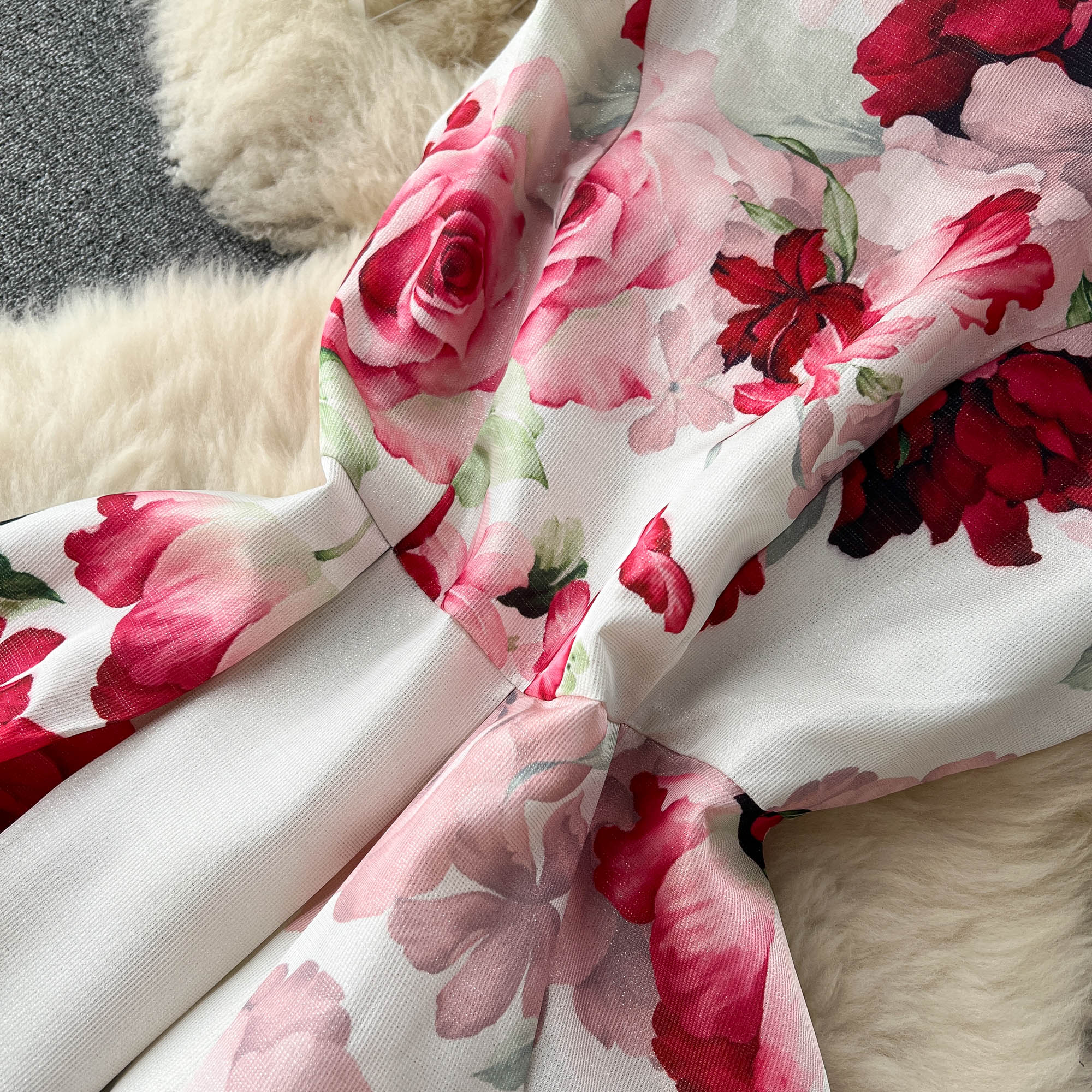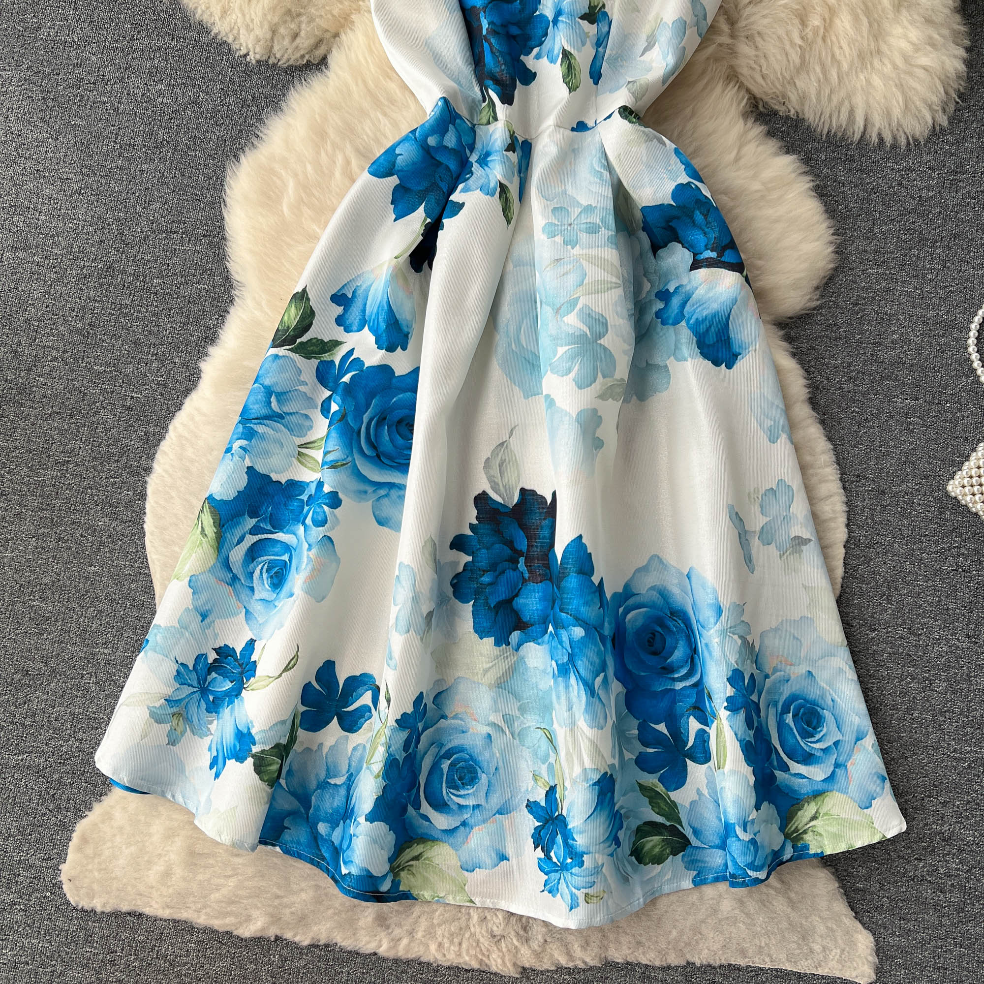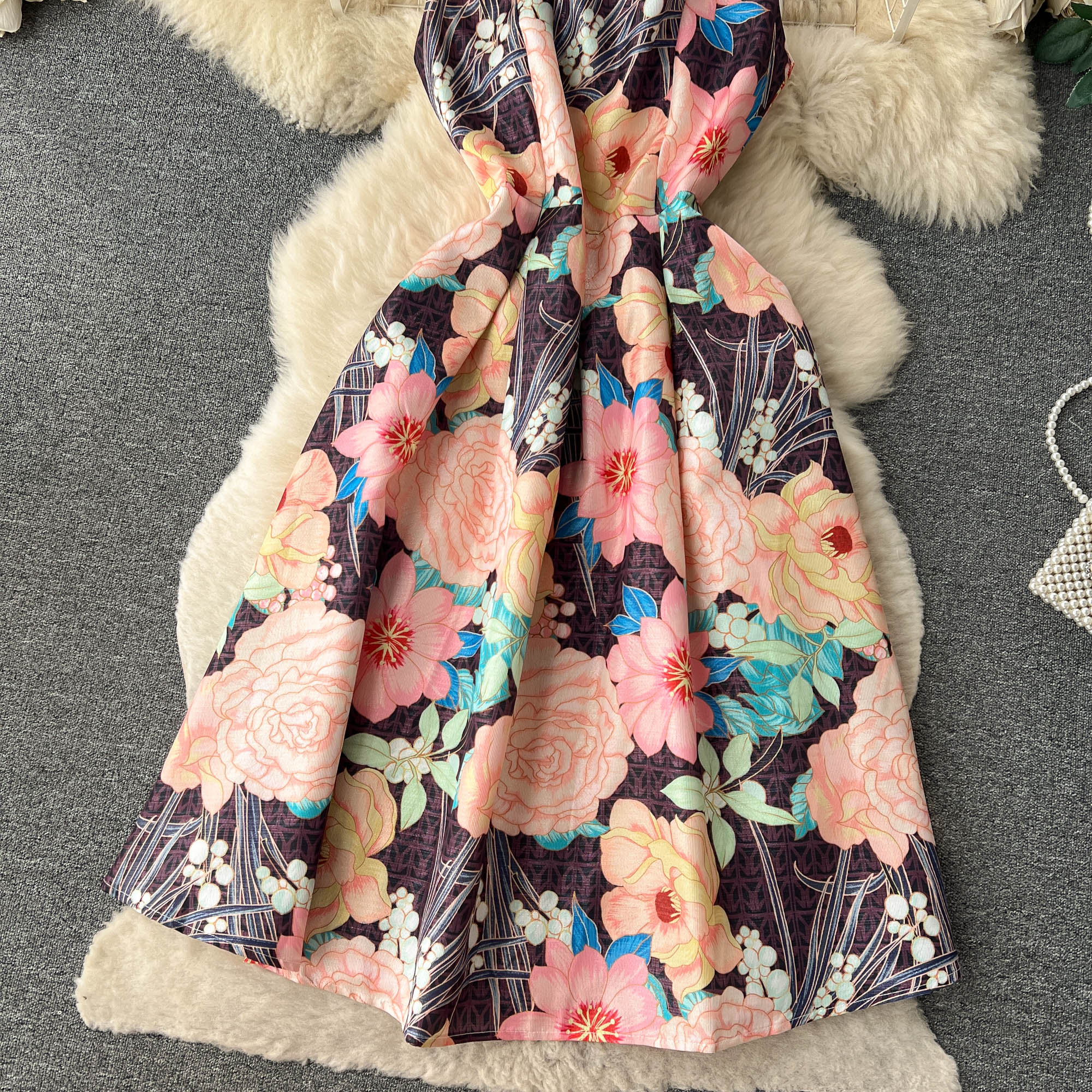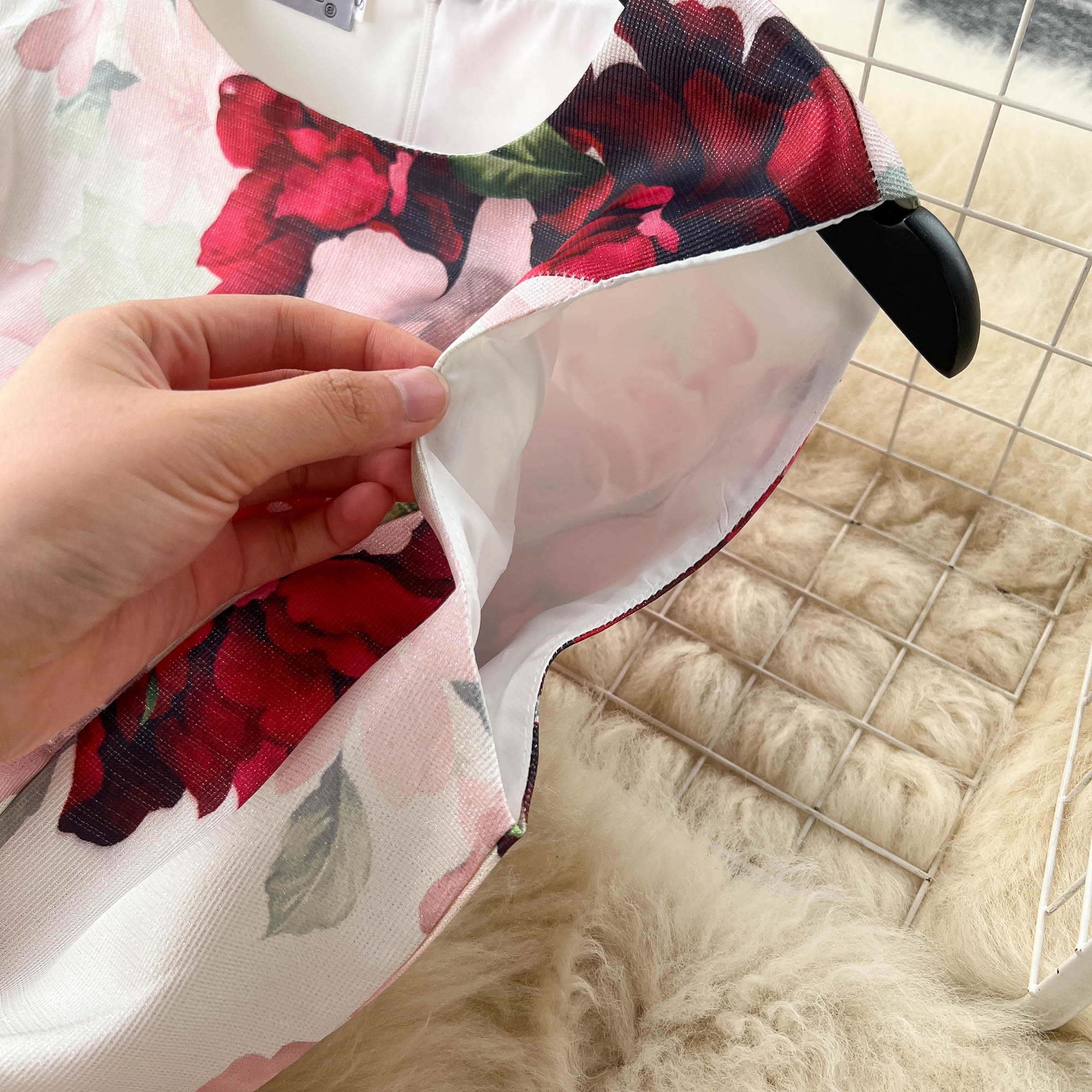 Floral Elegant Sleeveless Pleated Waist-Defining Skirt Dress For Women