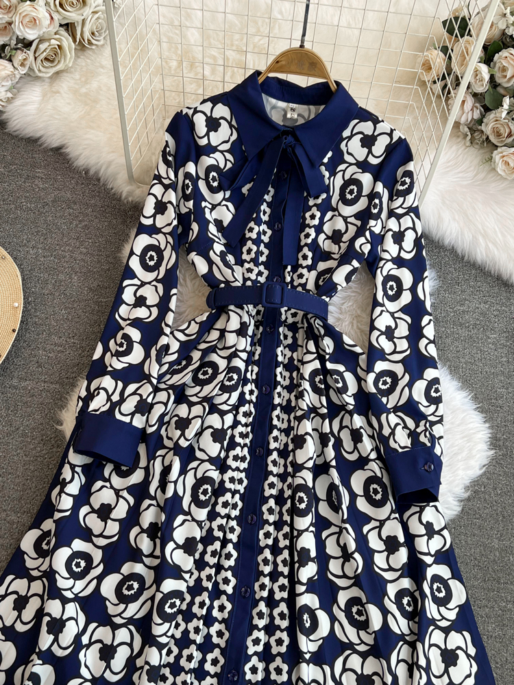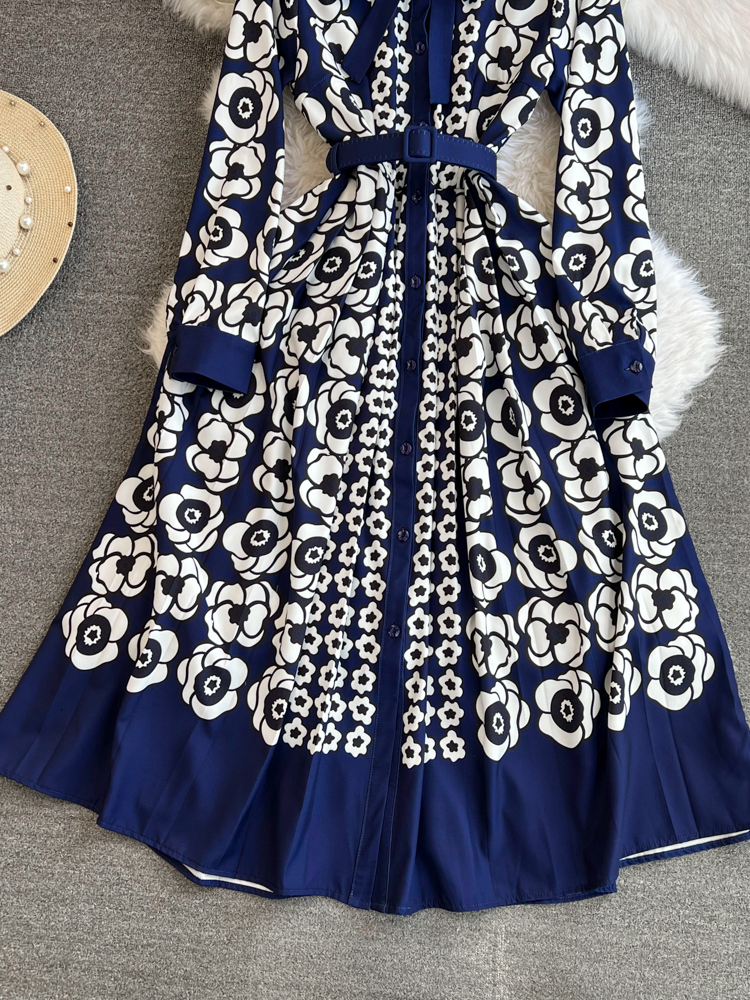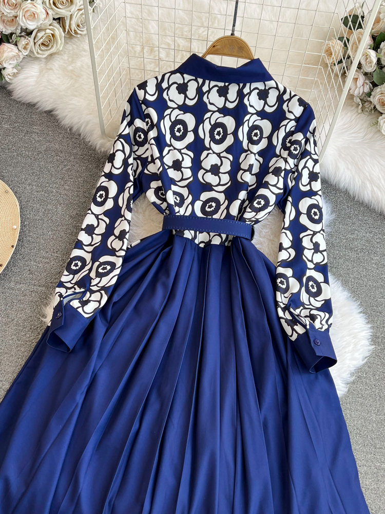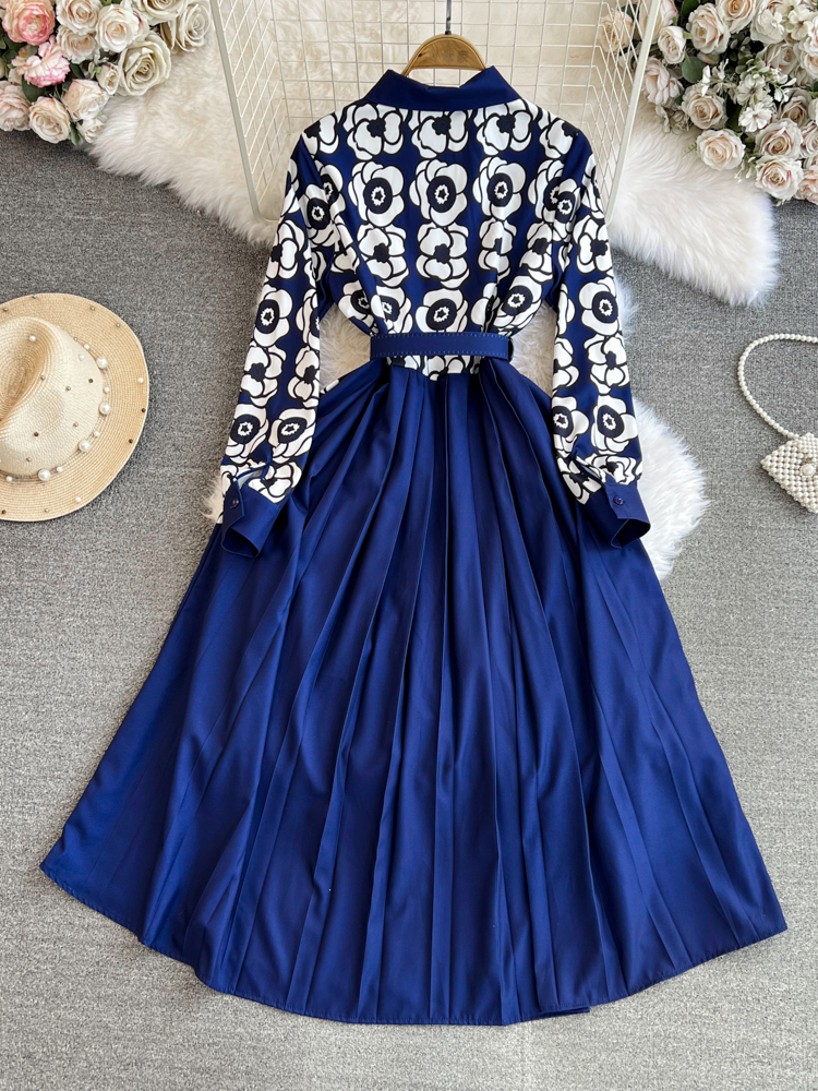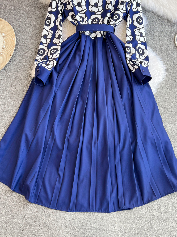 Flowy Flair Temperament Dress with Long Sleeves and Cinched Waist