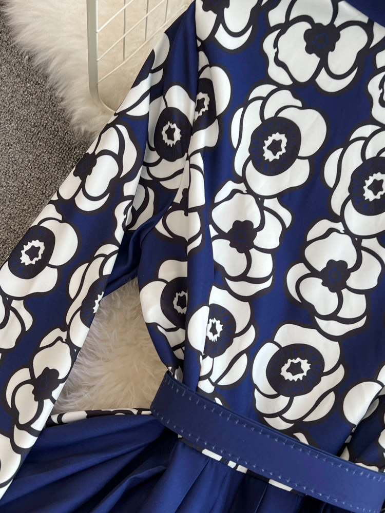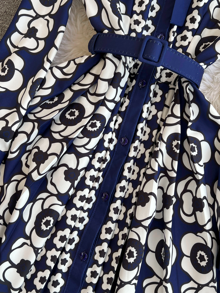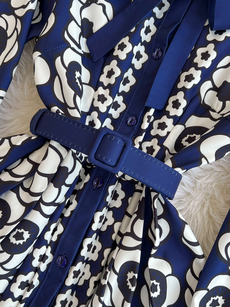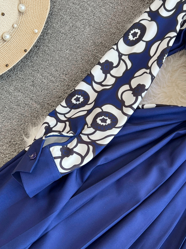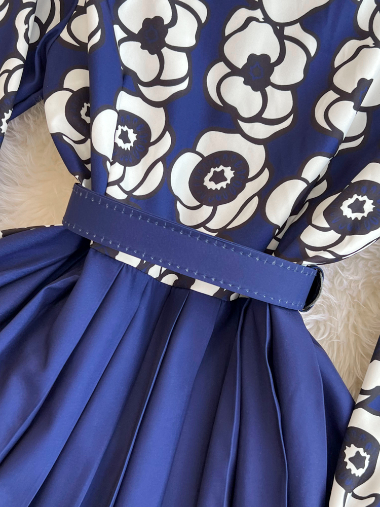 Flowy Flair Temperament Dress with Long Sleeves and Cinched Waist