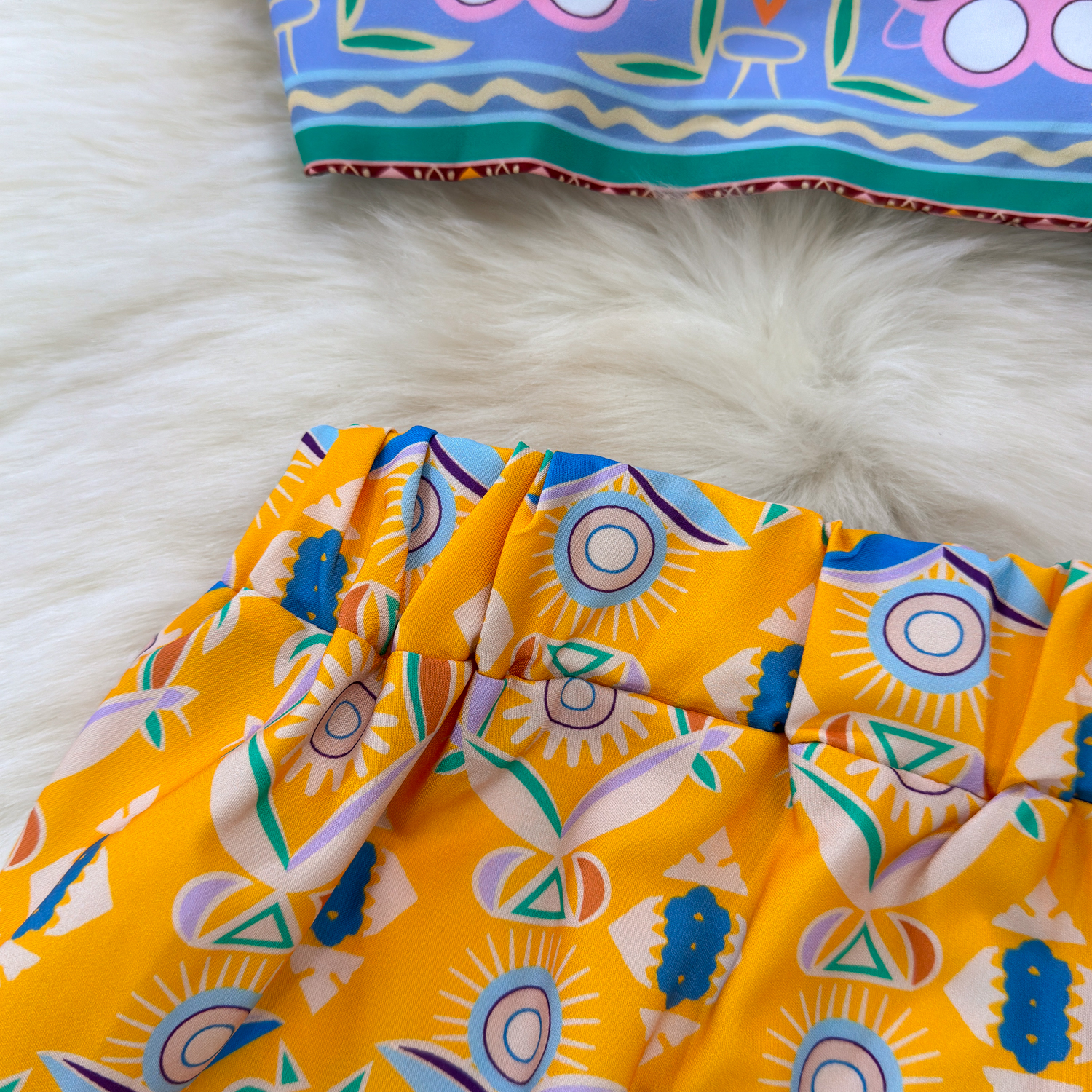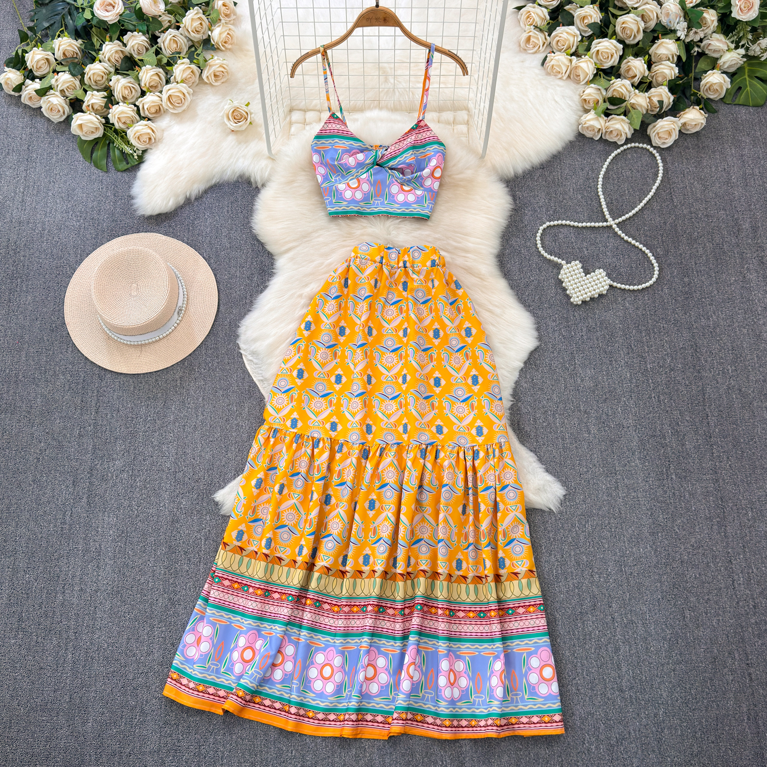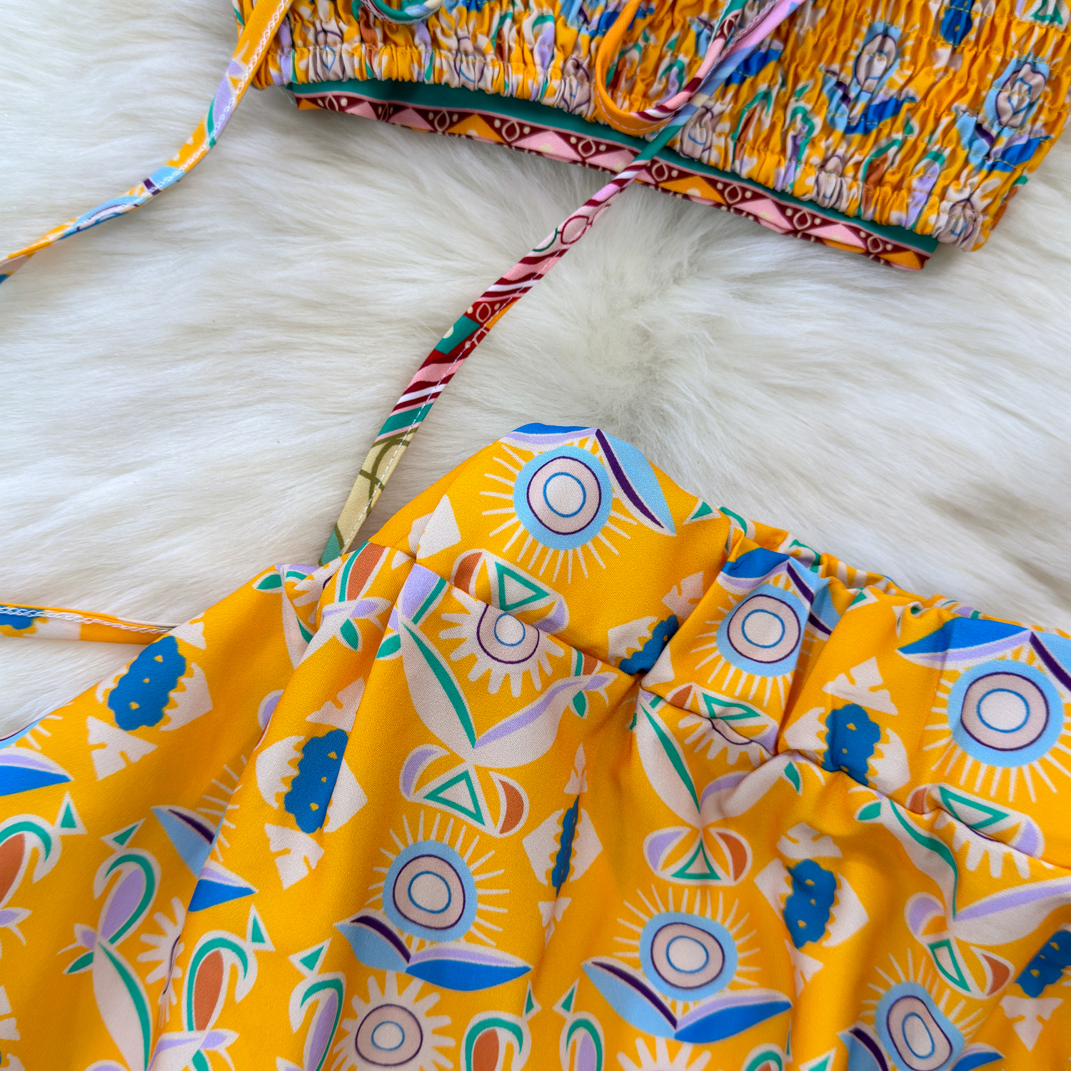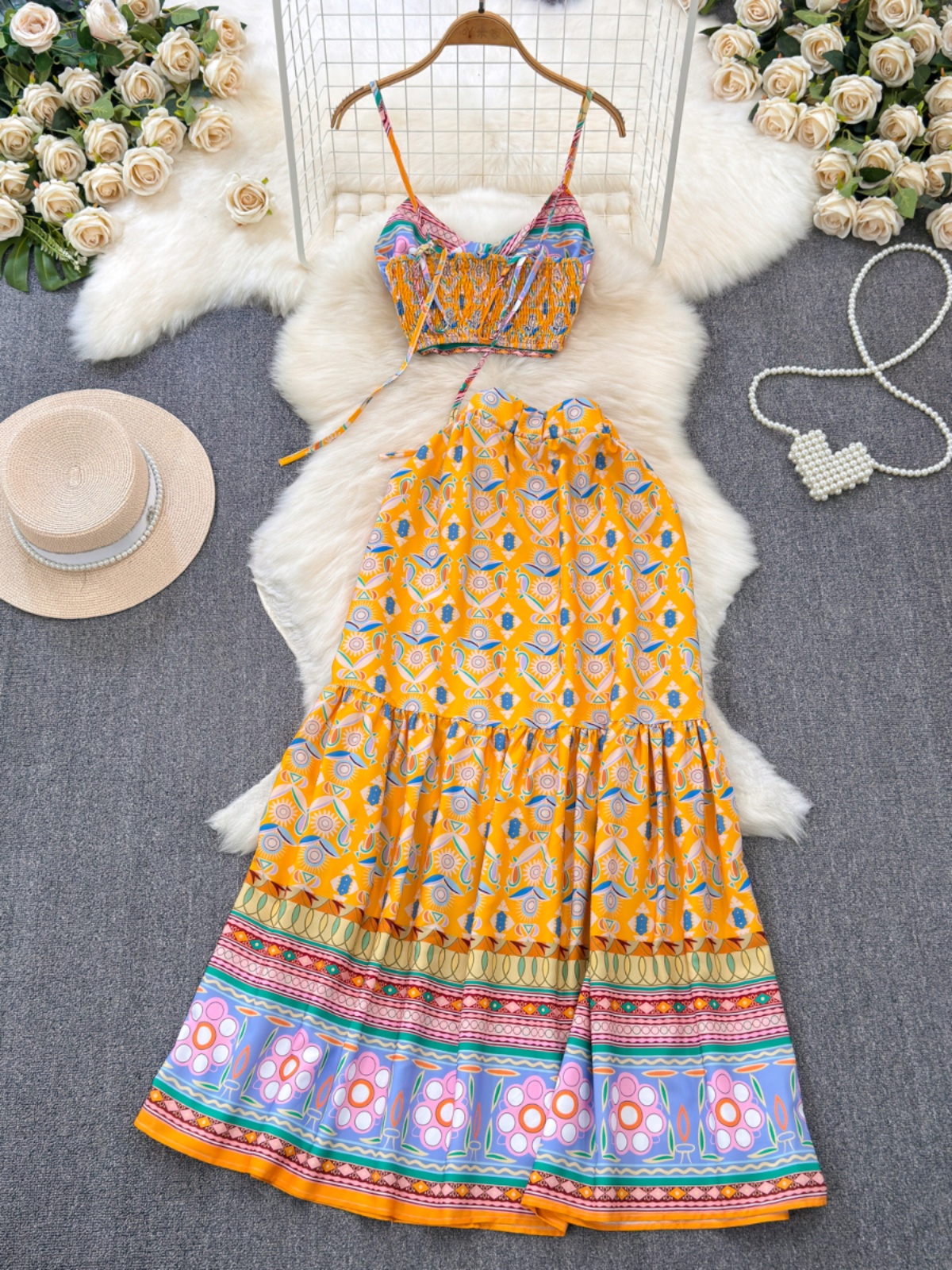 - Pattern: Bandeau Vest Tops & High-waisted Skirt