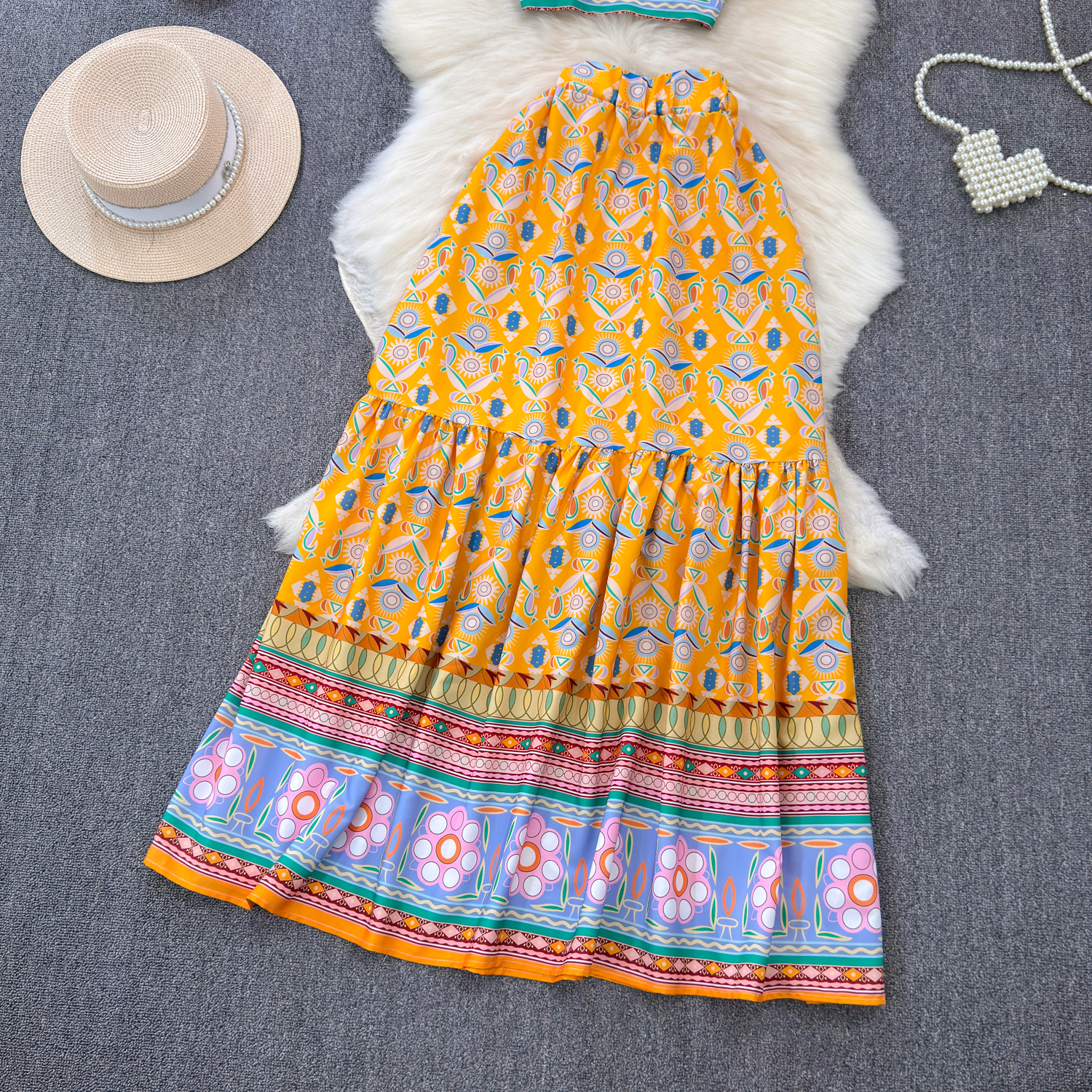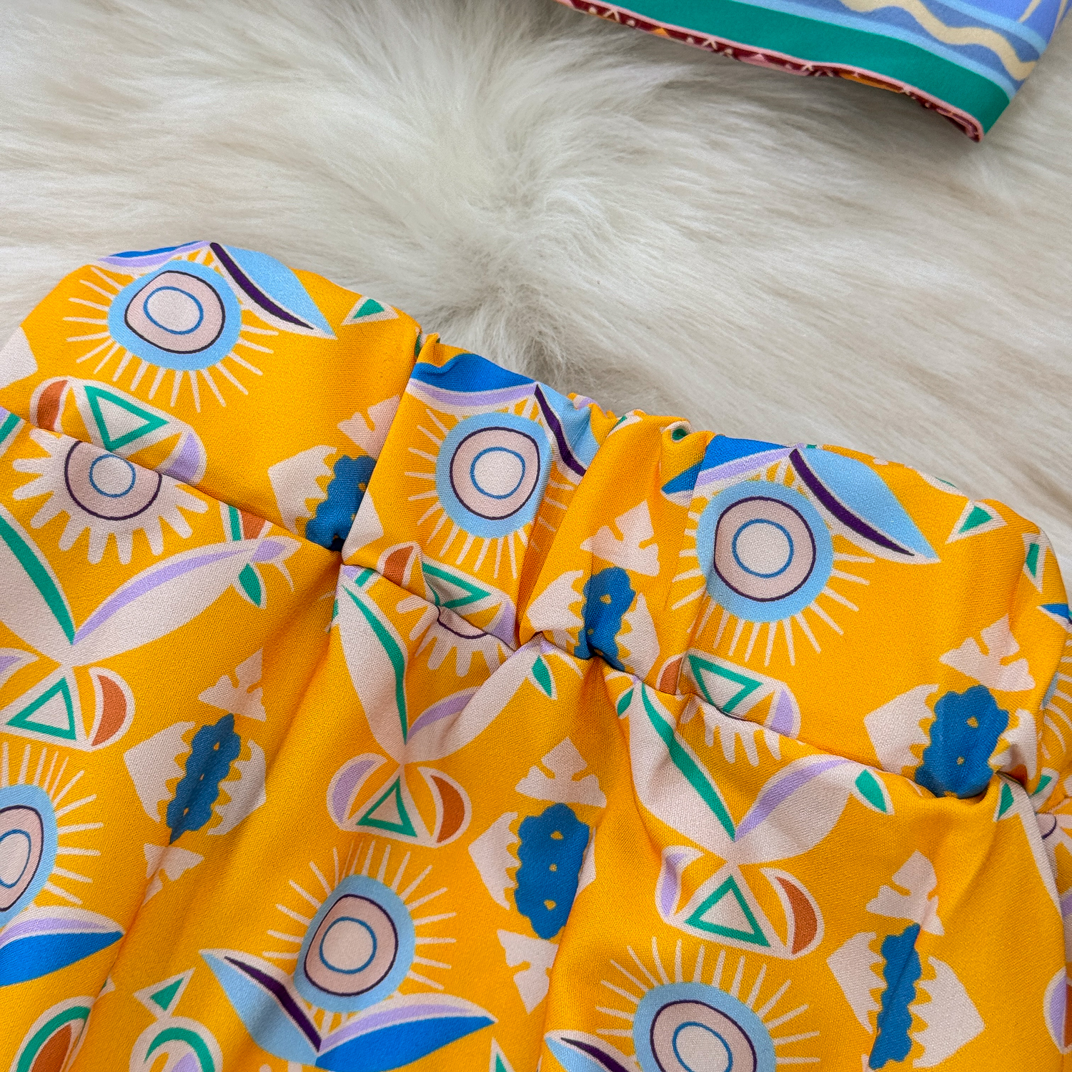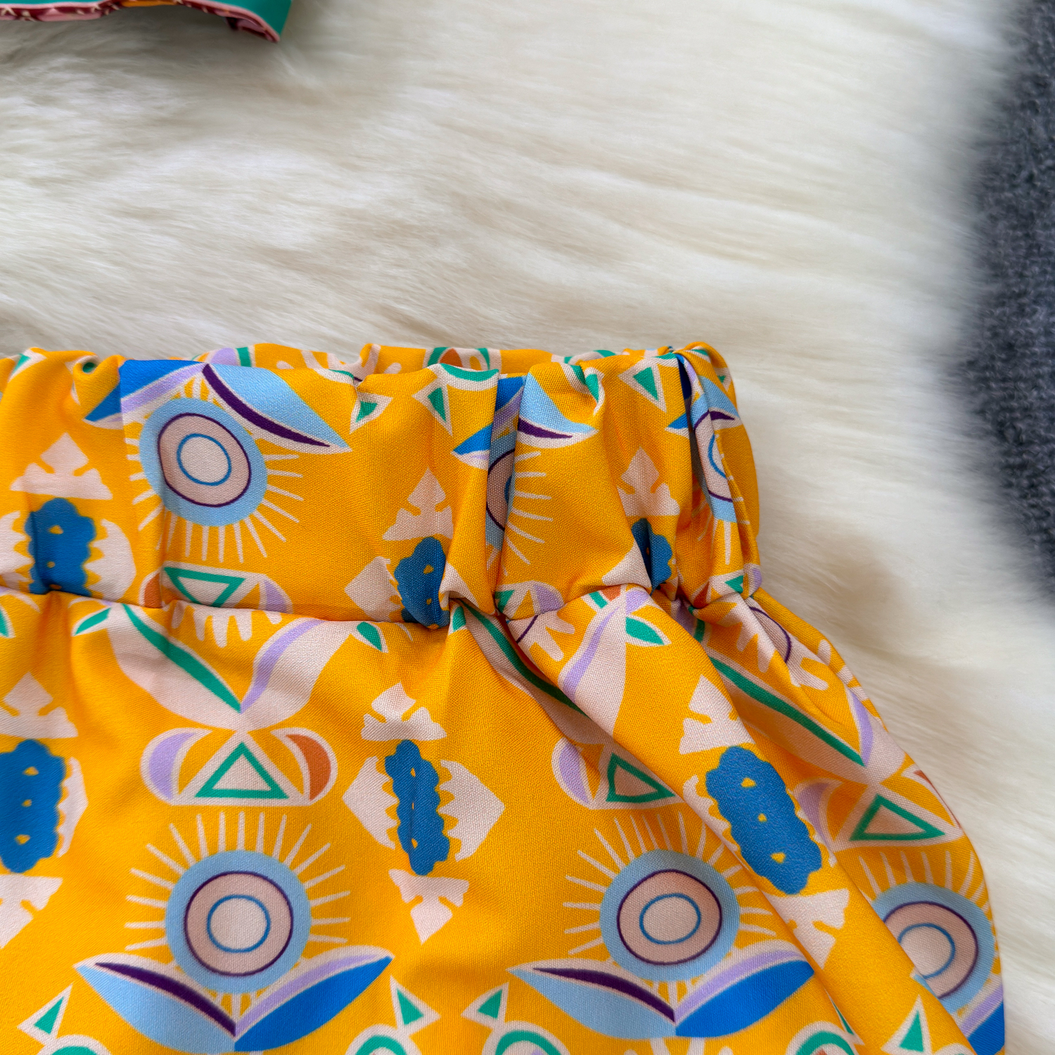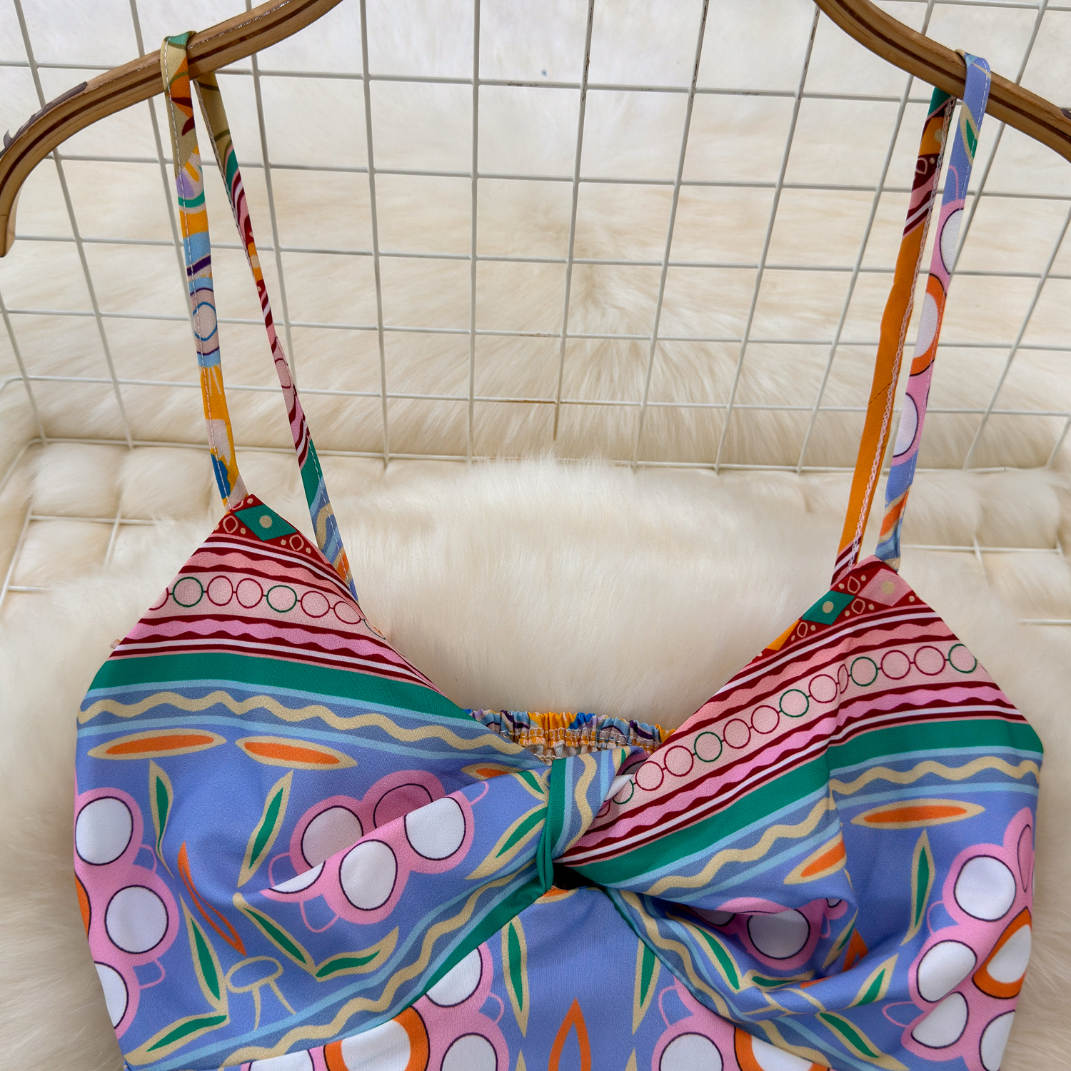 - Pattern: Bandeau Vest Tops & High-waisted Skirt