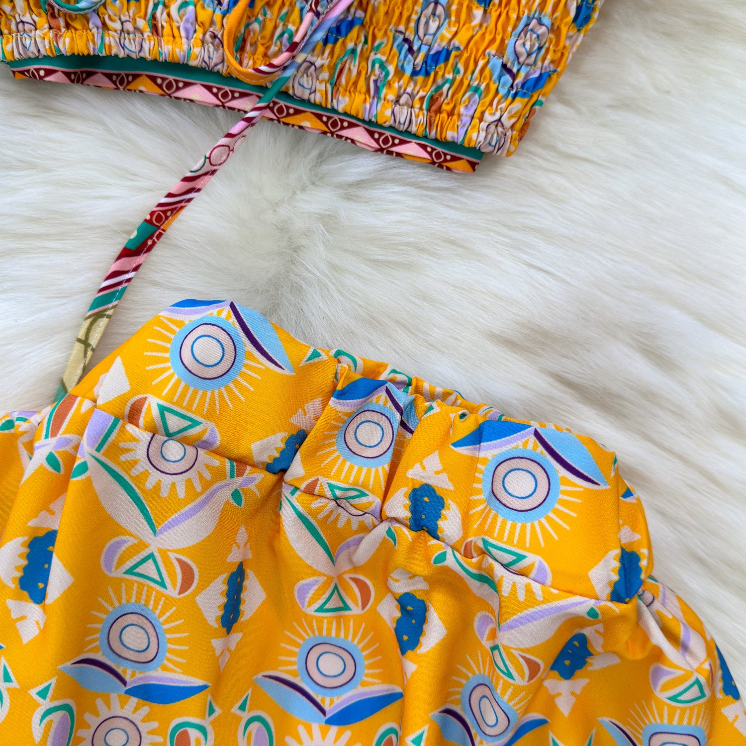 This vibrant Beach Wear bikini & Skirt Set is the perfect way to soak up the sun. The bold colors and flattering cut will make you feel confident and beautiful.