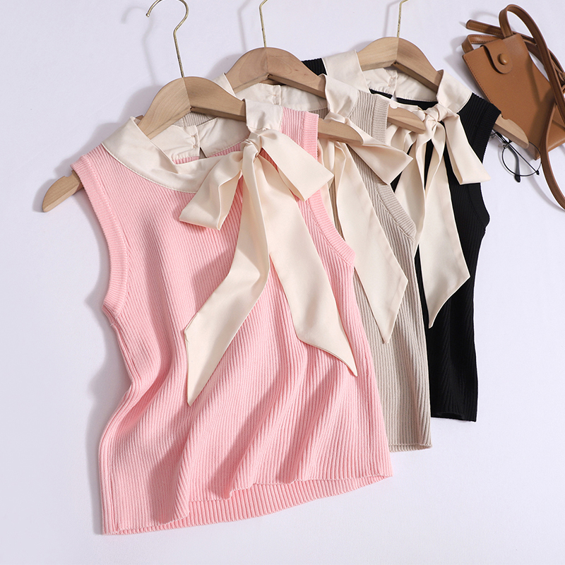 French High-Quality Bow Tie Vest Back Cut-Out knit Sleeveless Top