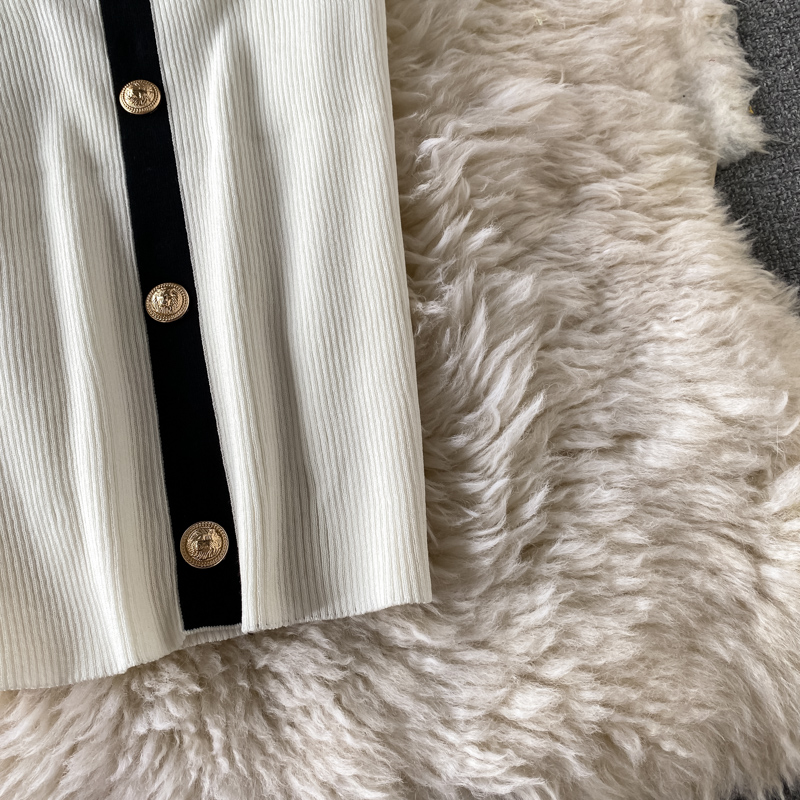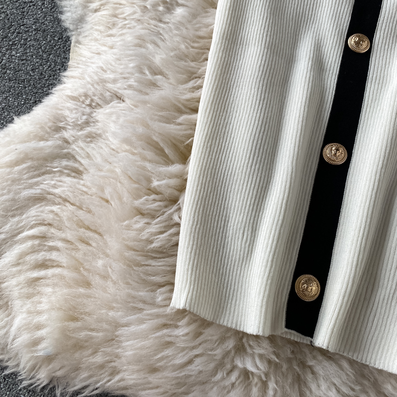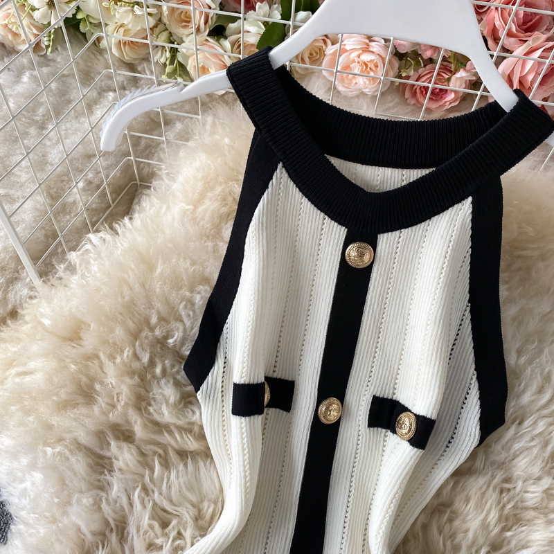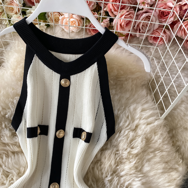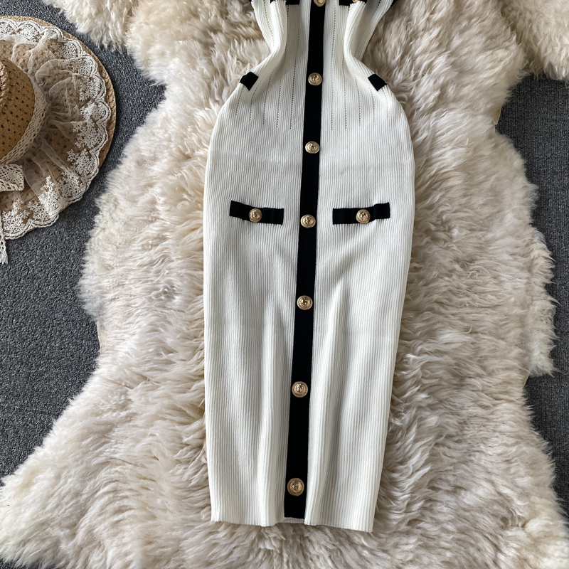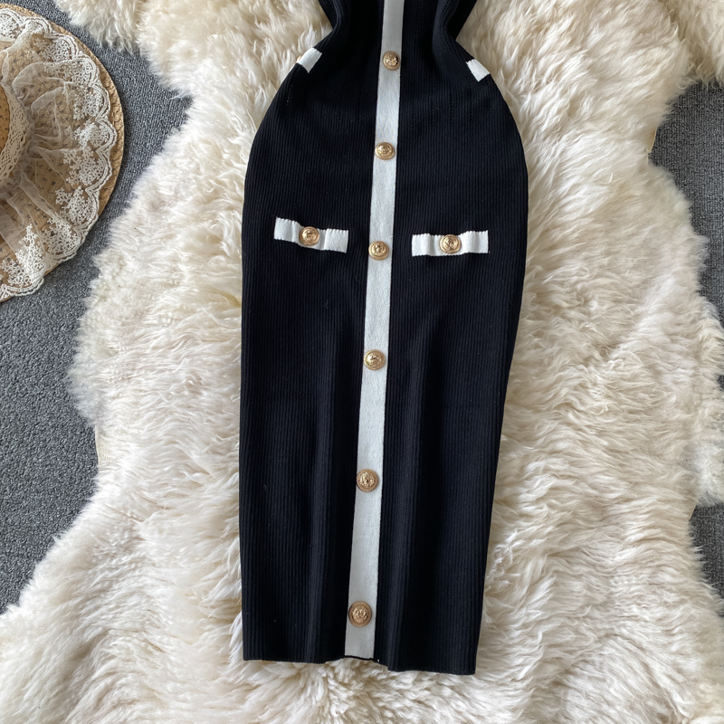 French Style Halterneck, Off-Shoulder, and Color-Blocked Knitted Bodycon