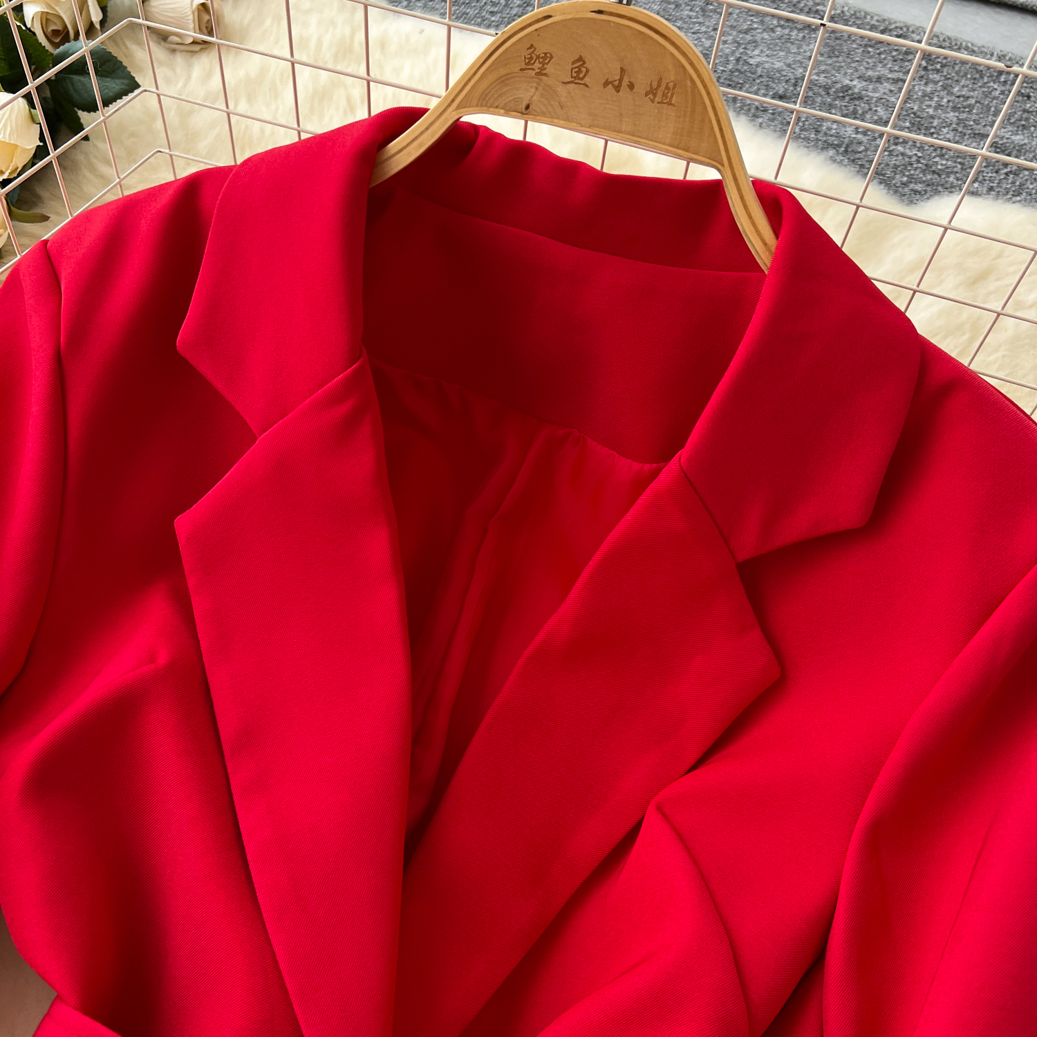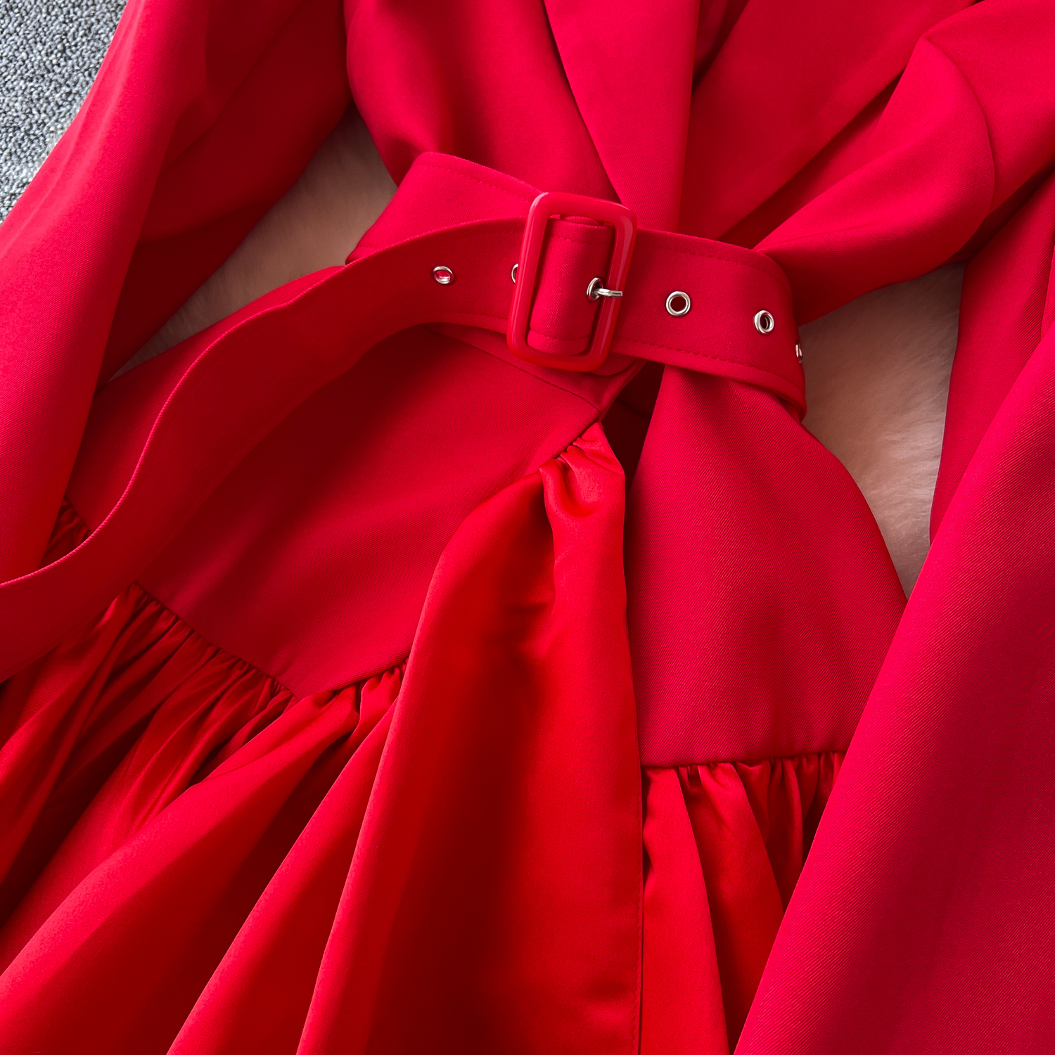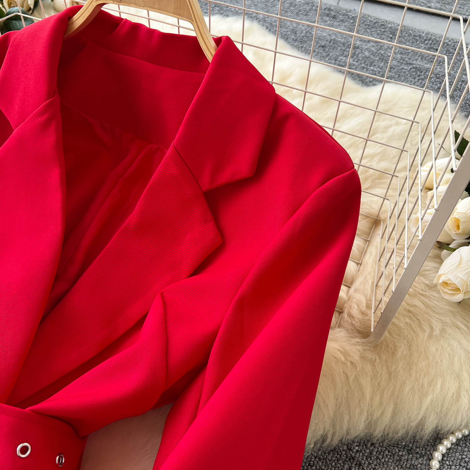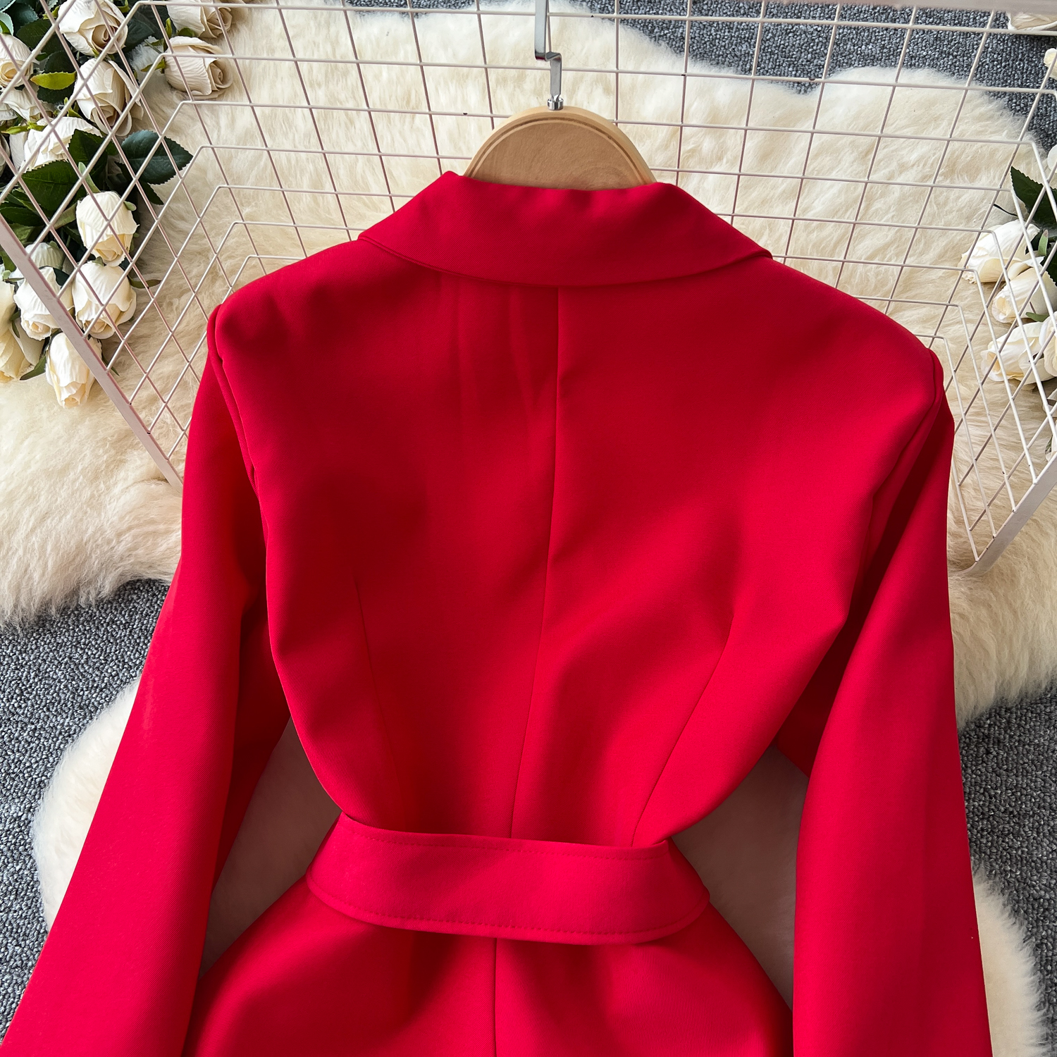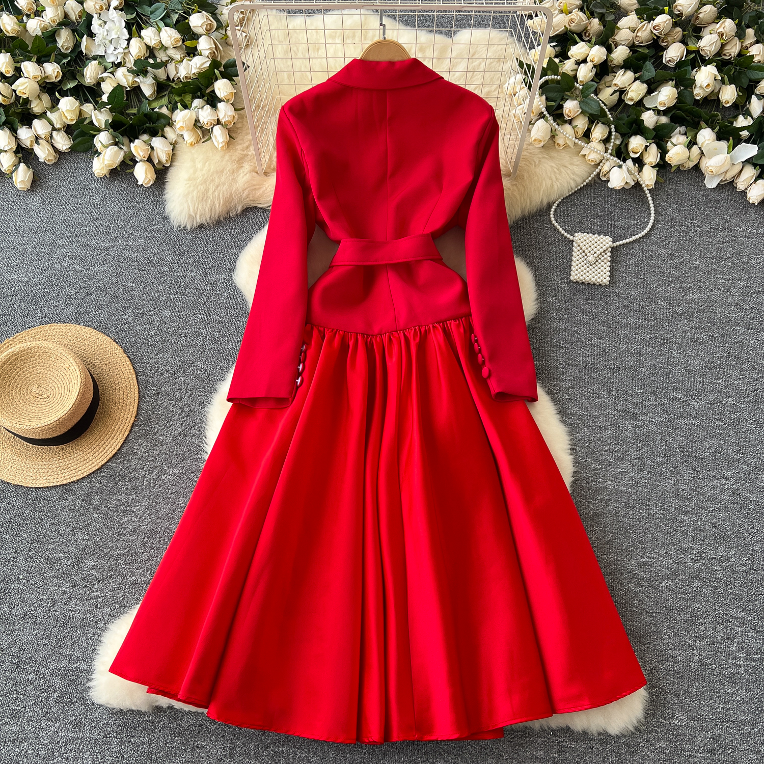 Glamorous Long Suit Dress with Tie Waist Stylish Long Sleeve Lapel Stitching Skirt