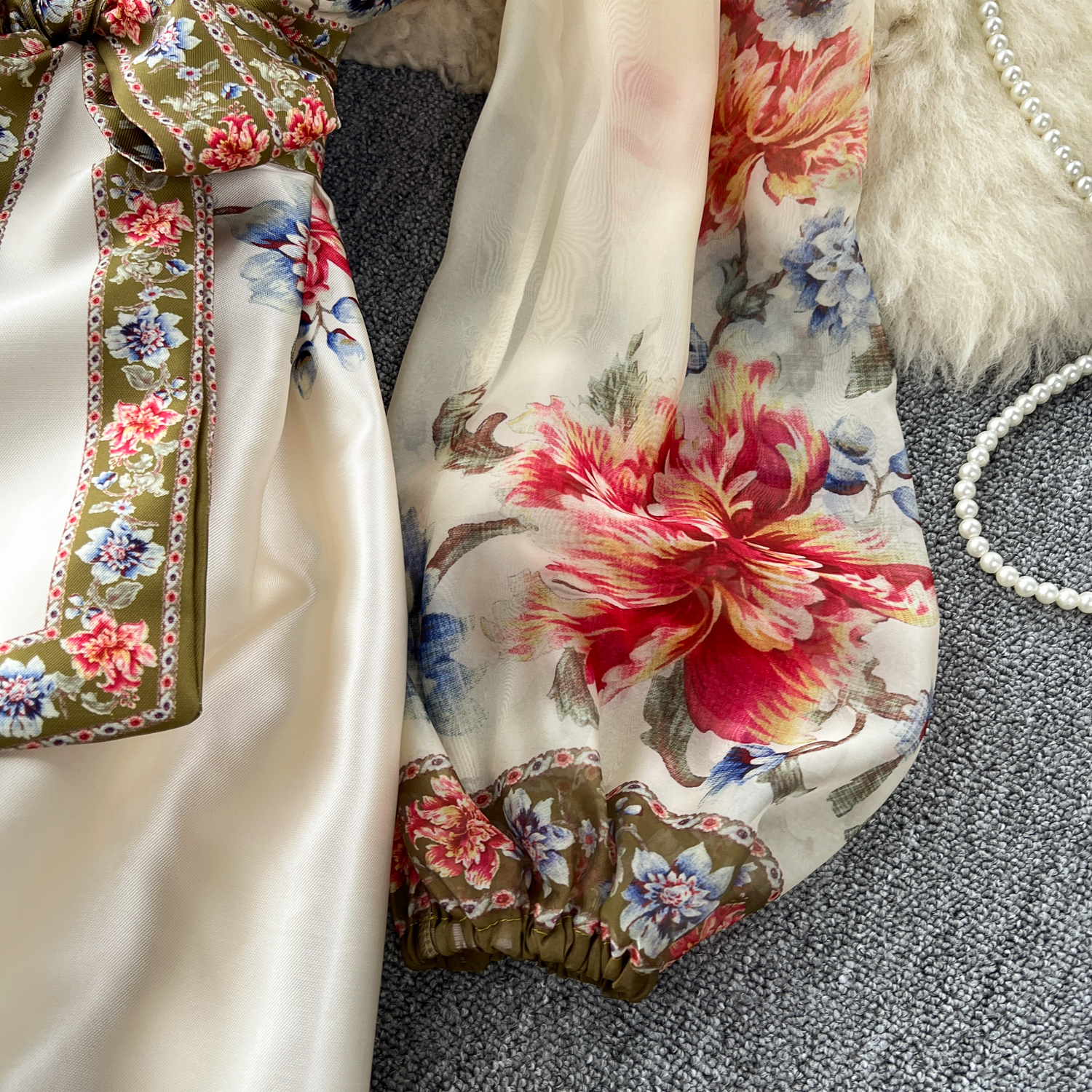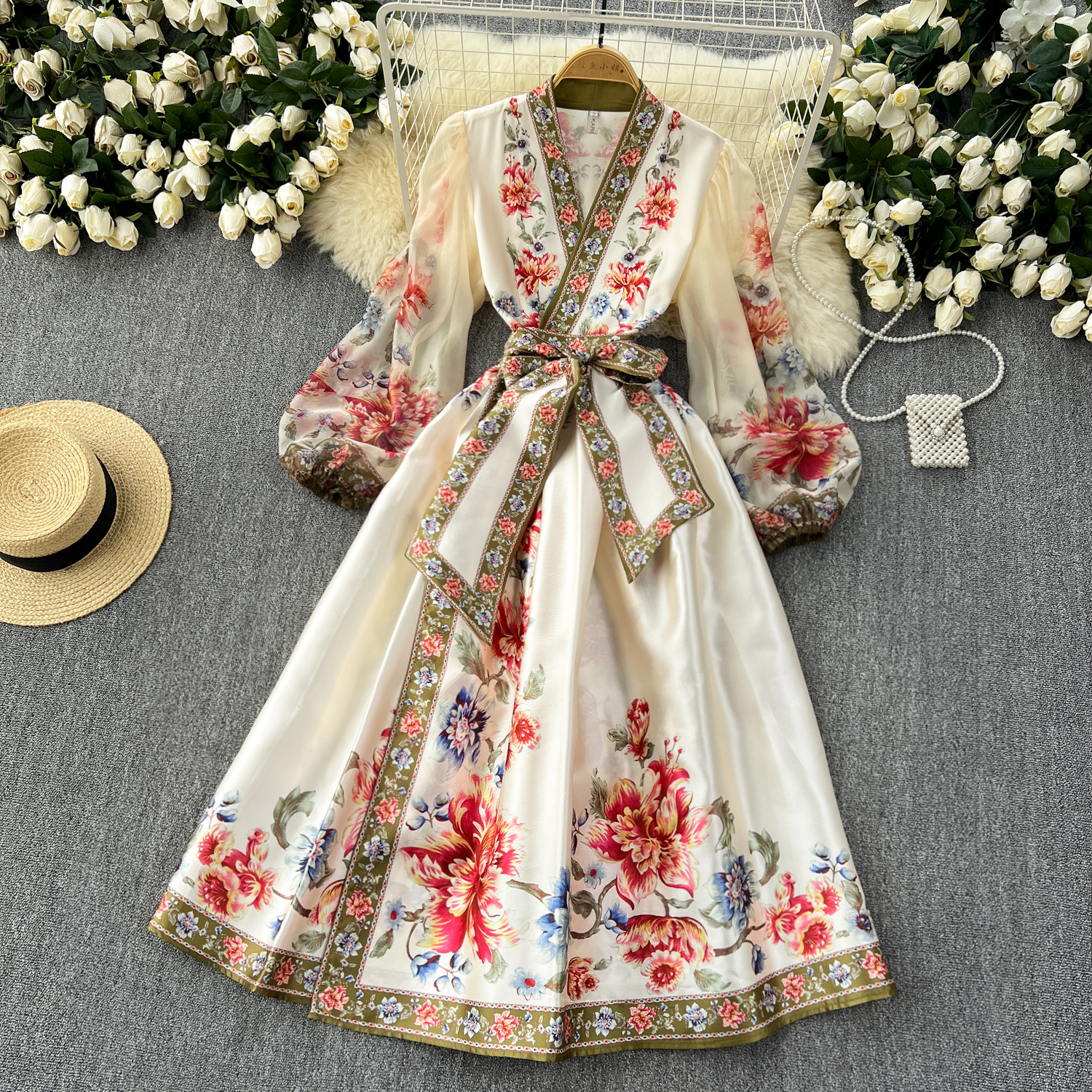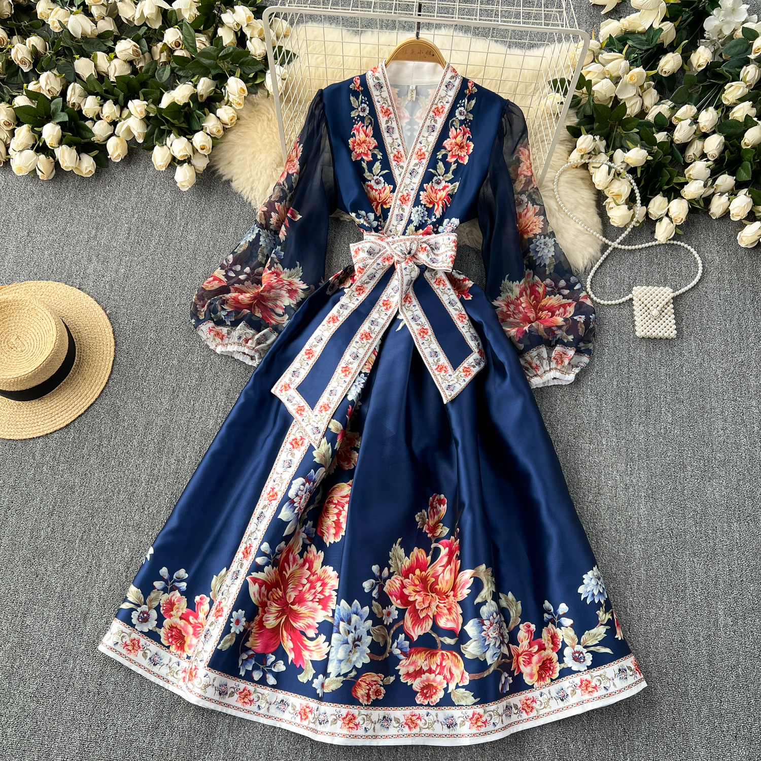 High-End Elegant French Retro Palace Style Tie Waist Temperament Dress