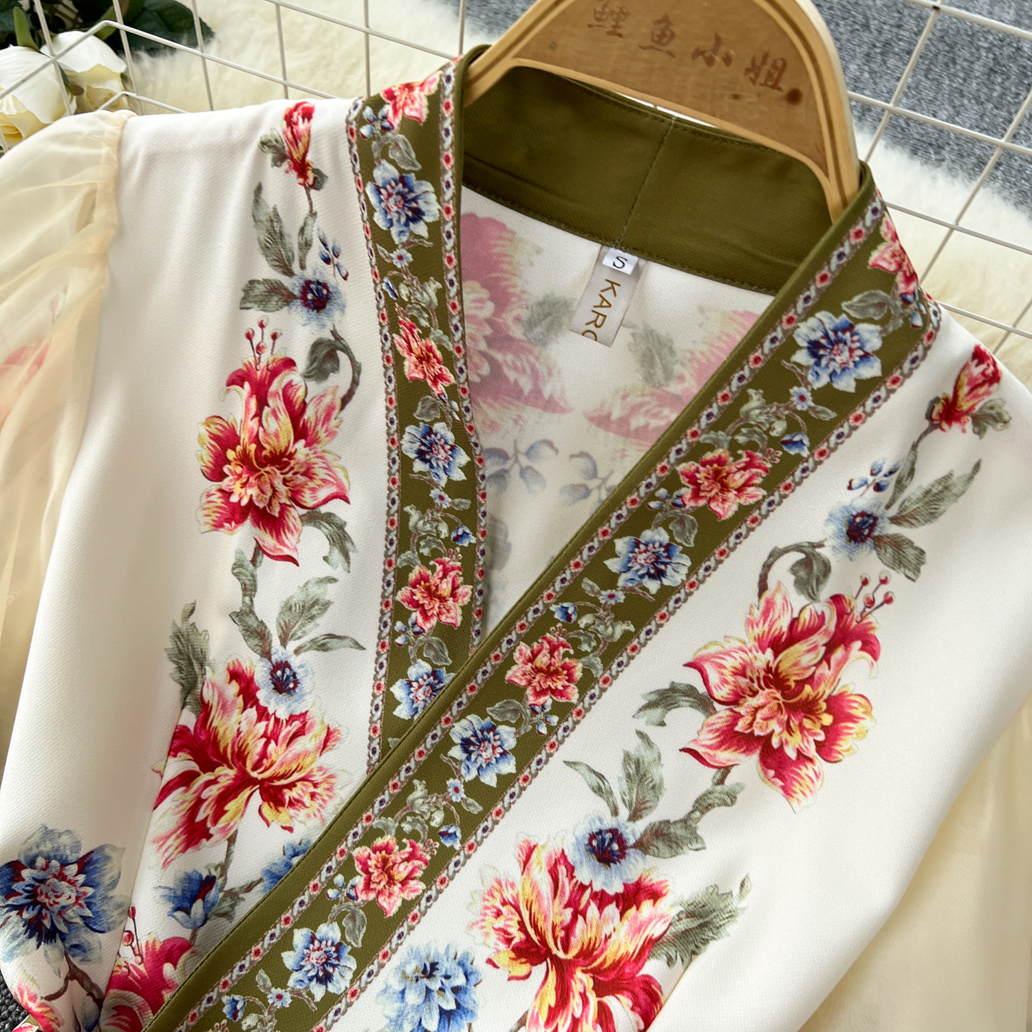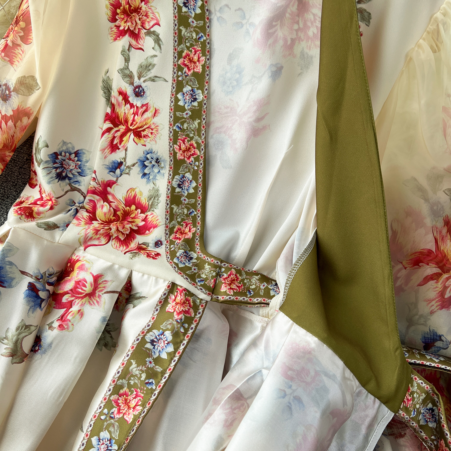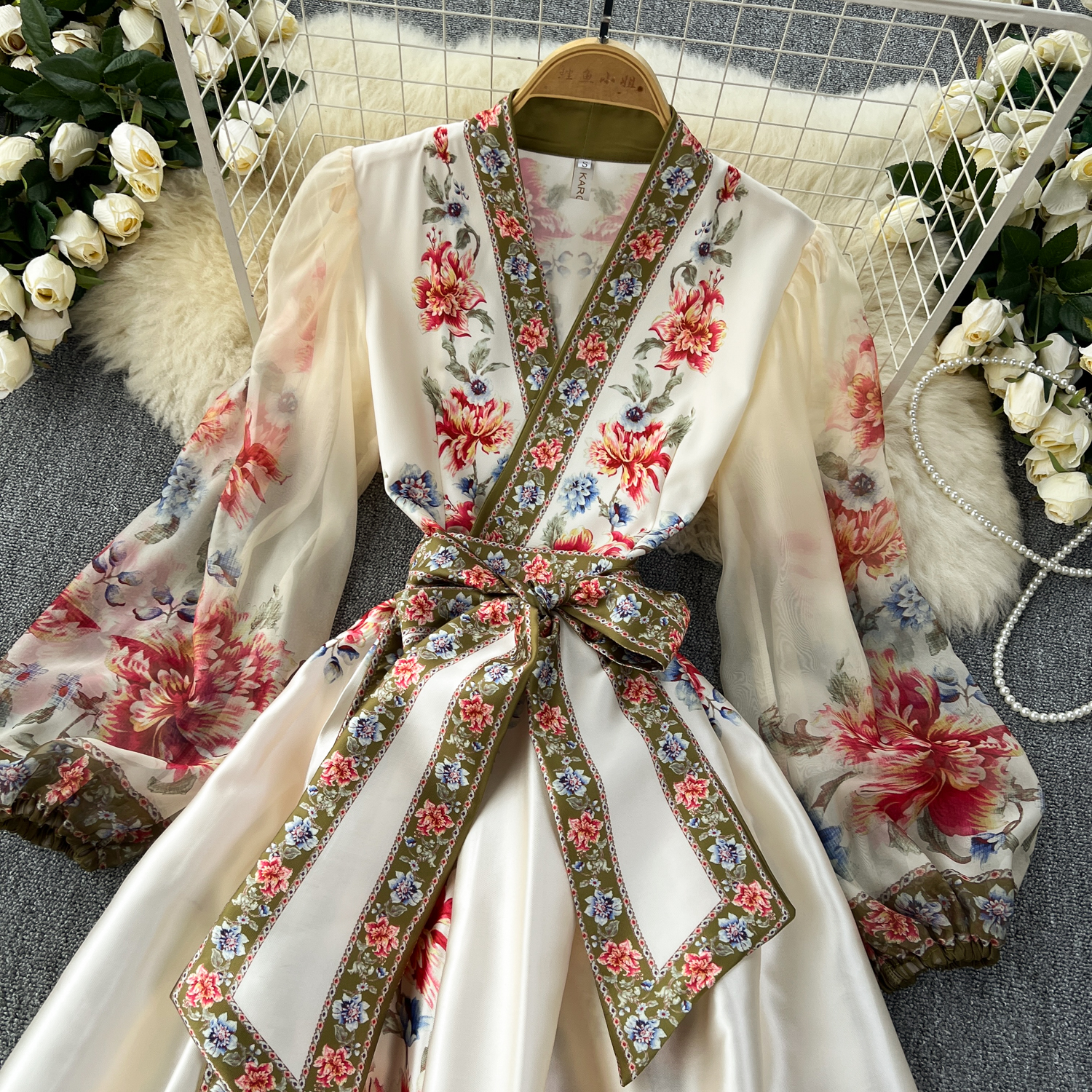 High-End Elegant French Retro Palace Style Tie Waist Temperament Dress