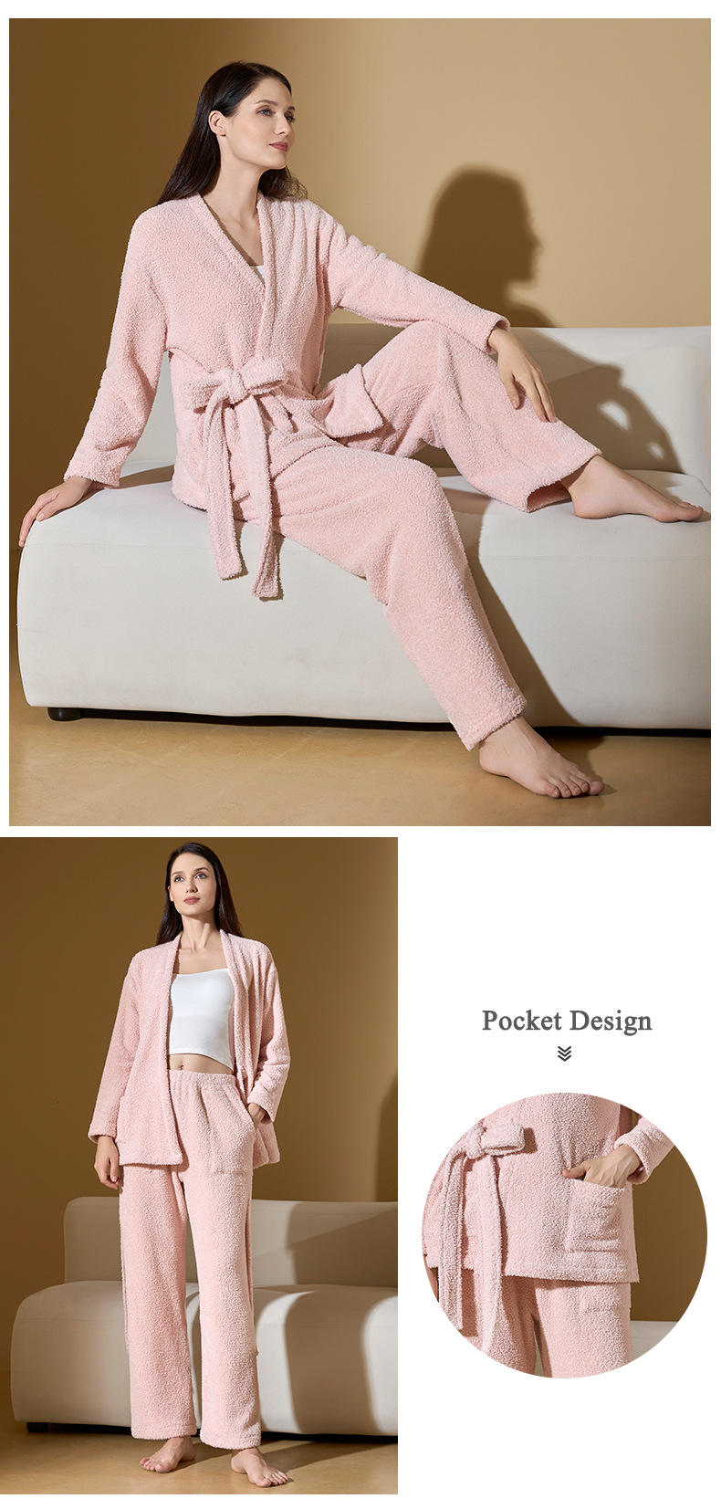 High-End Half-Edge Winter-Ready Plush Coral Velvet Loungewear Suit for Women