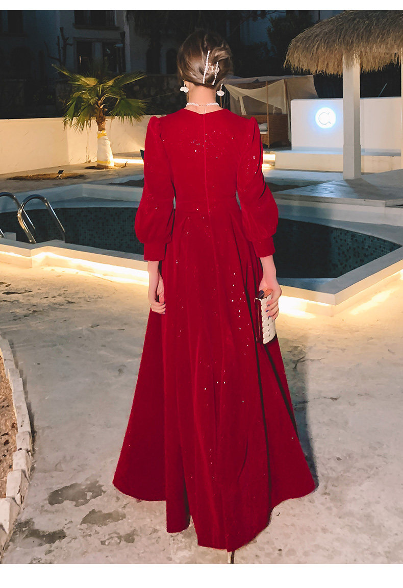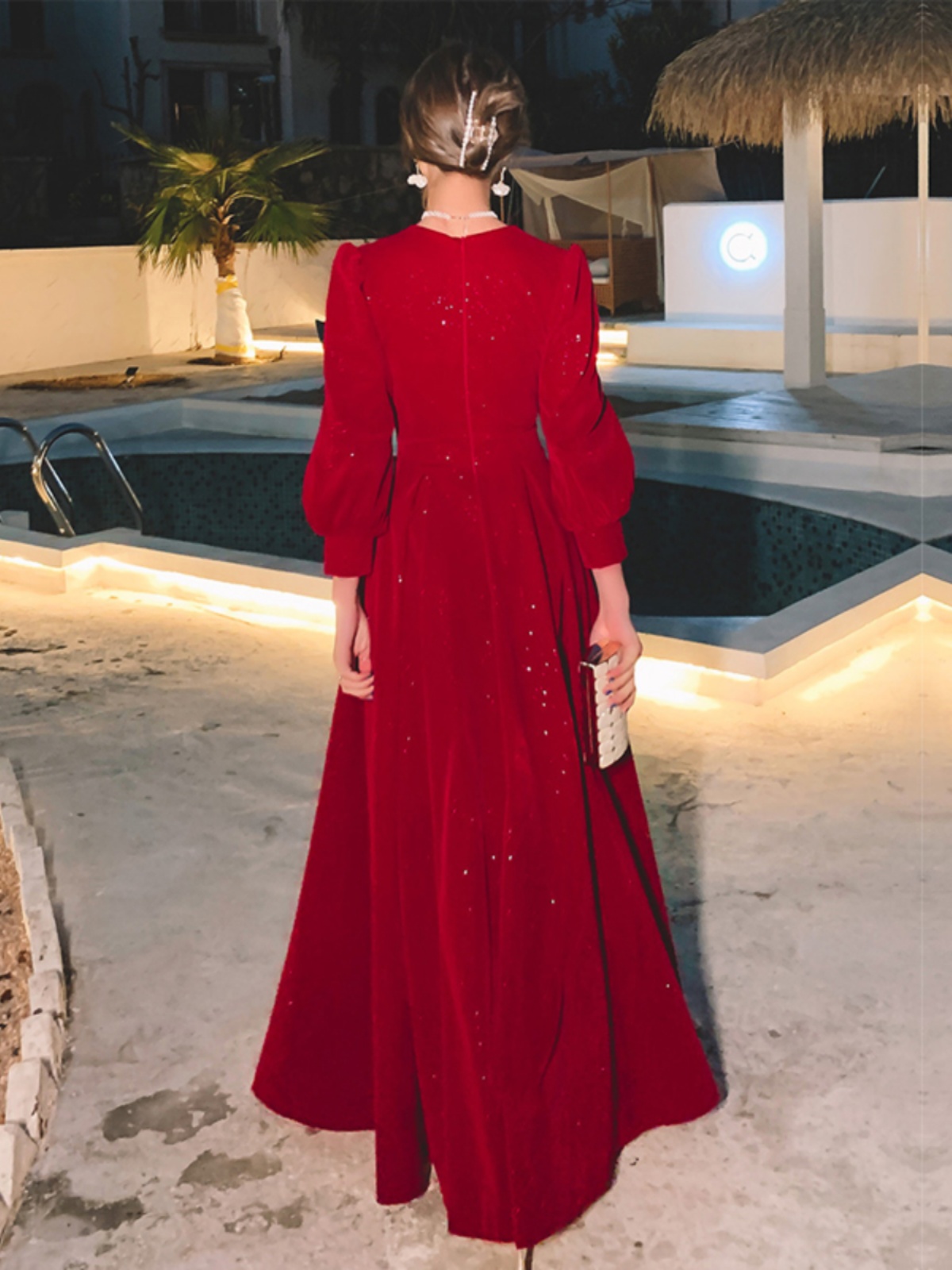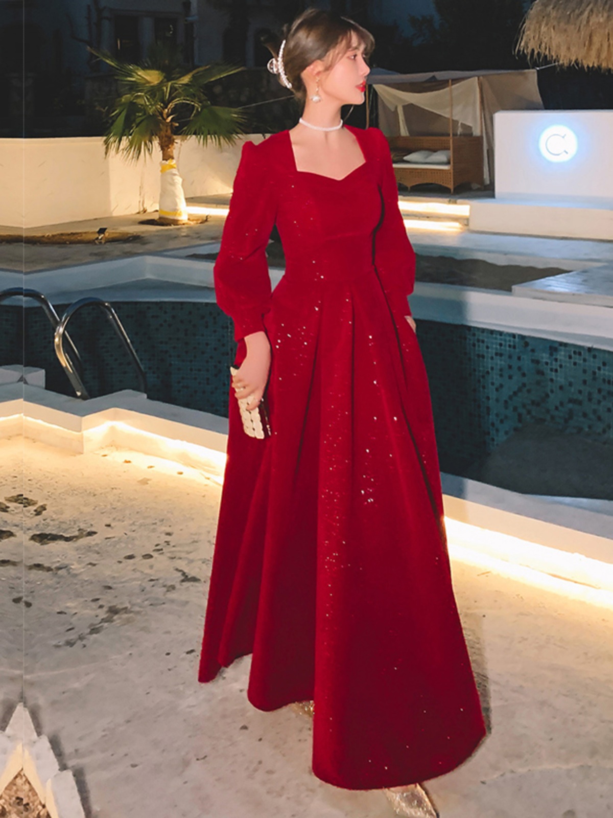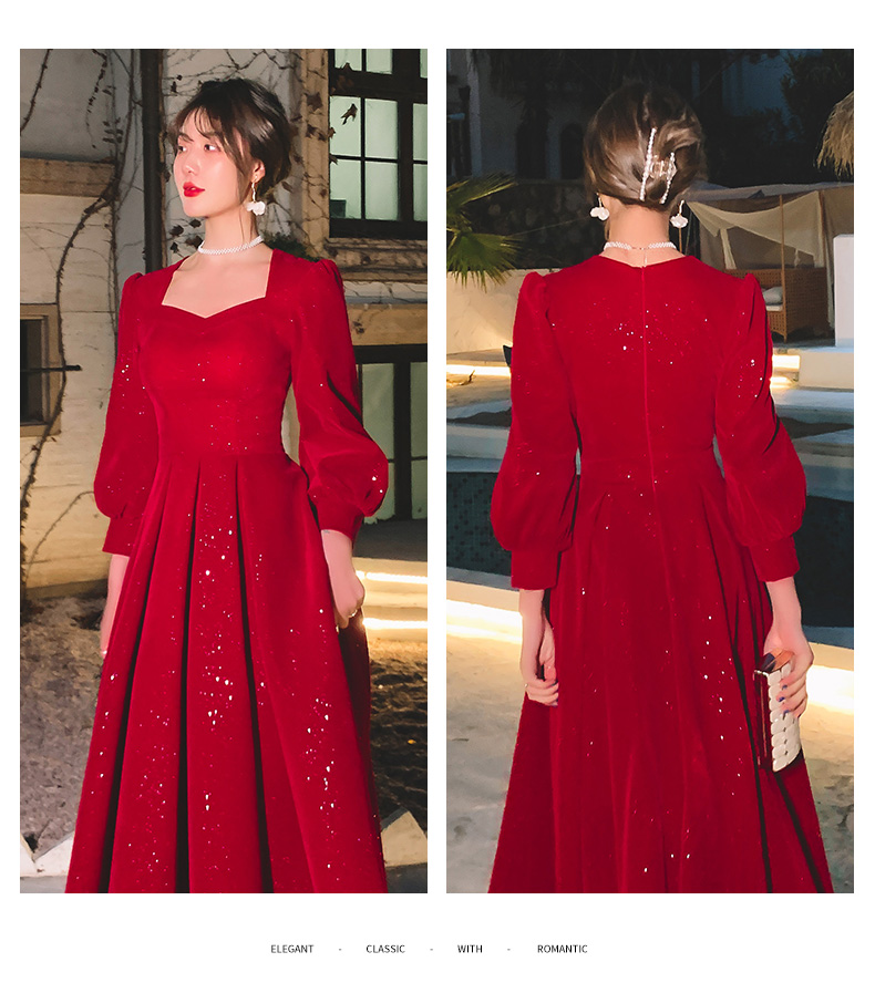 High-Quality Temperament Red Spring Dress for Bridal Returns and Occasions