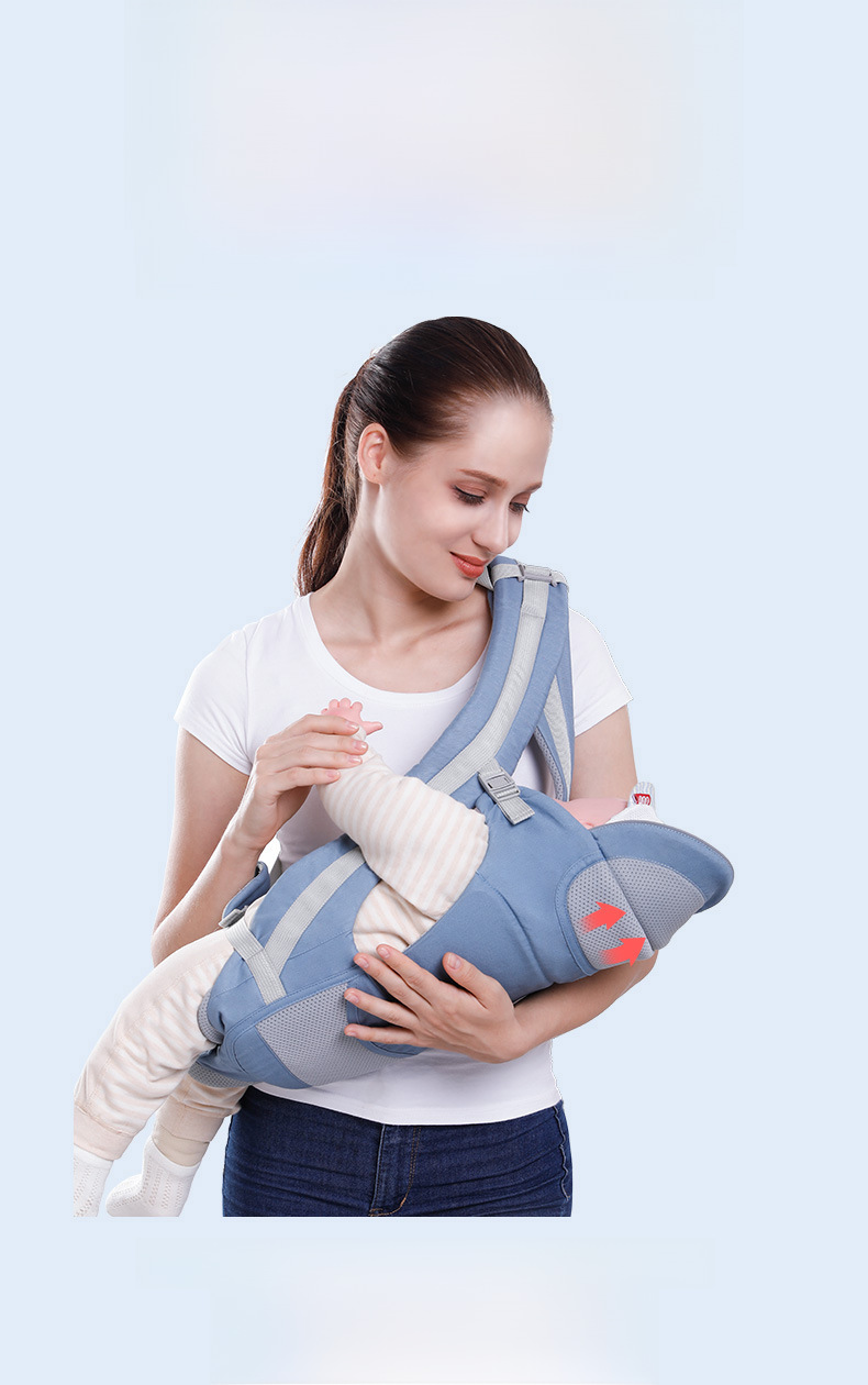 Carry your baby effortlessly with this horizontal front-holding waist stool carrier, designed for ergonomic support and hands-free convenience. Featuring multiple carrying positions, a secure waist strap, and a built-in storage bag, it ensures comfort for both baby and parent. Perfect for daily outings!