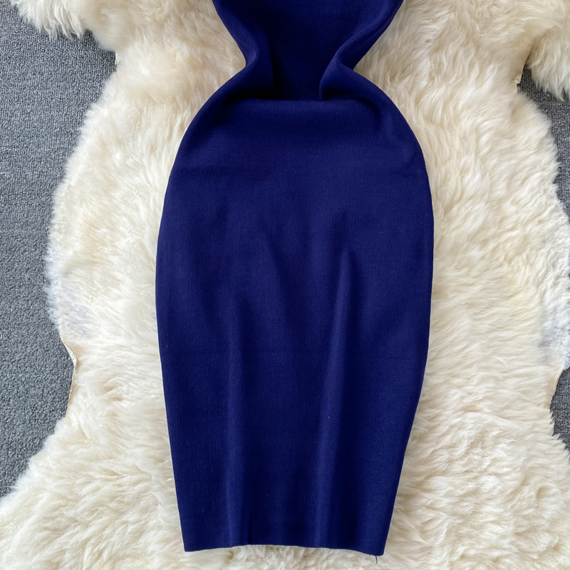 Knitted Stretch Slim Hip-Wrapping A-Line Bodycon Dress