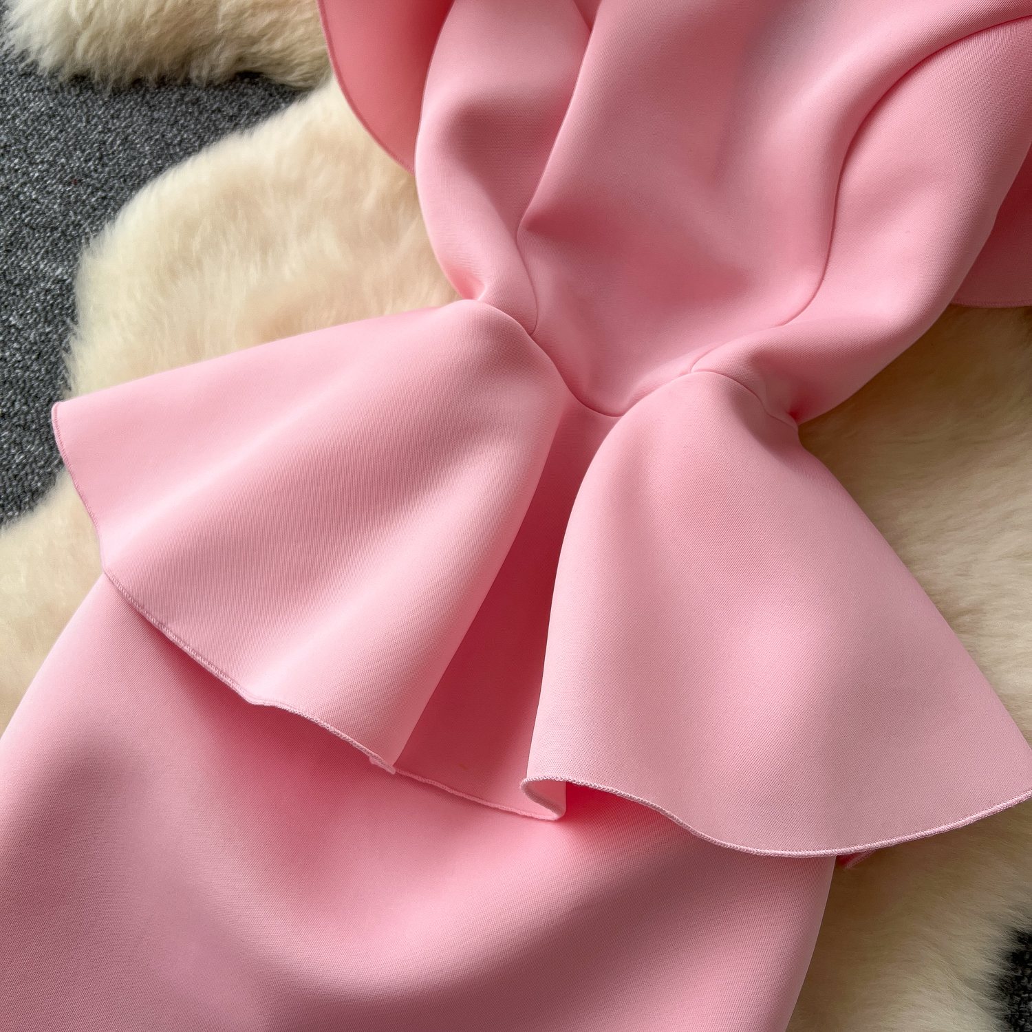 - Pattern: Split neckline dress with a gown-inspired silhouette