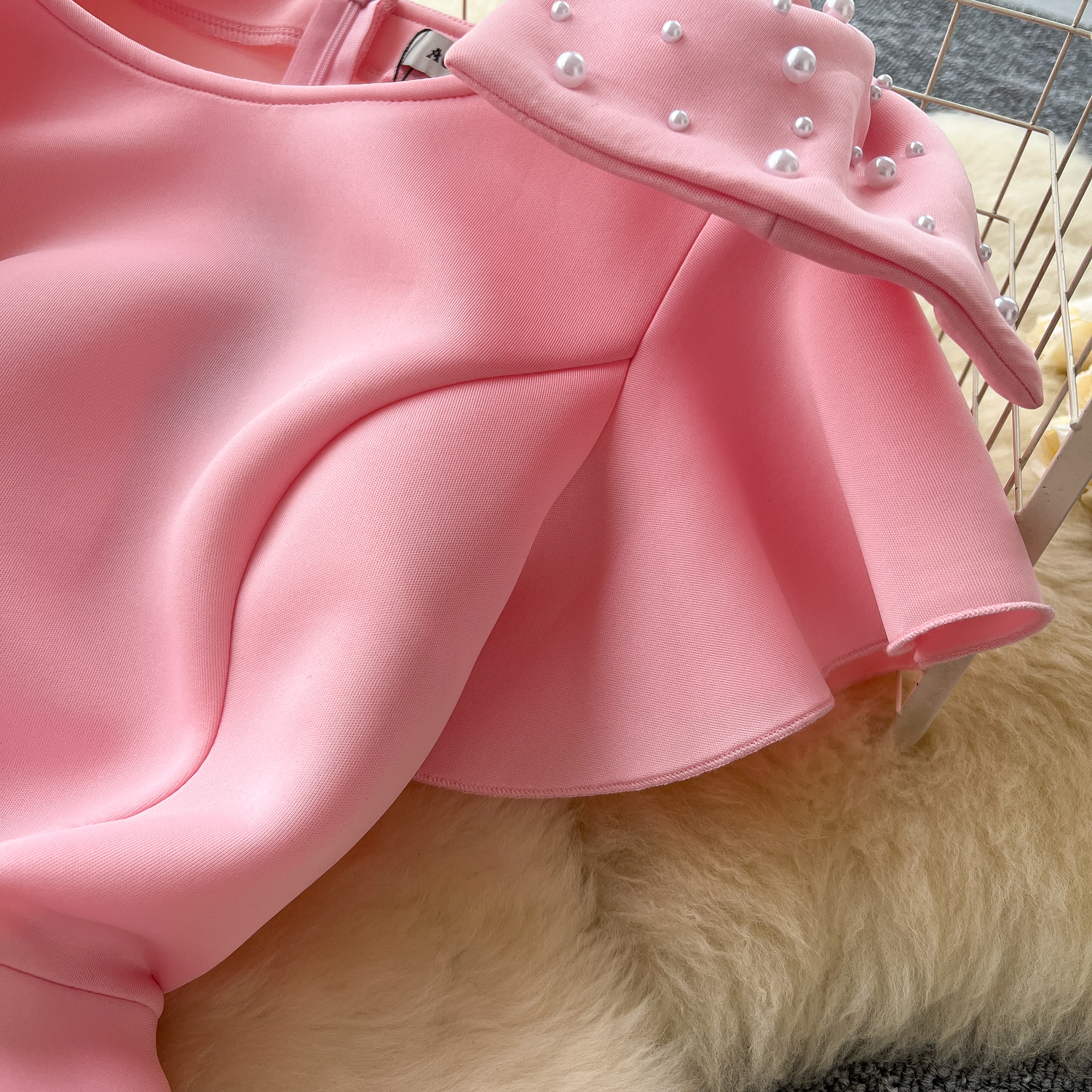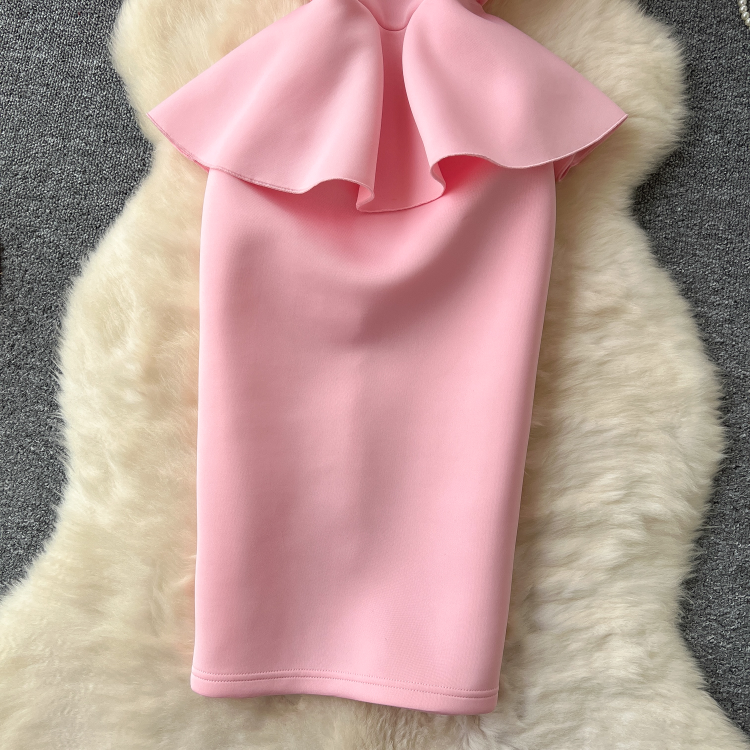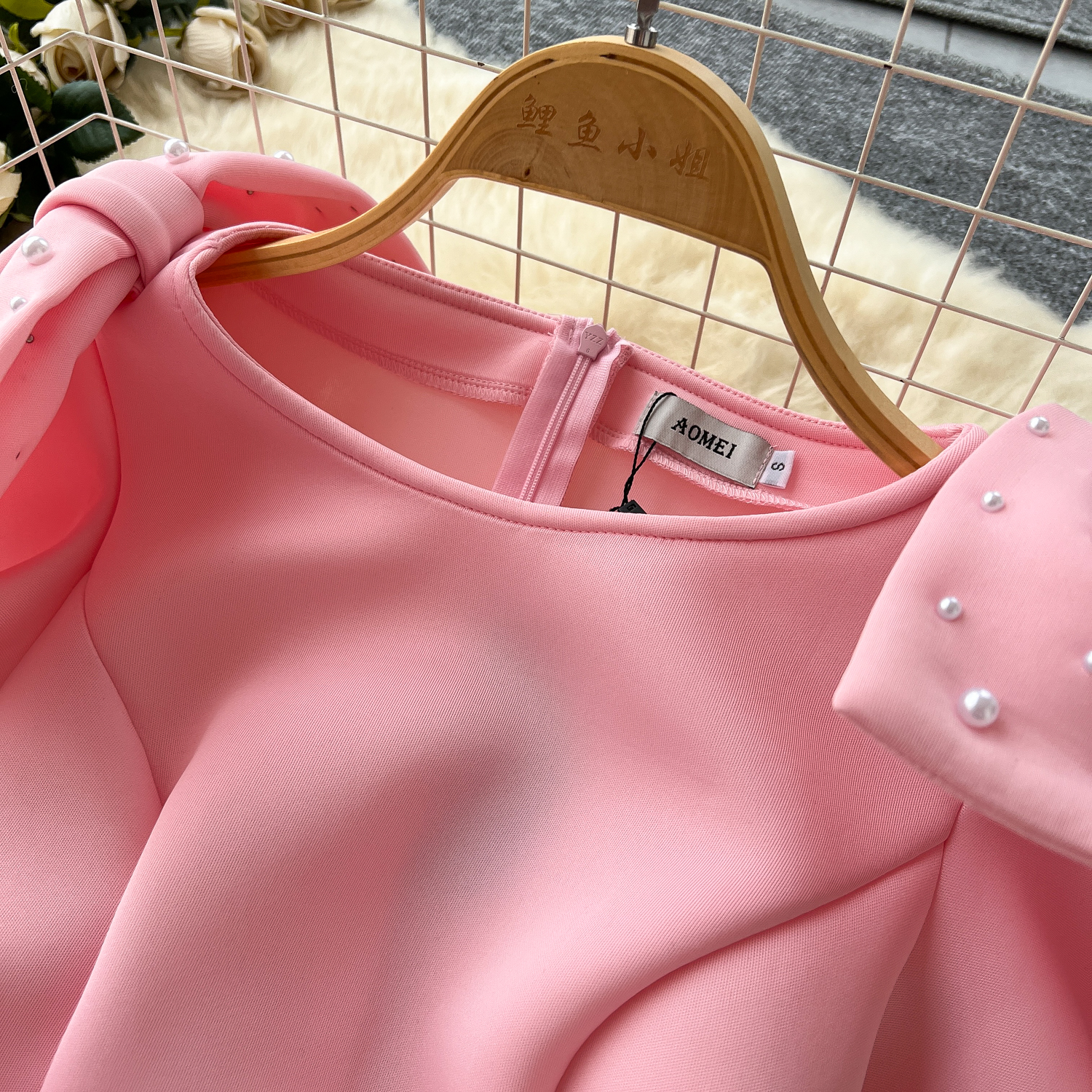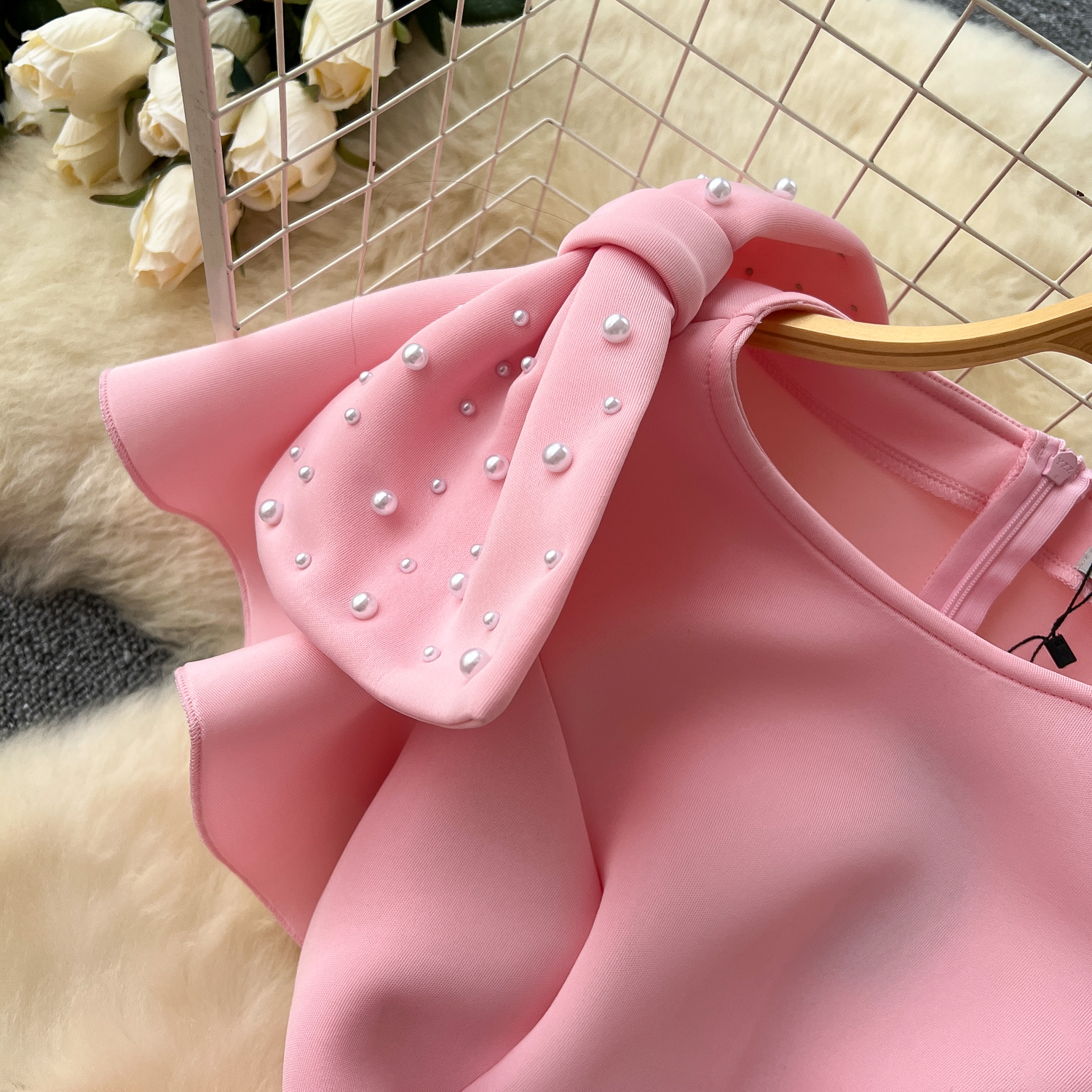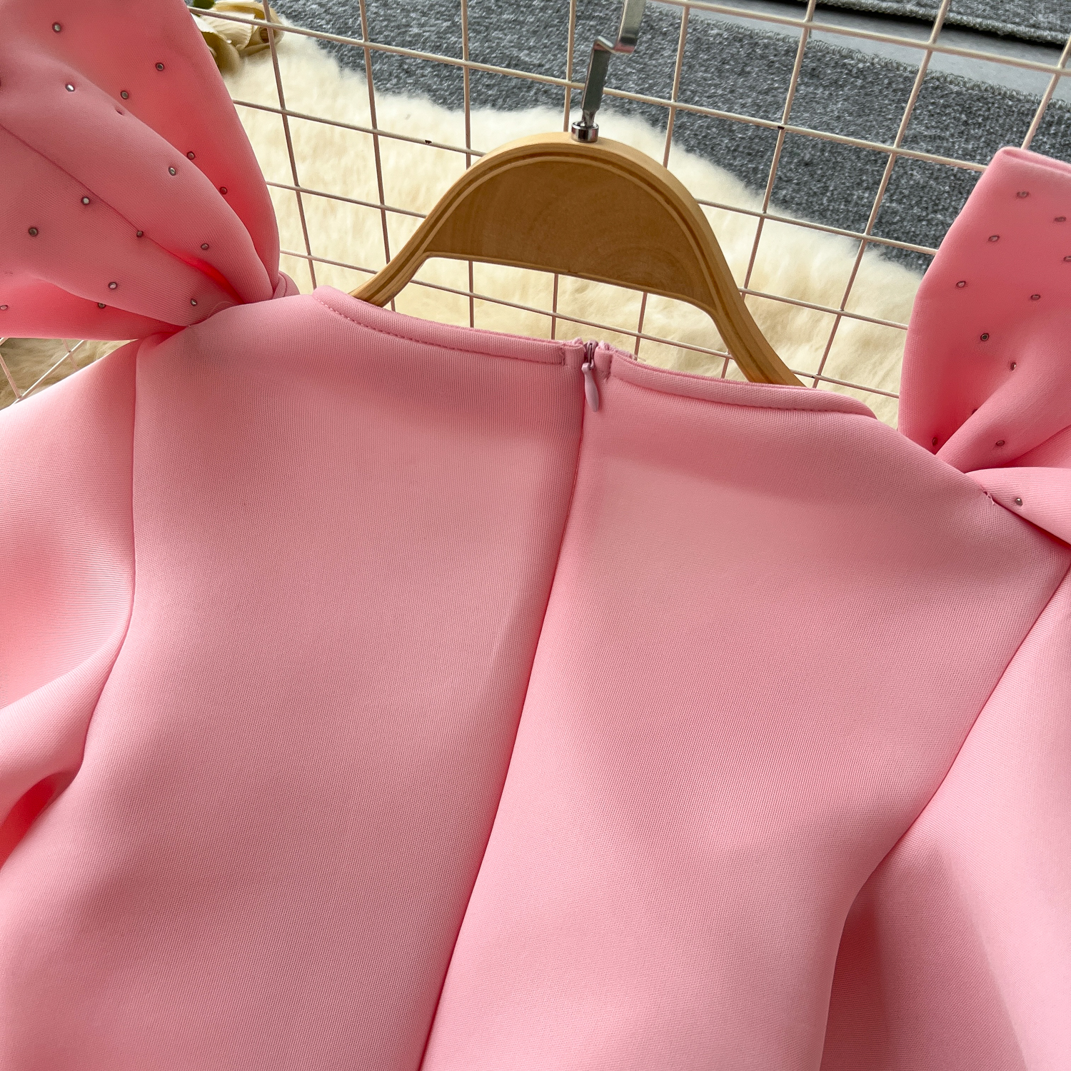Luxurious Bow Waist Dress with Beaded Design and Ruffles Skirt