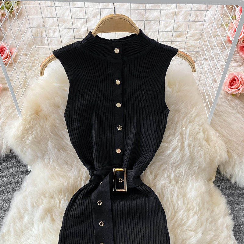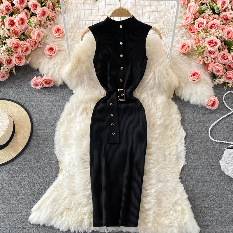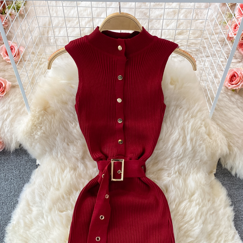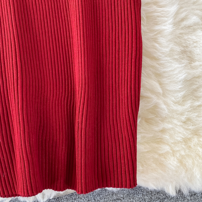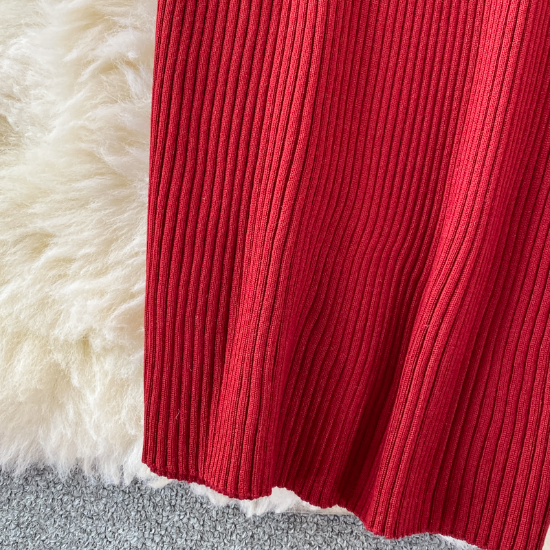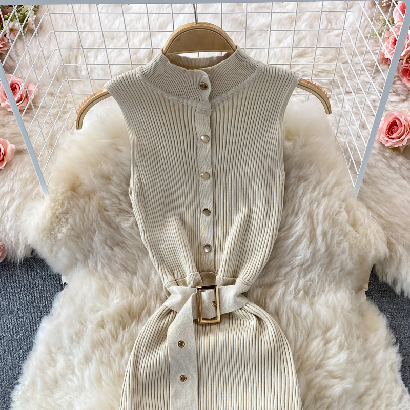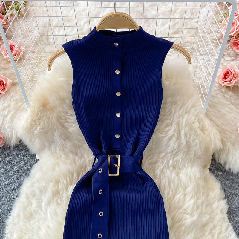 Luxurious Stretch Knitted Stand-Collar and Slim Mid-Length Bodycon Dress