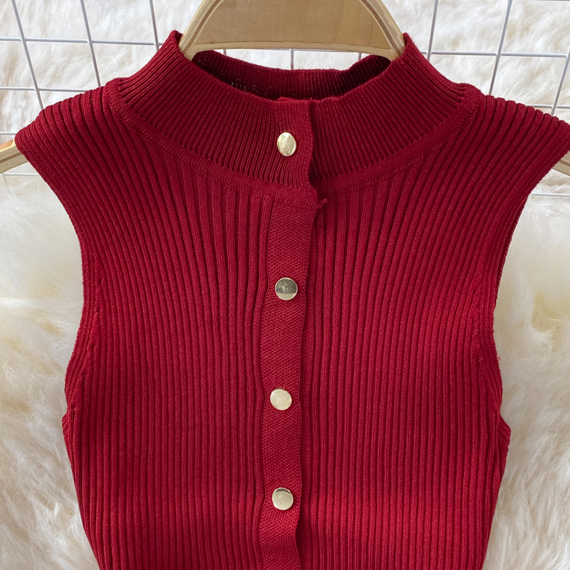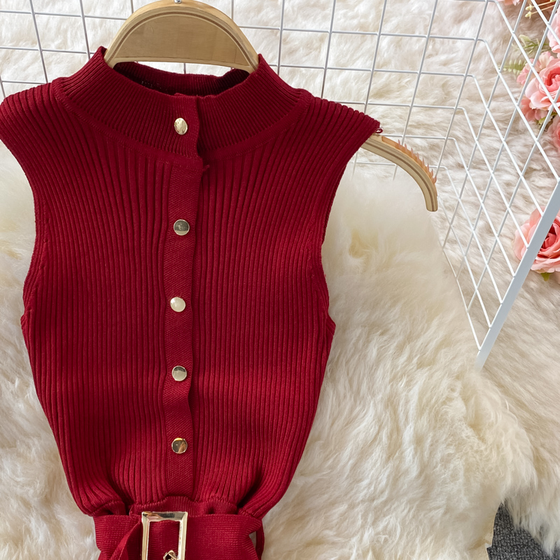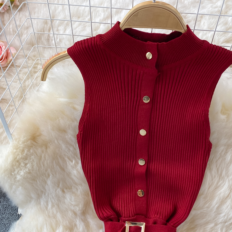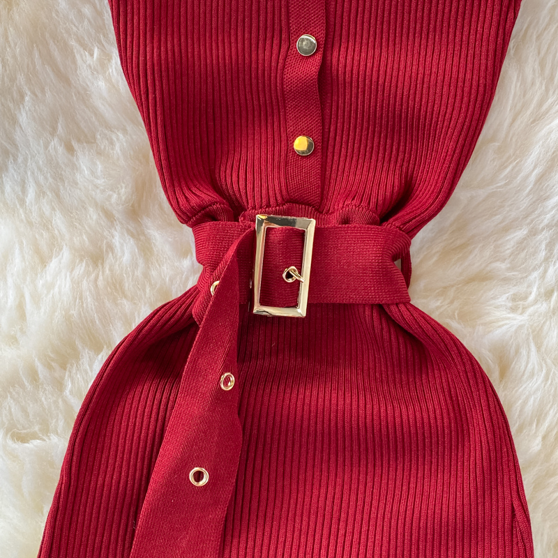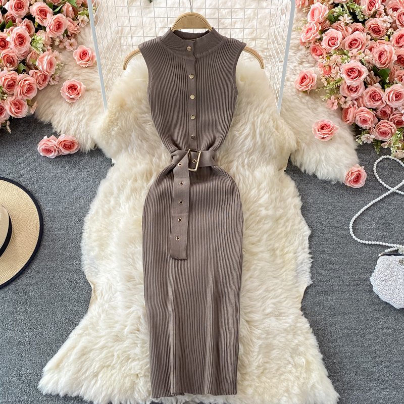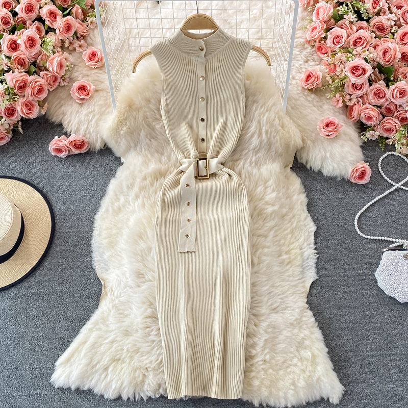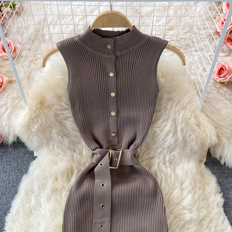 Luxurious Stretch Knitted Stand-Collar and Slim Mid-Length Bodycon Dress