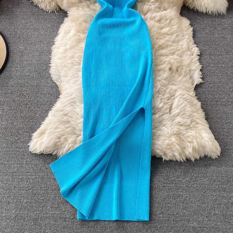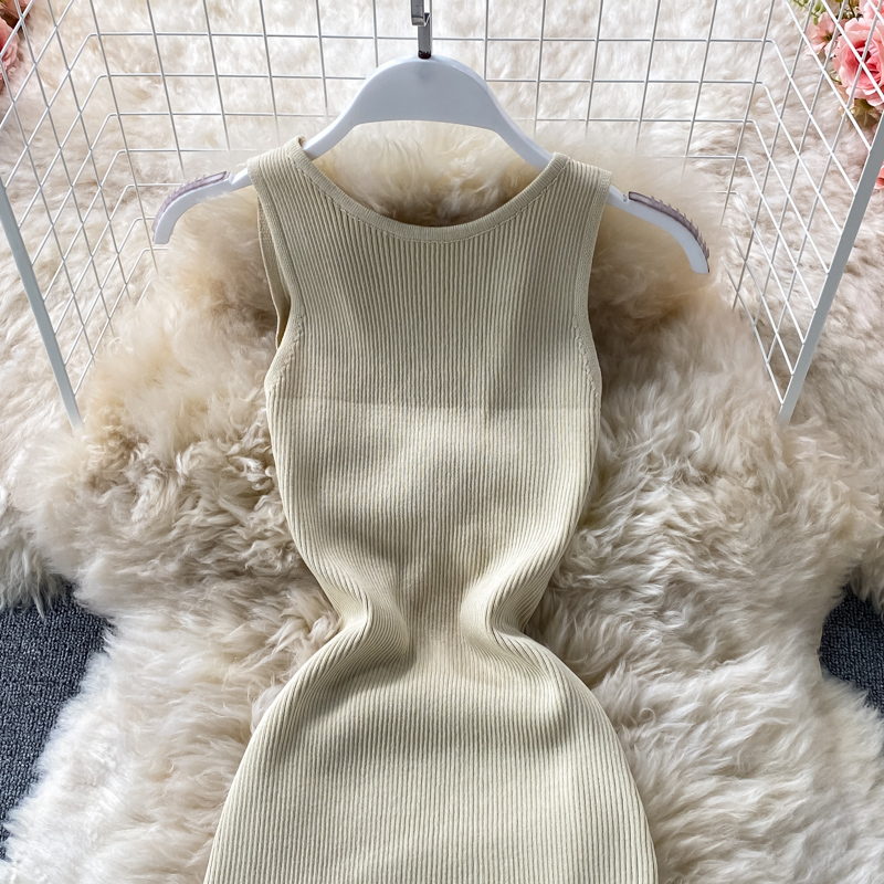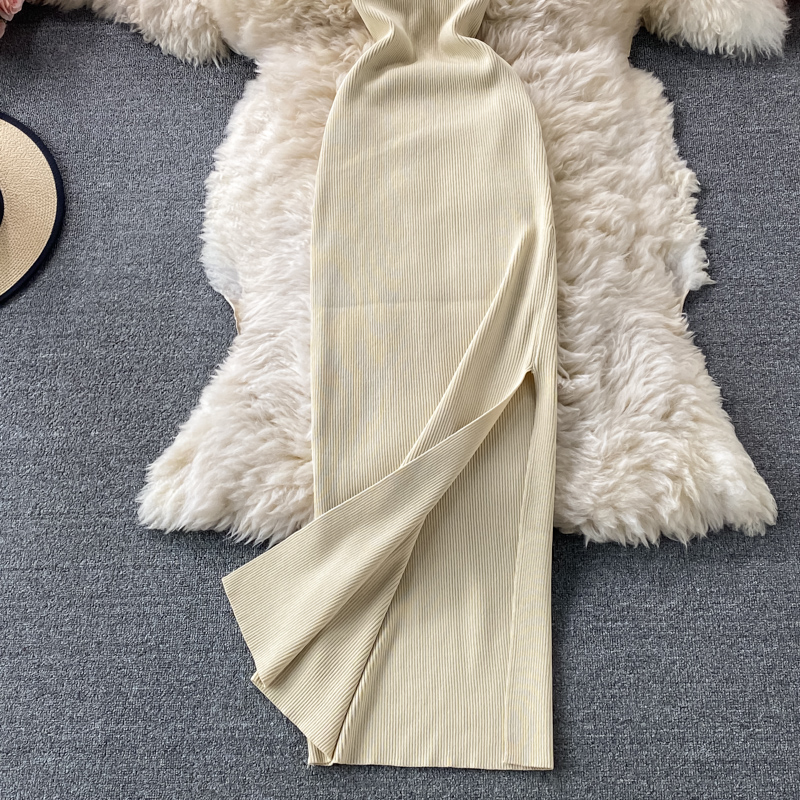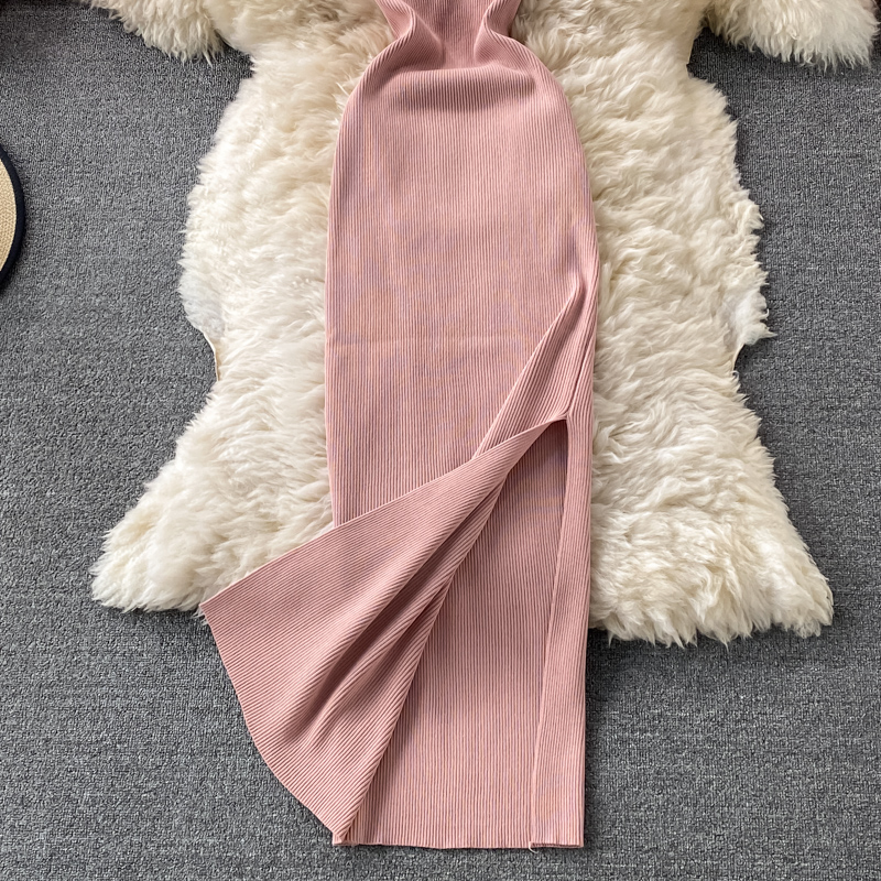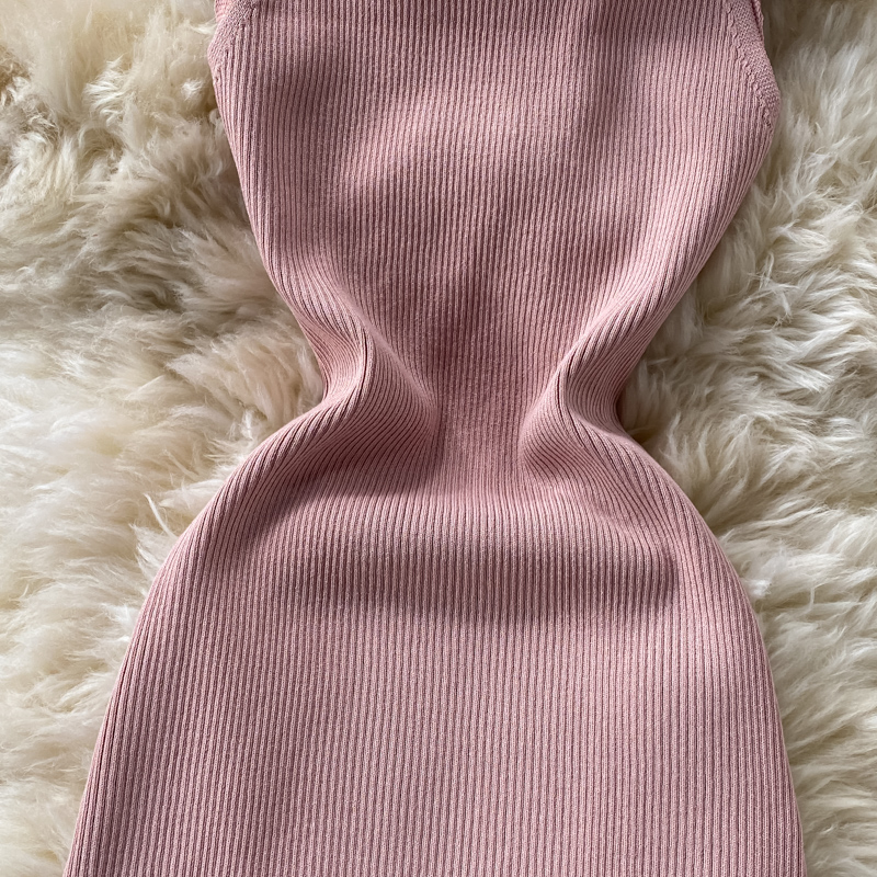 Luxurious Stretch Knitted With Round Neck Midi Dress