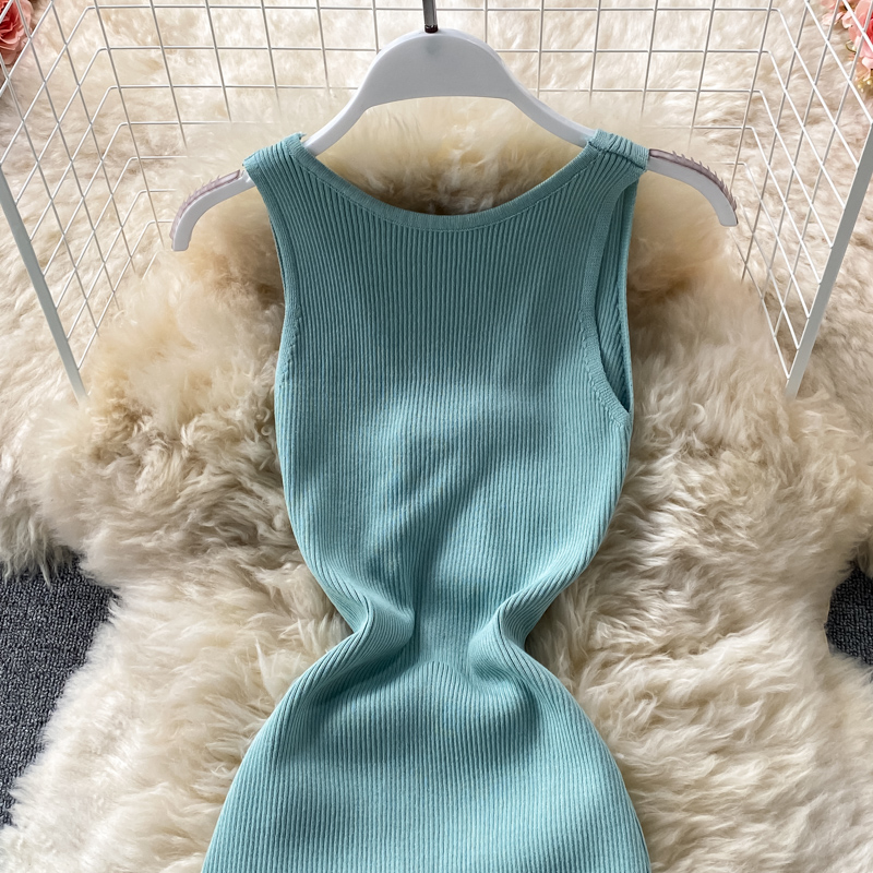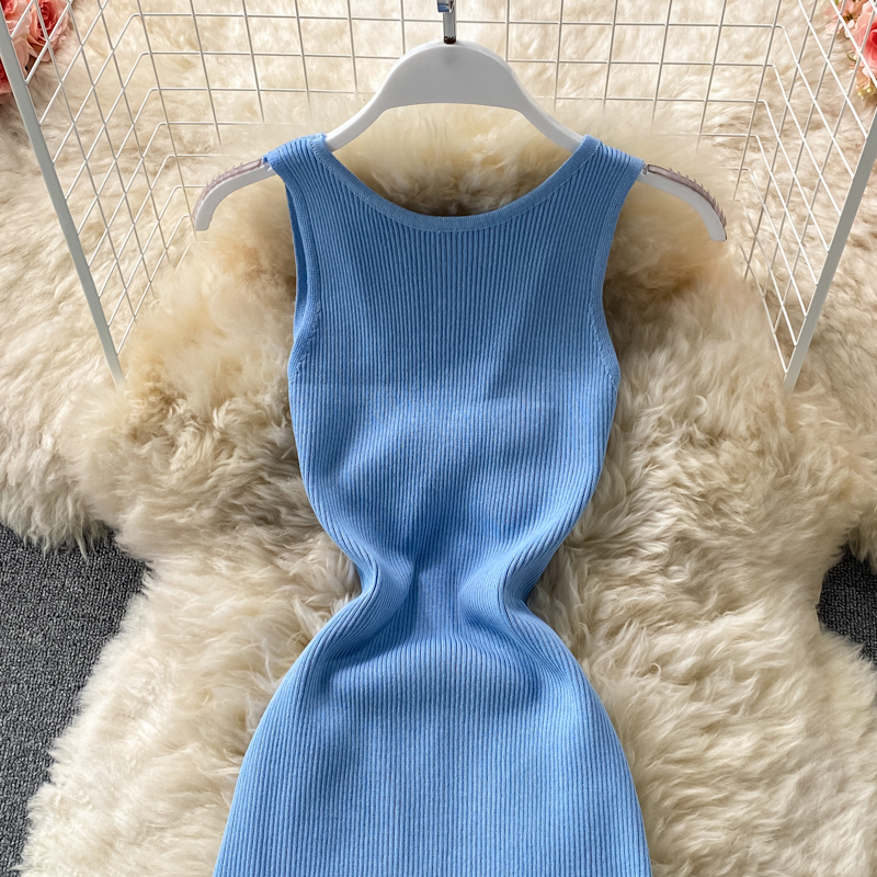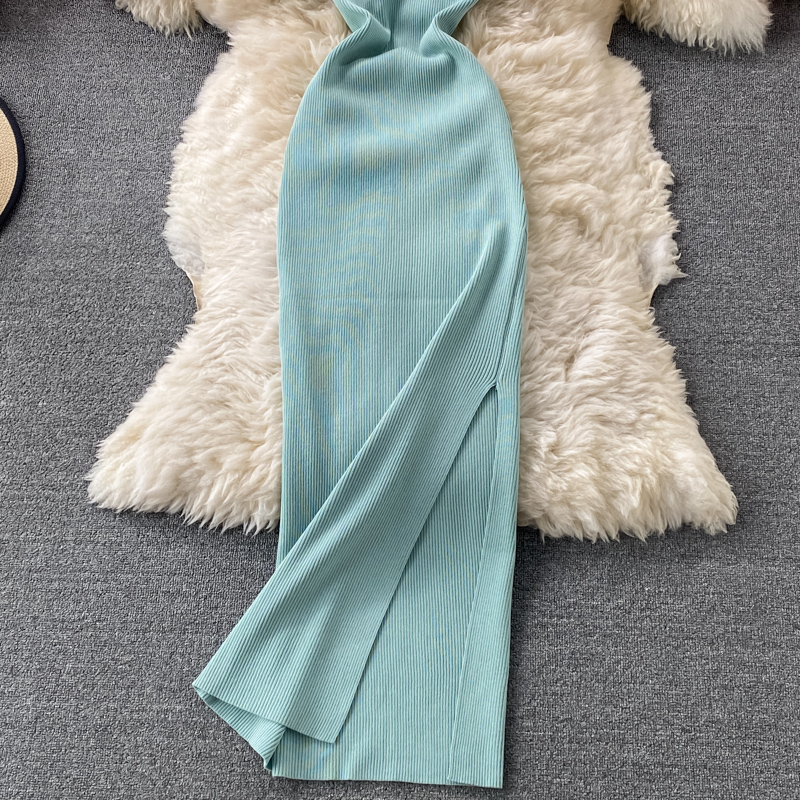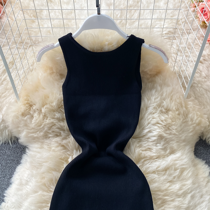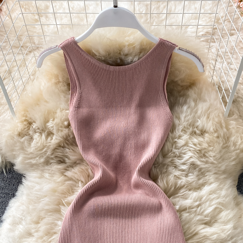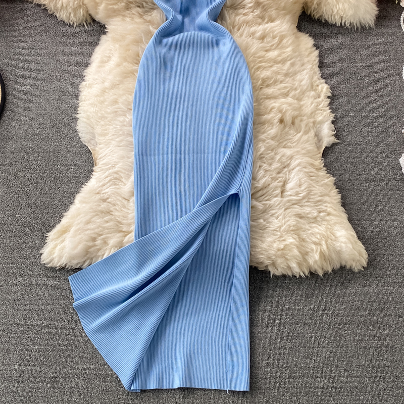 Luxurious Stretch Knitted With Round Neck Midi Dress