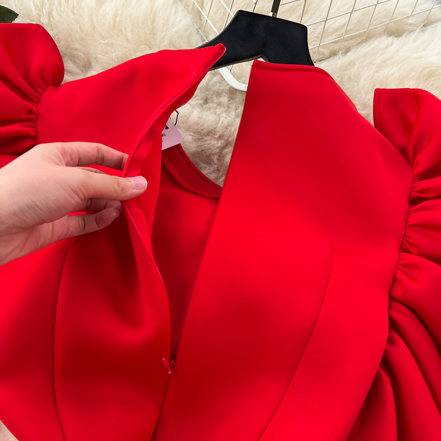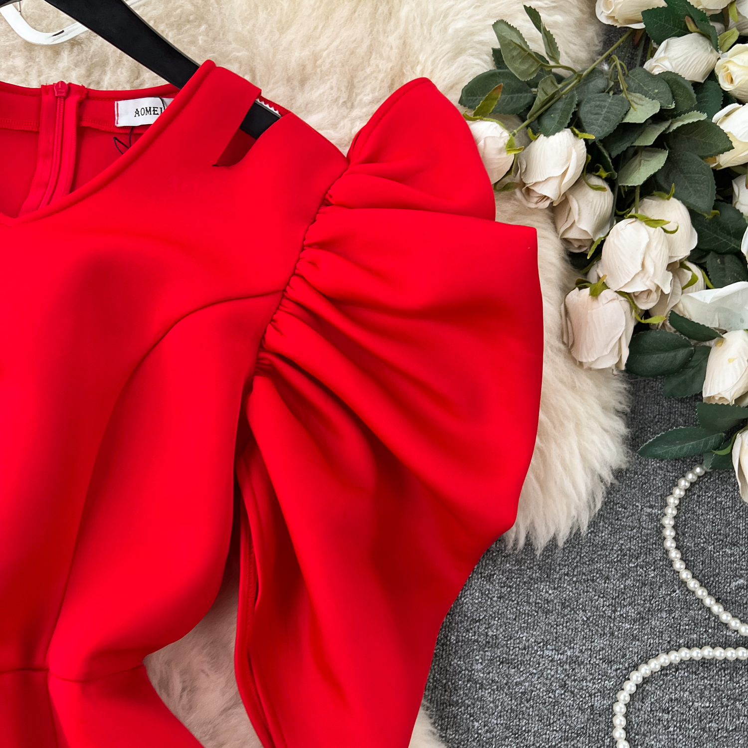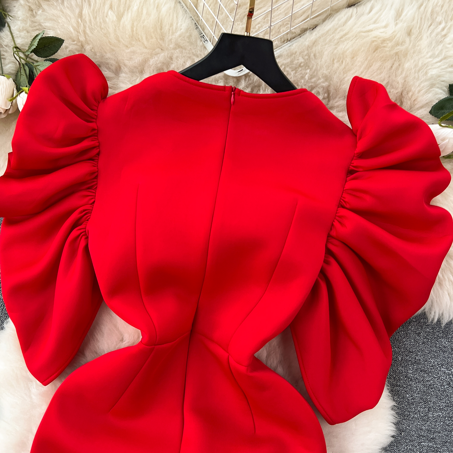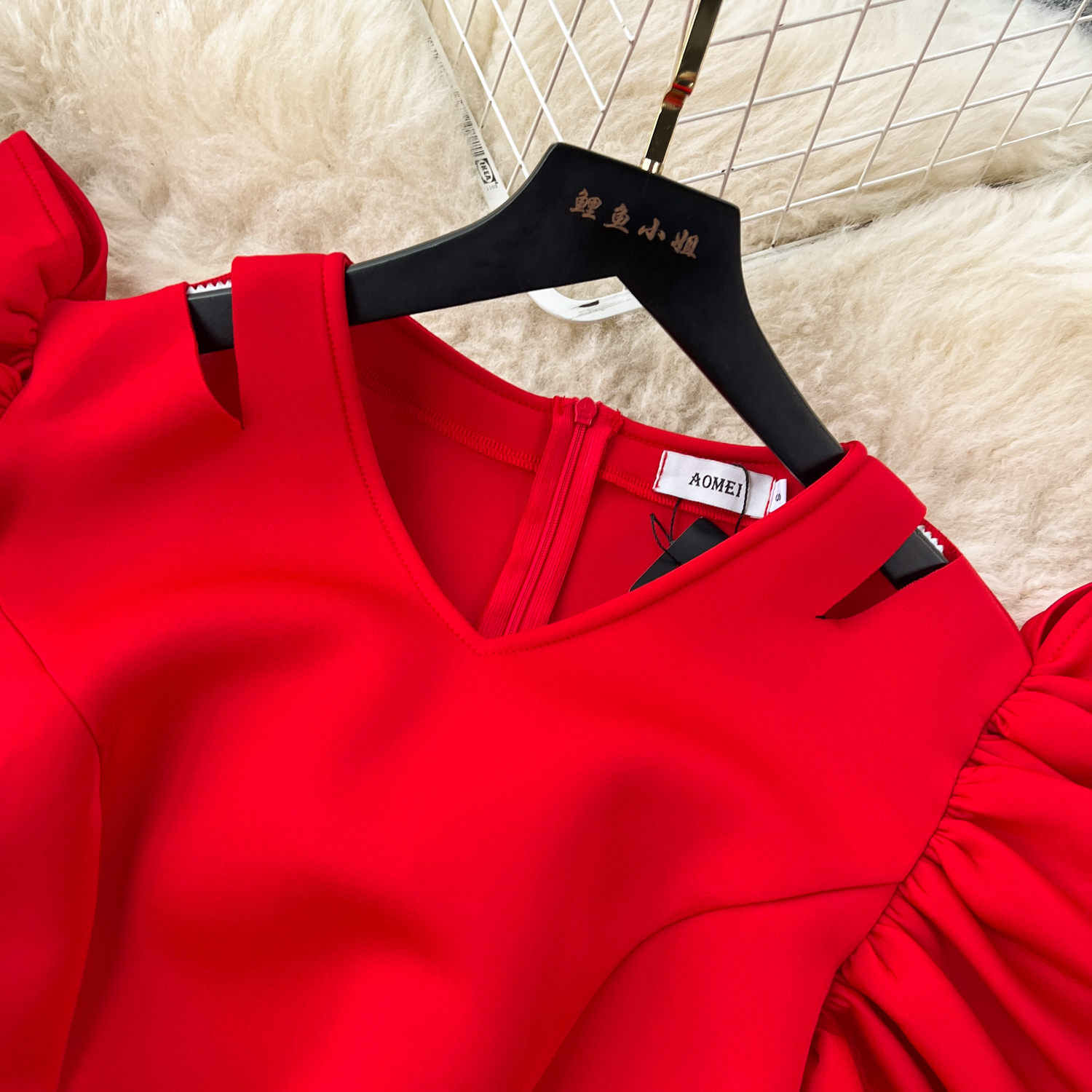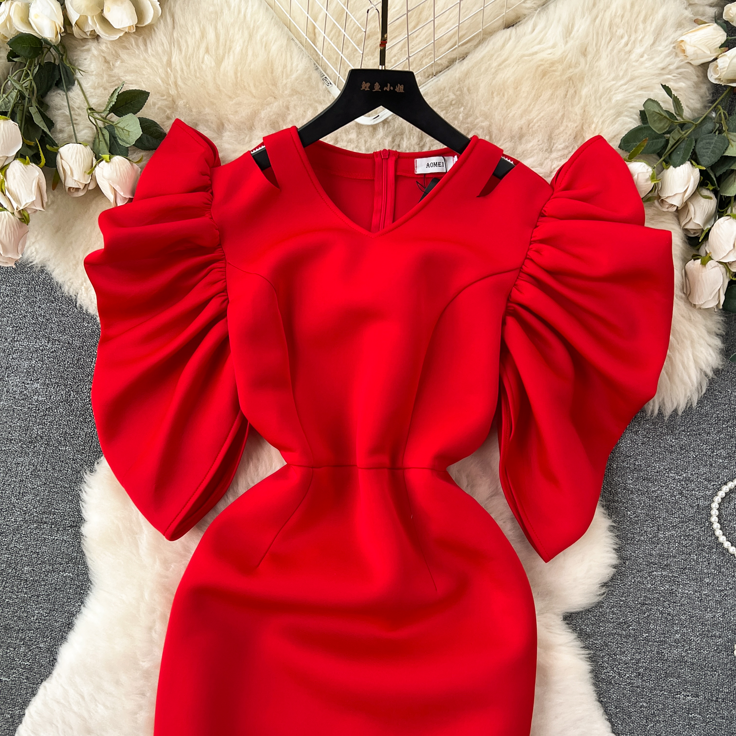 - Pattern: Split neckline dress with a gown-inspired silhouette
