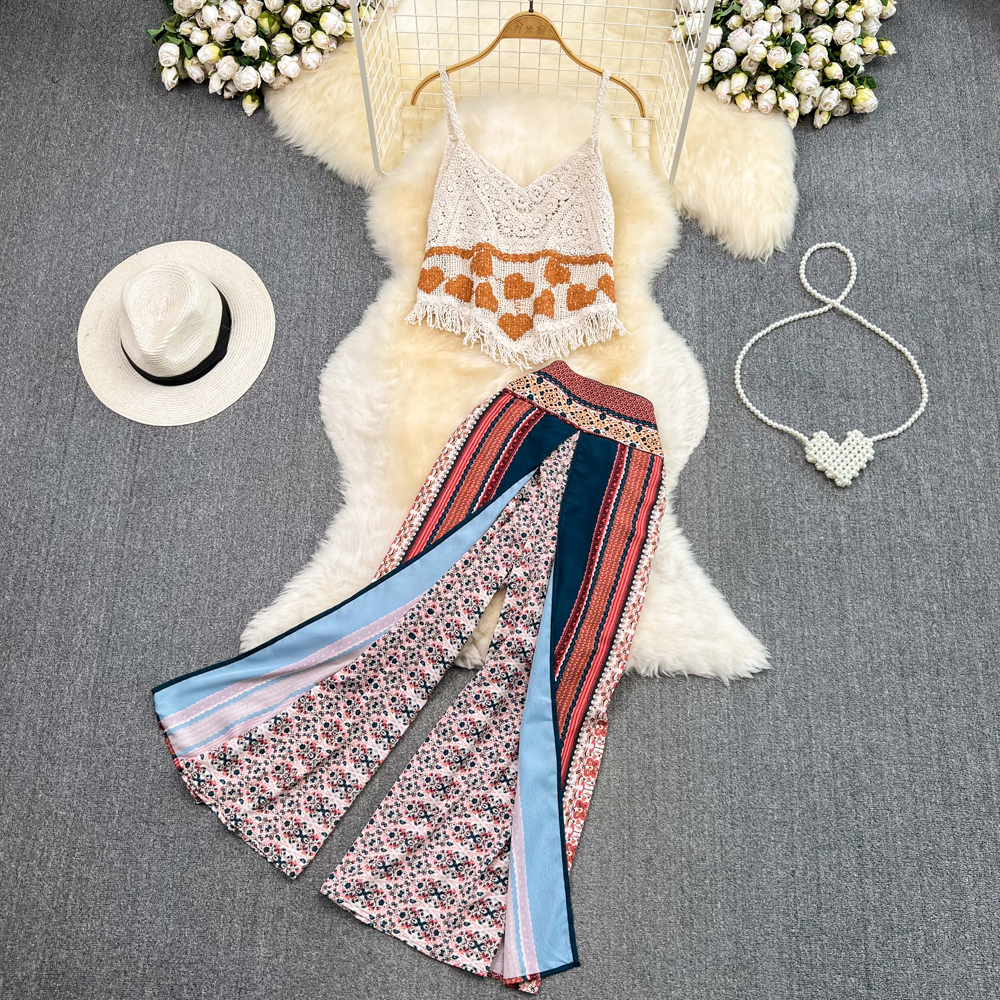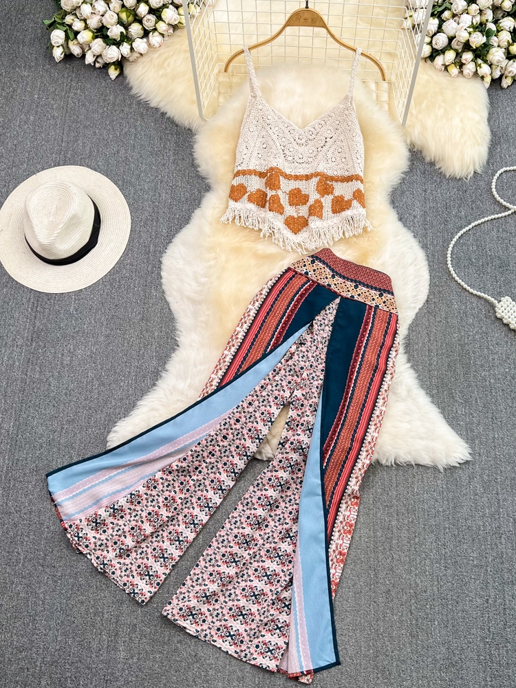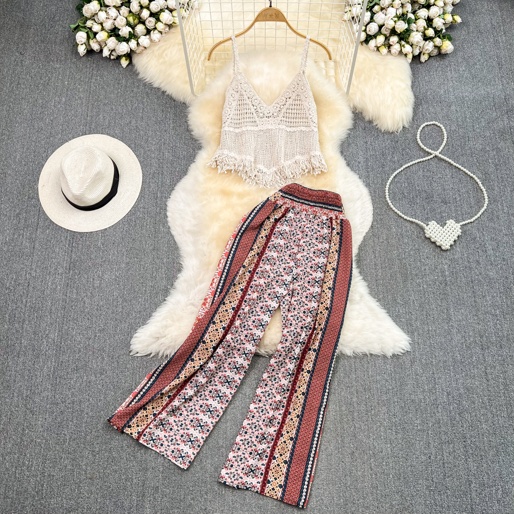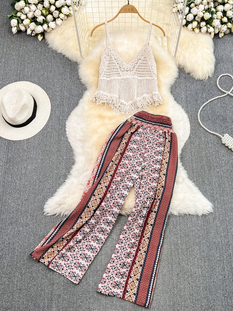 Modern Maven Tassel Camisole and Wide-Leg Pant Combo For Vacation