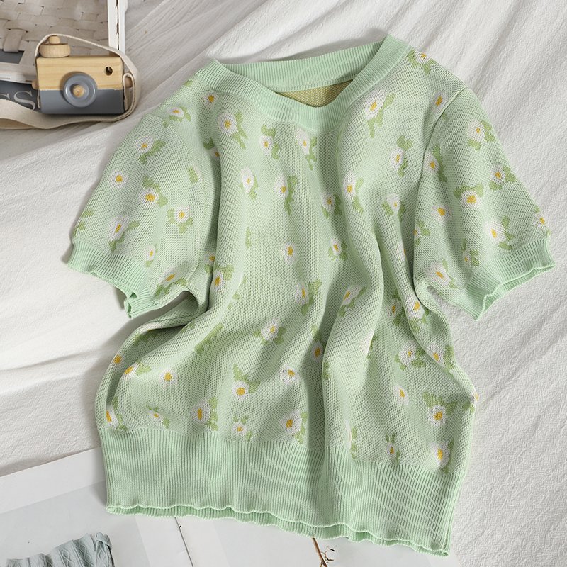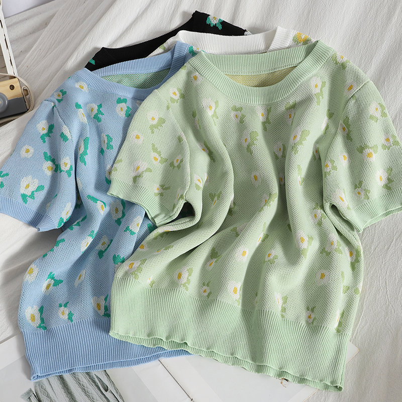 New Slim Korean Versatile Round Neck Jacquard Knitwear summer Tops