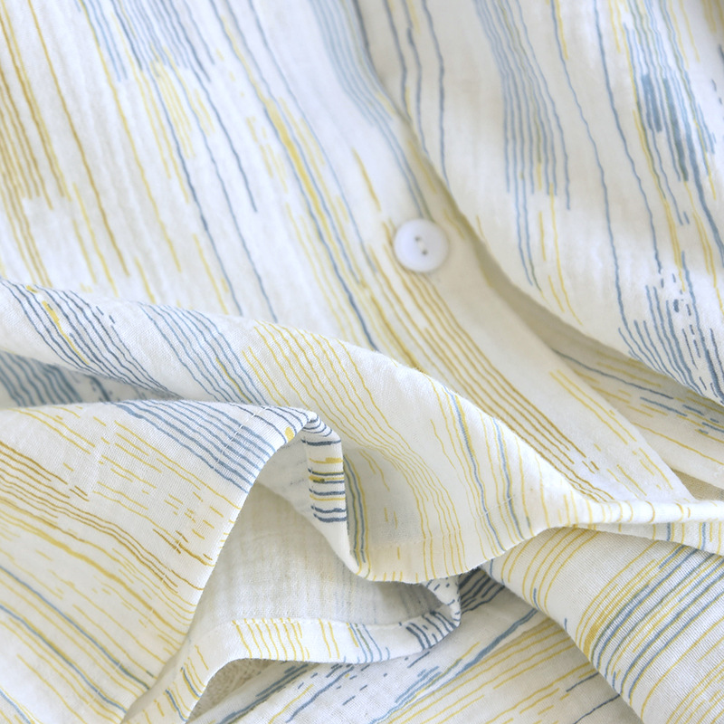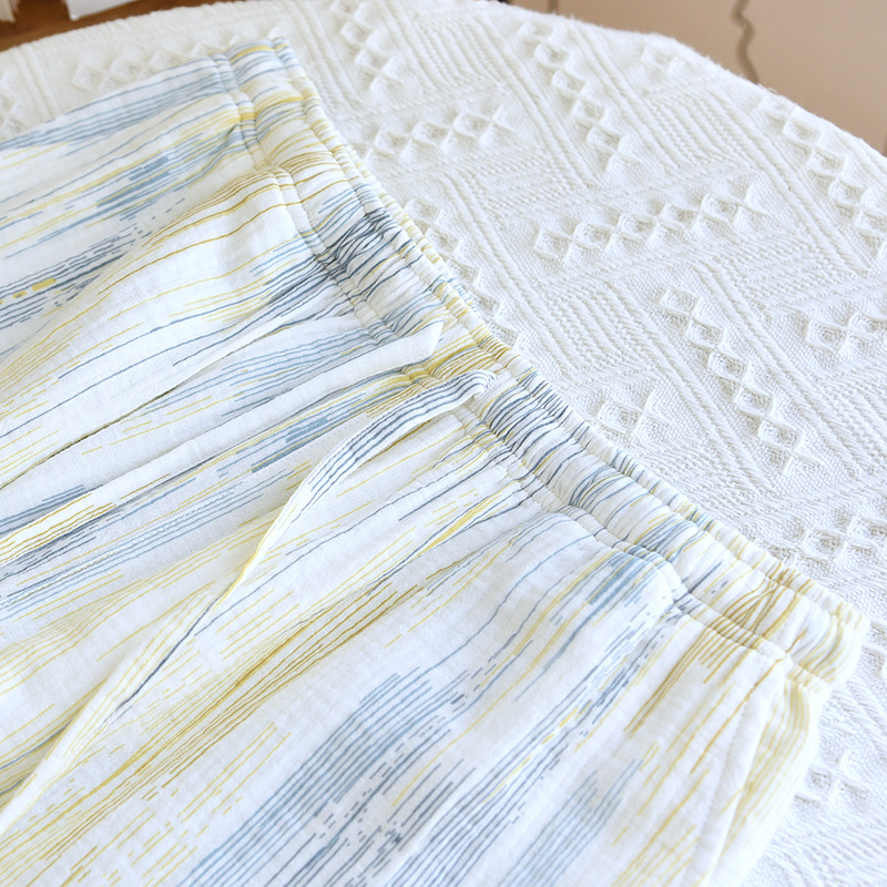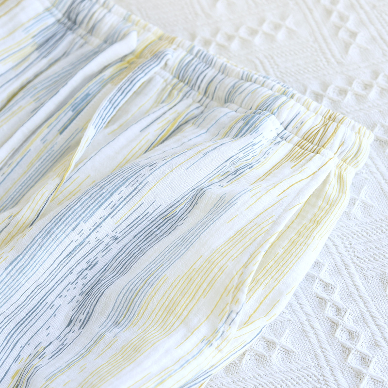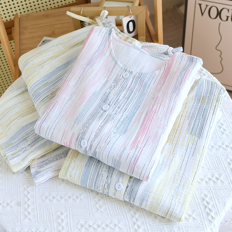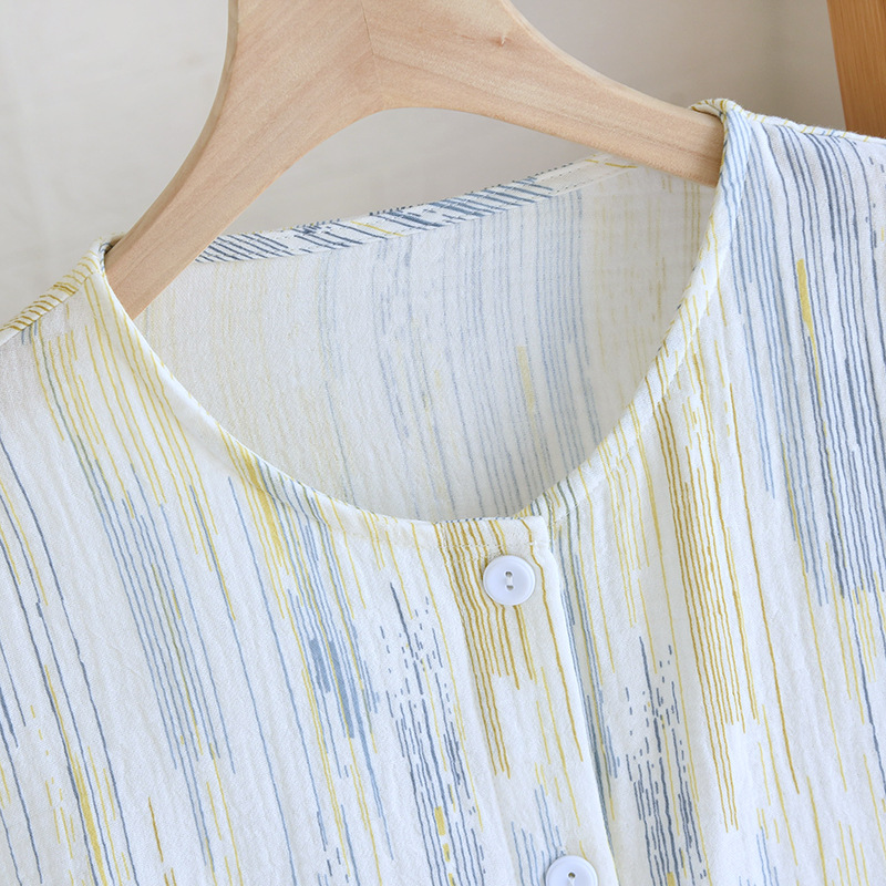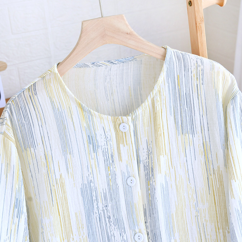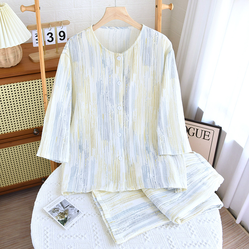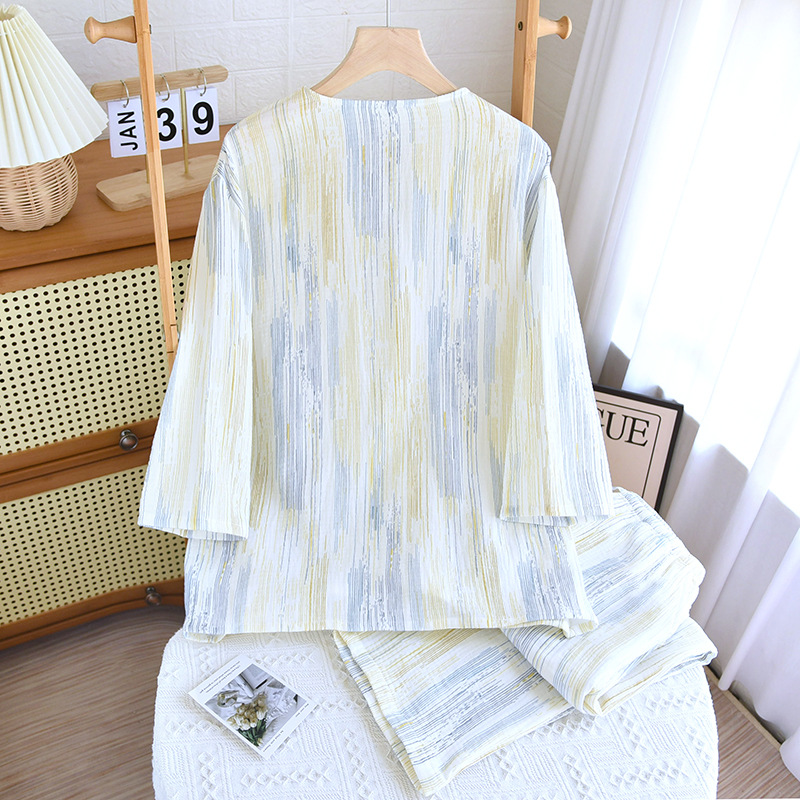 Pajamas cotton women's summer class A thin cotton yarn striped cropped sleeve cropped pants cotton loungewear set