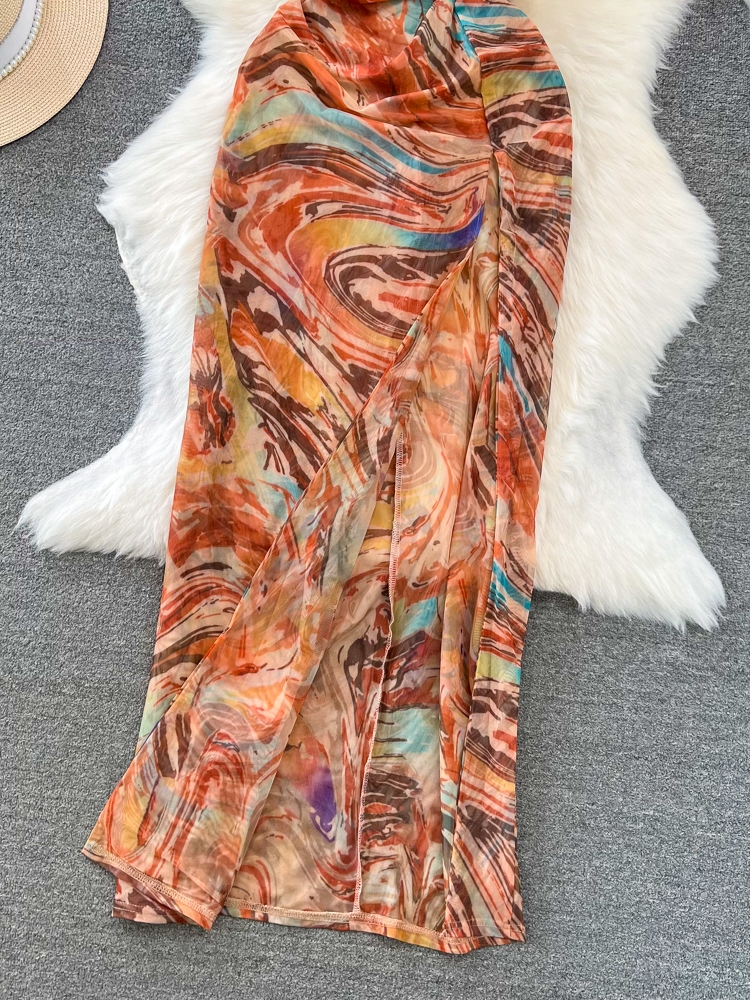 - Pattern: Bandeau Vest Tops with High-waisted Skirt