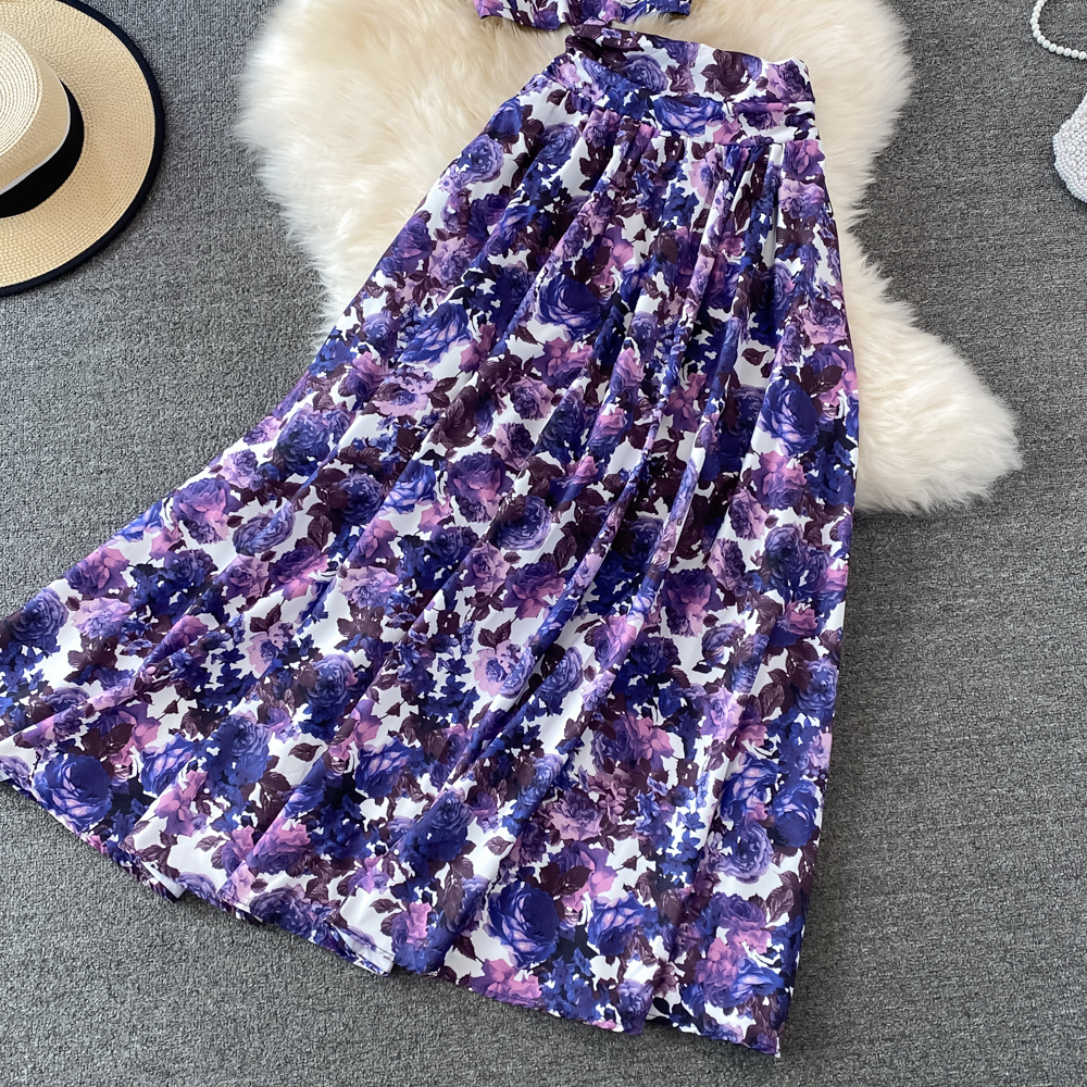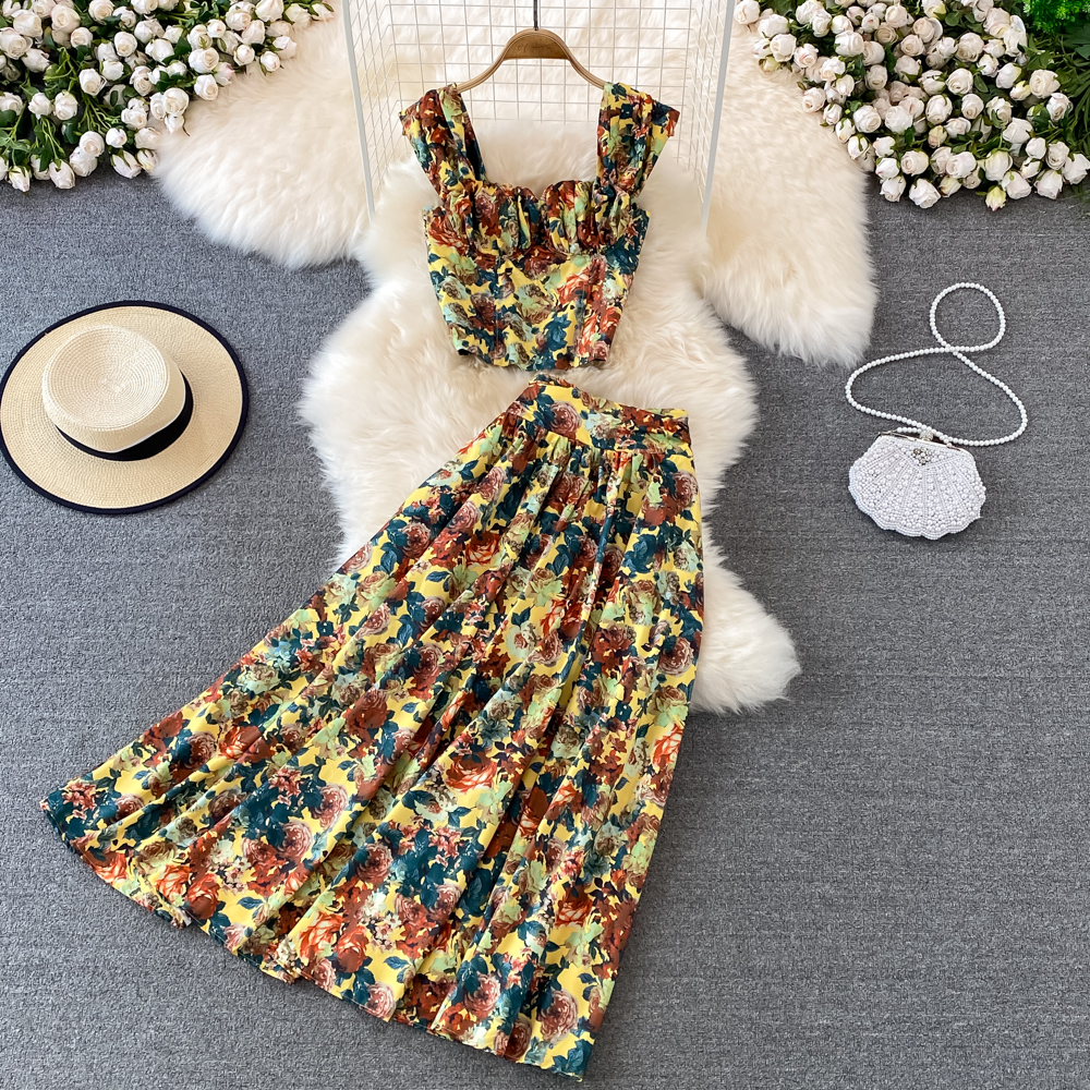 - Pattern: Bandeau Vest Tops & High-waisted Skirt
