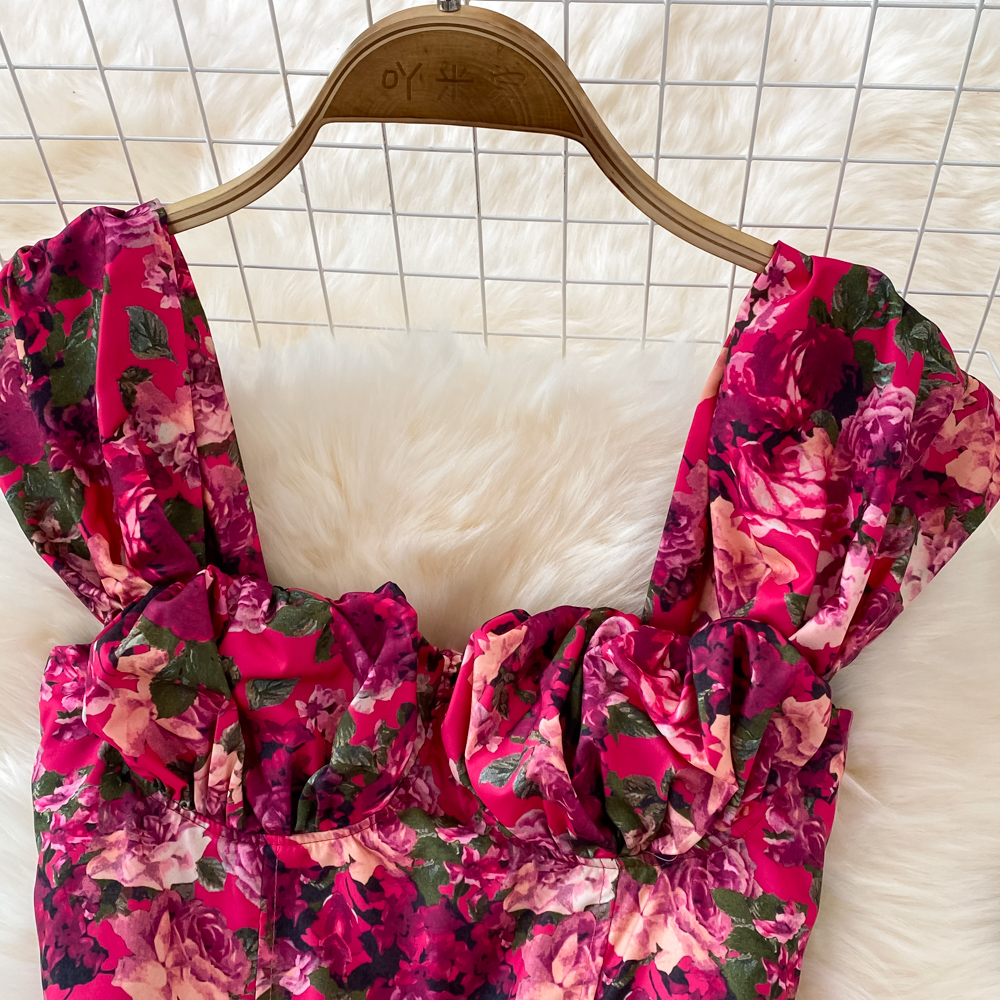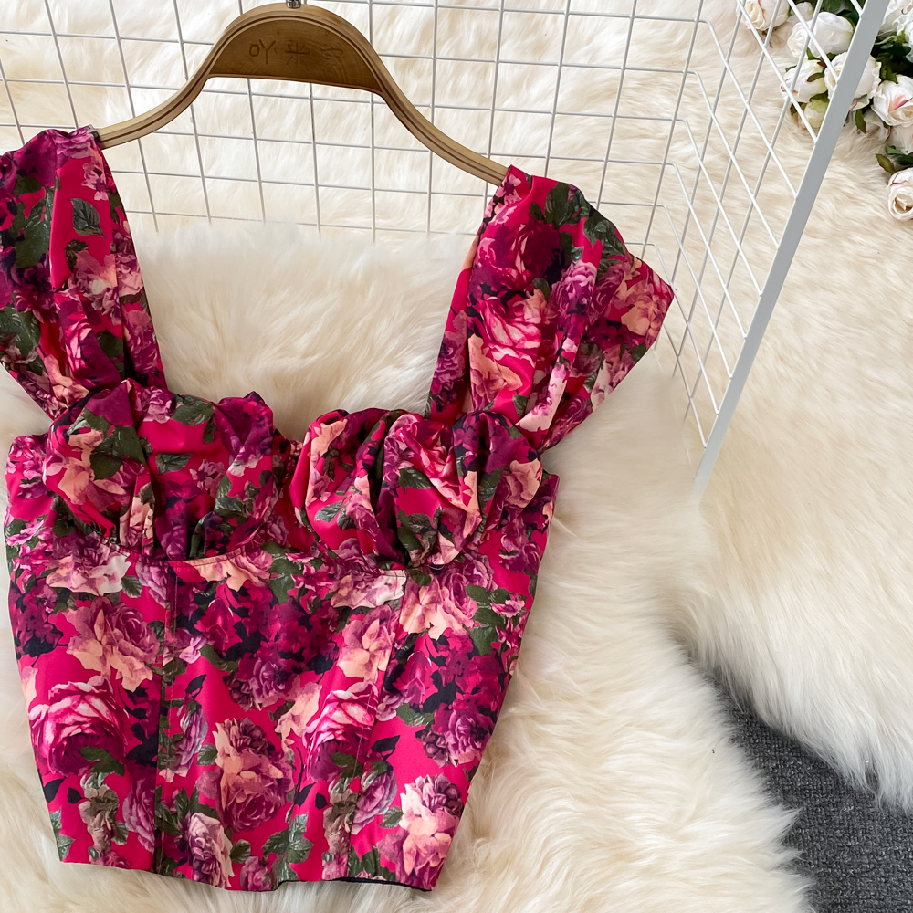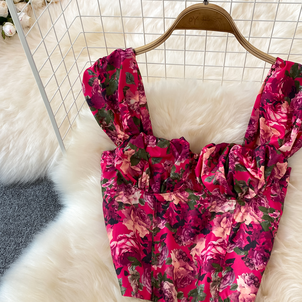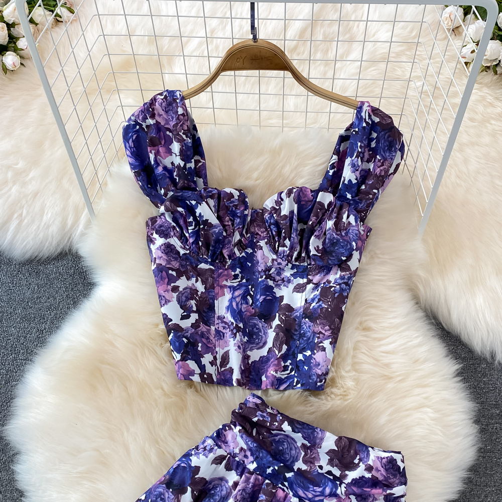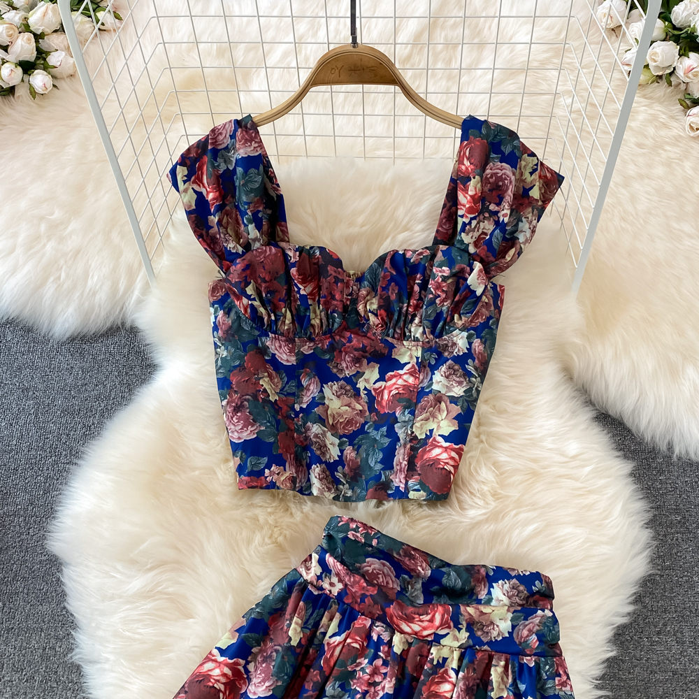 Seaside Elegant High-Waisted A-Line Floral Skirt and Cropped Top