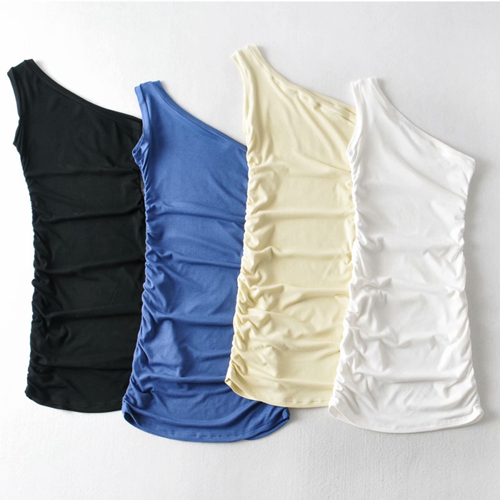 Simple One-Shoulder, Pleated Solid Colour Bodycon