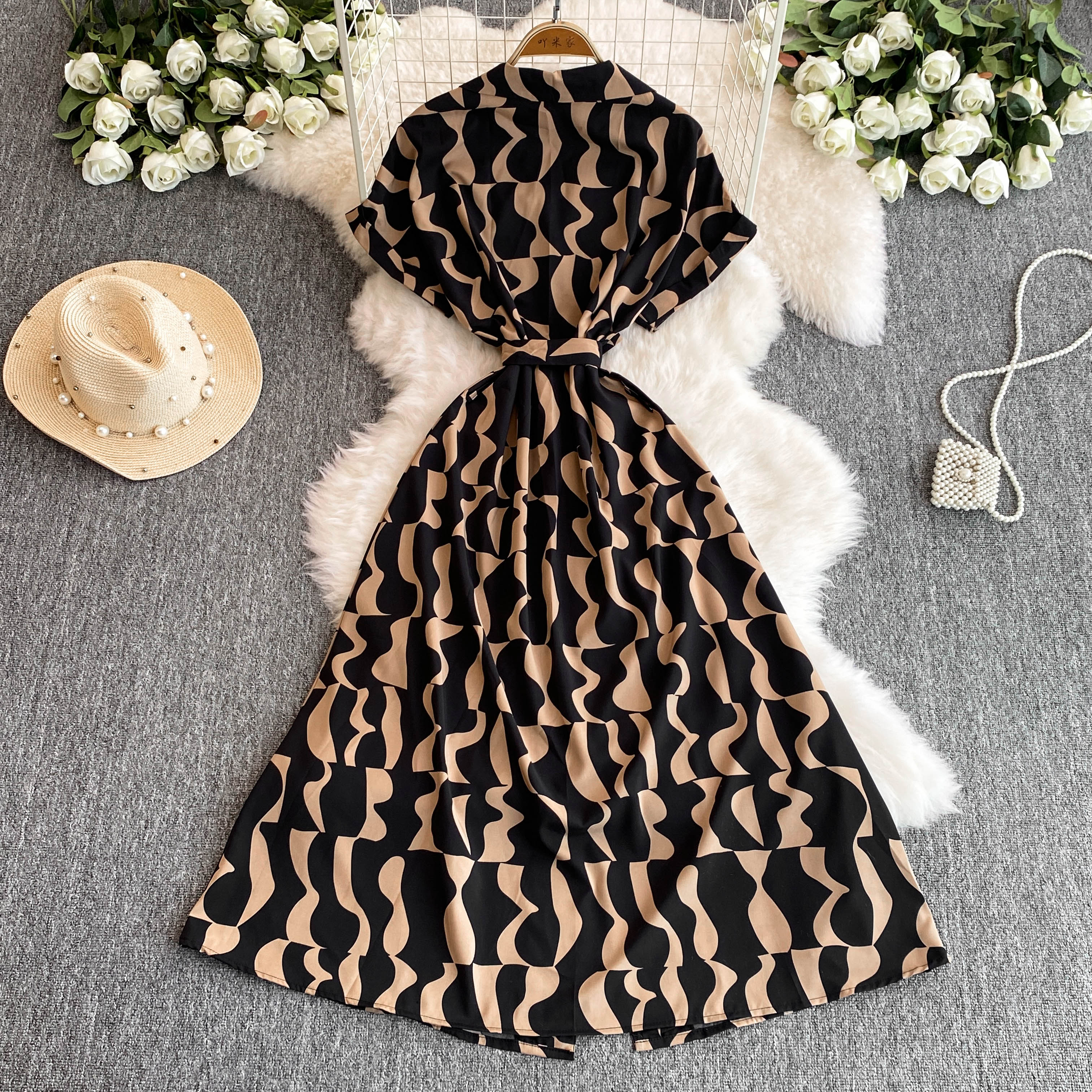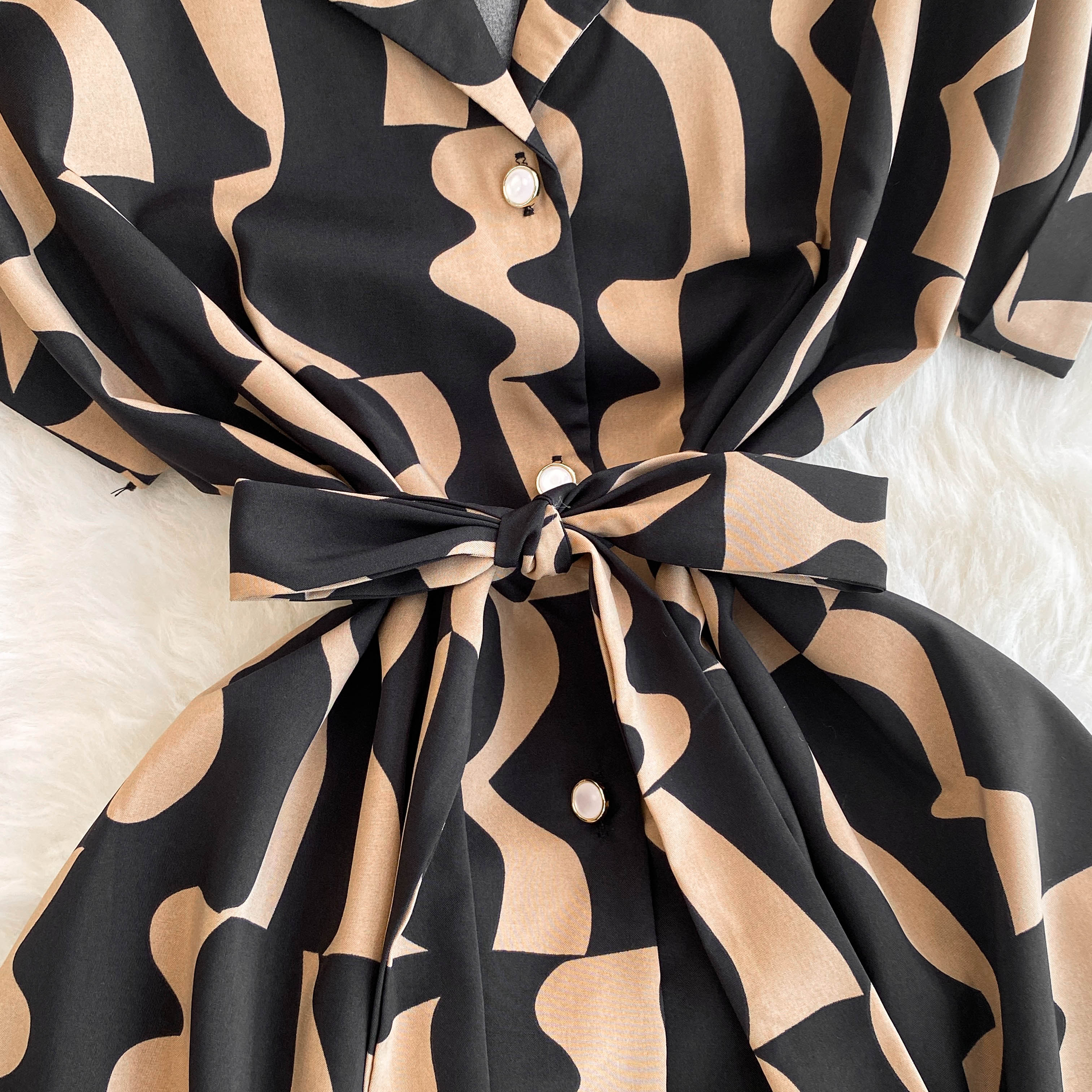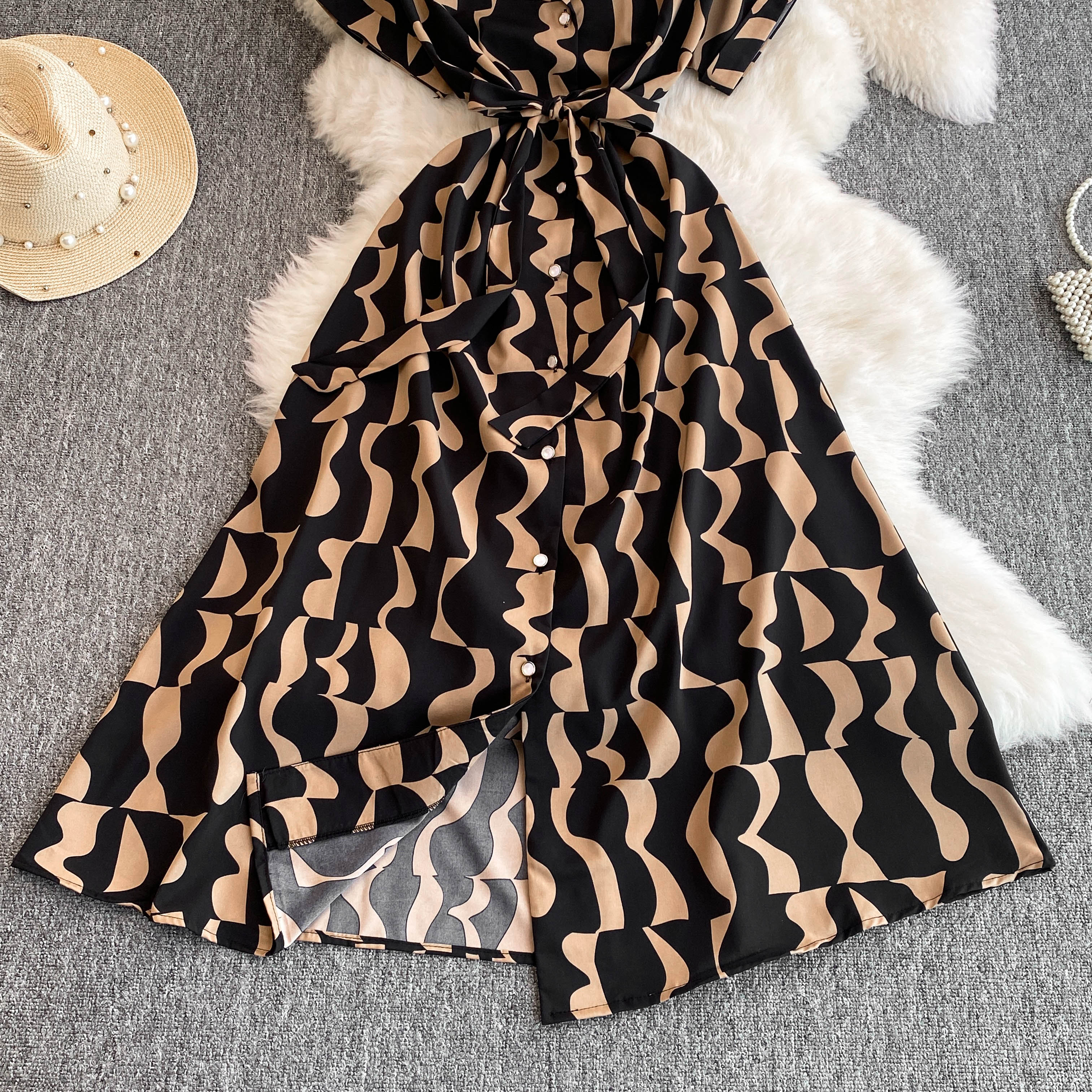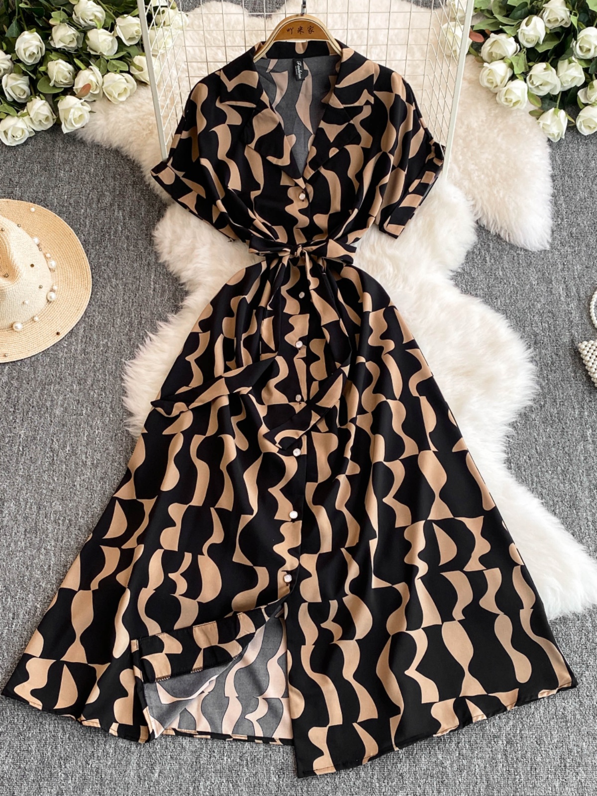 Sleek Japanese Style Mid-Length Dress with High-End Printing Design