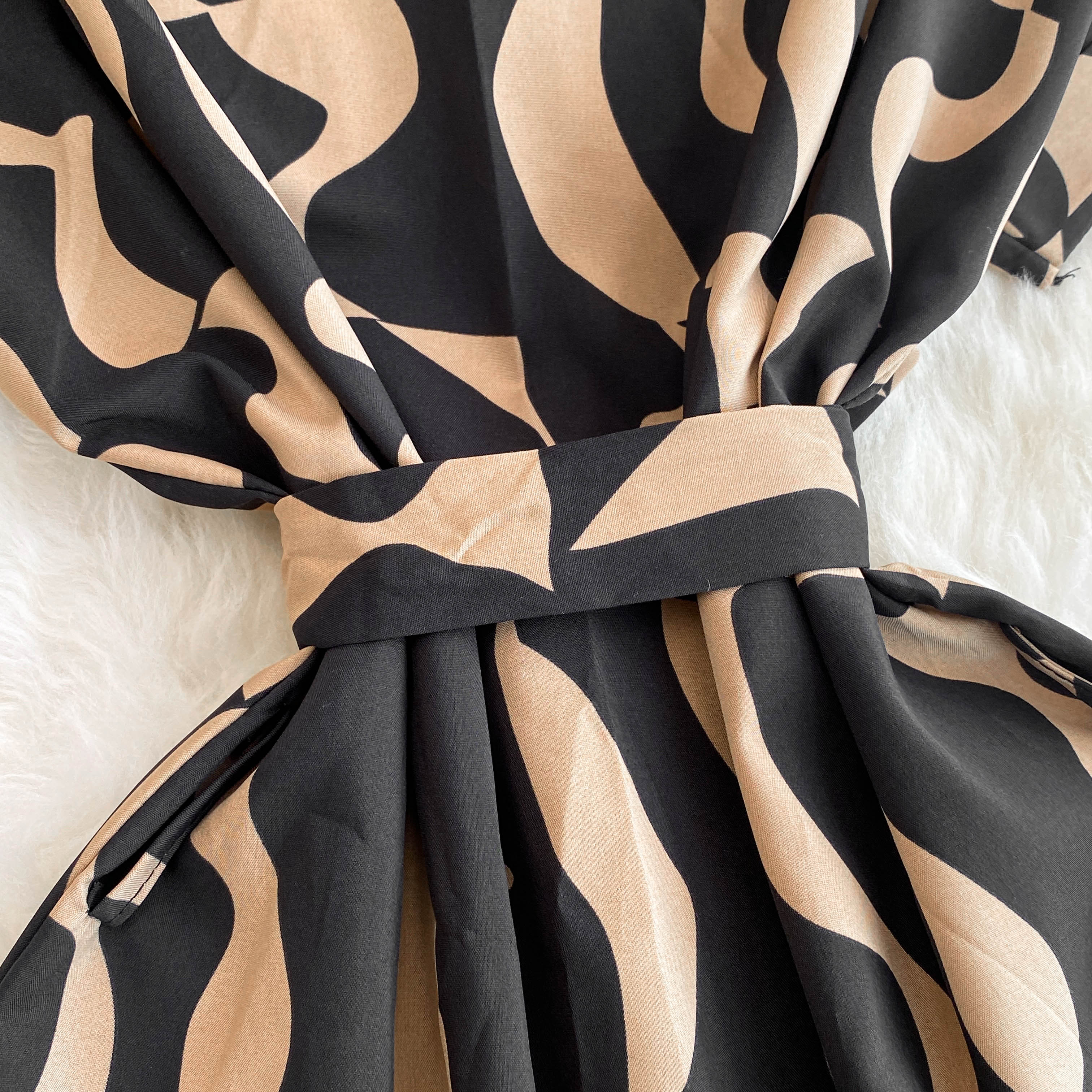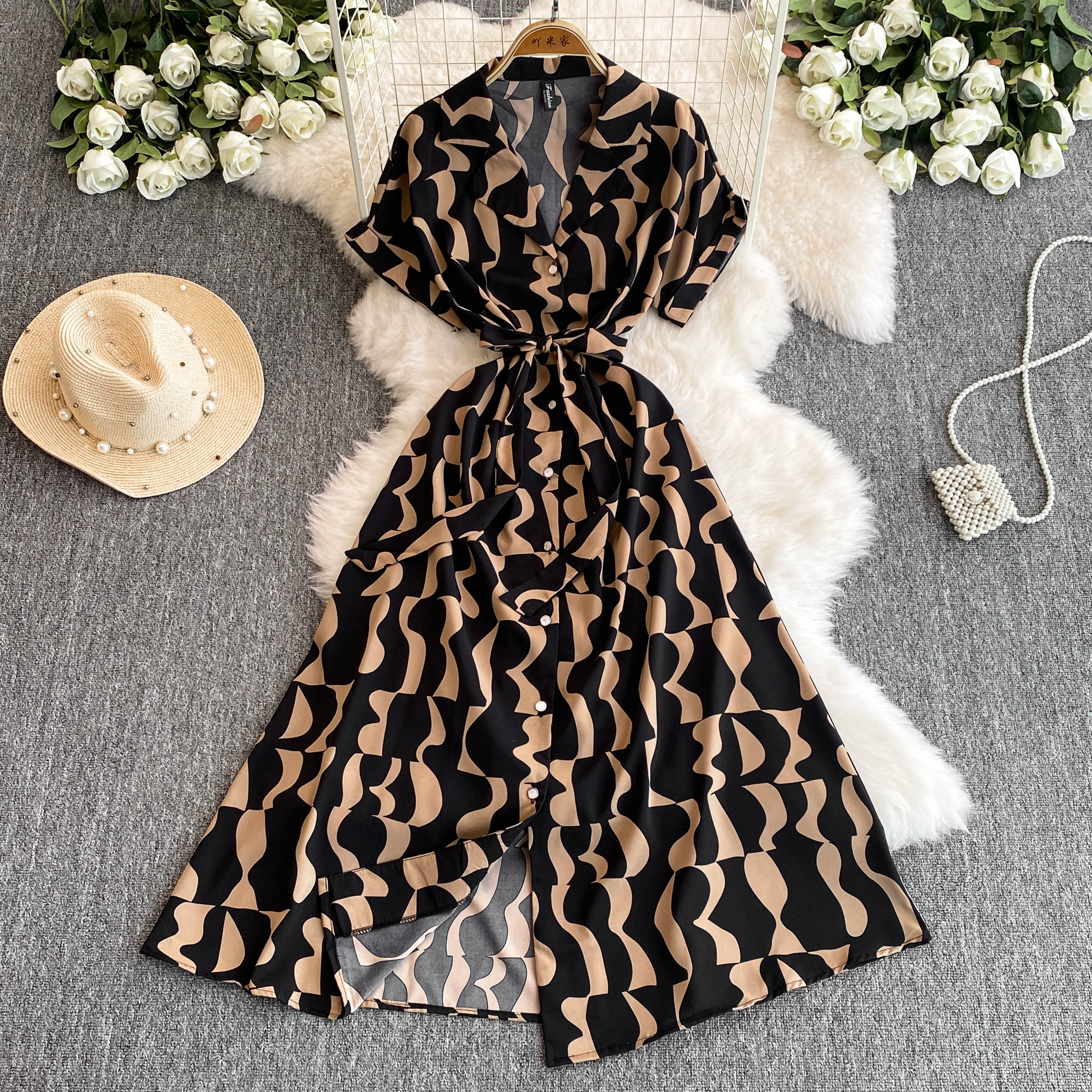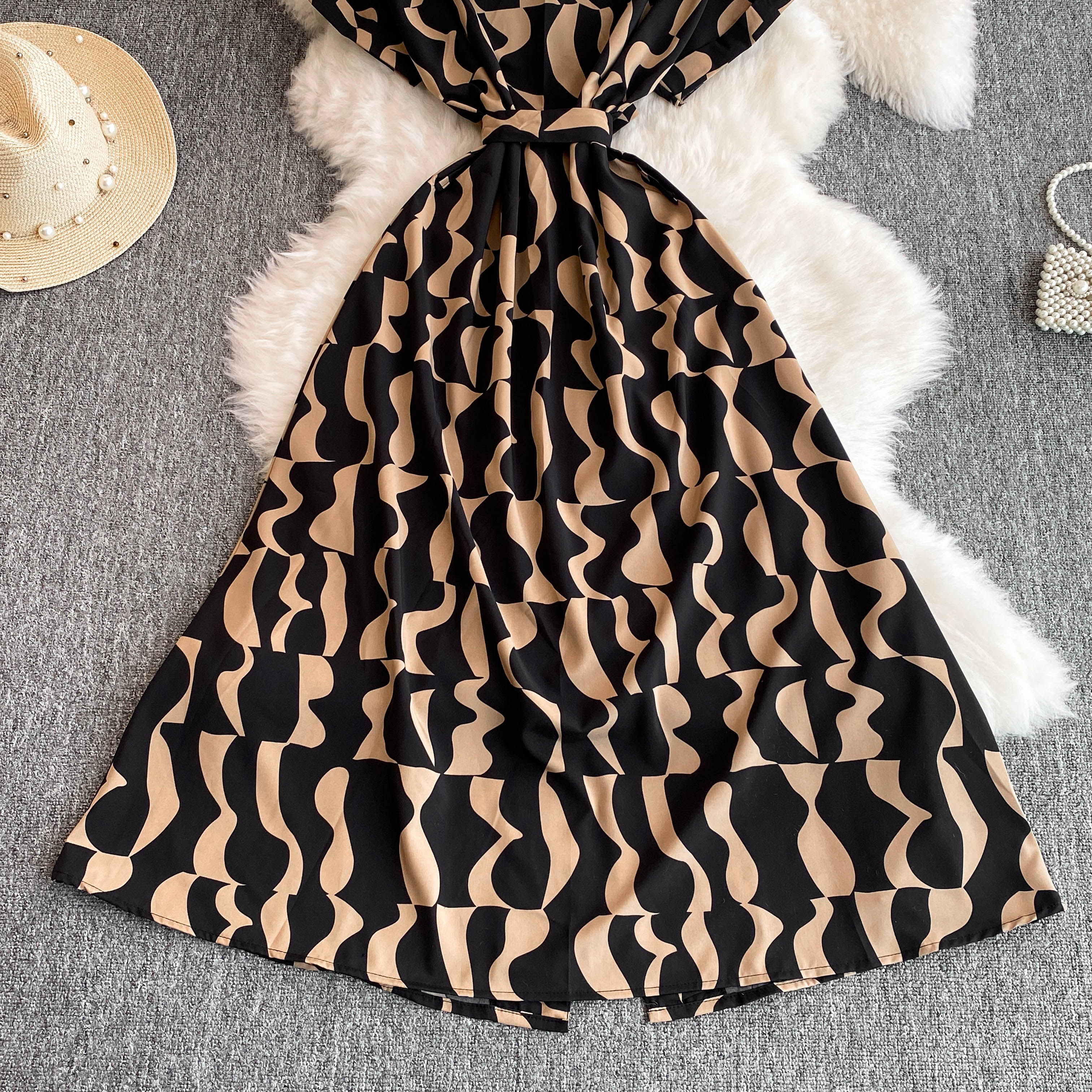 Sleek Japanese Style Mid-Length Dress with High-End Printing Design