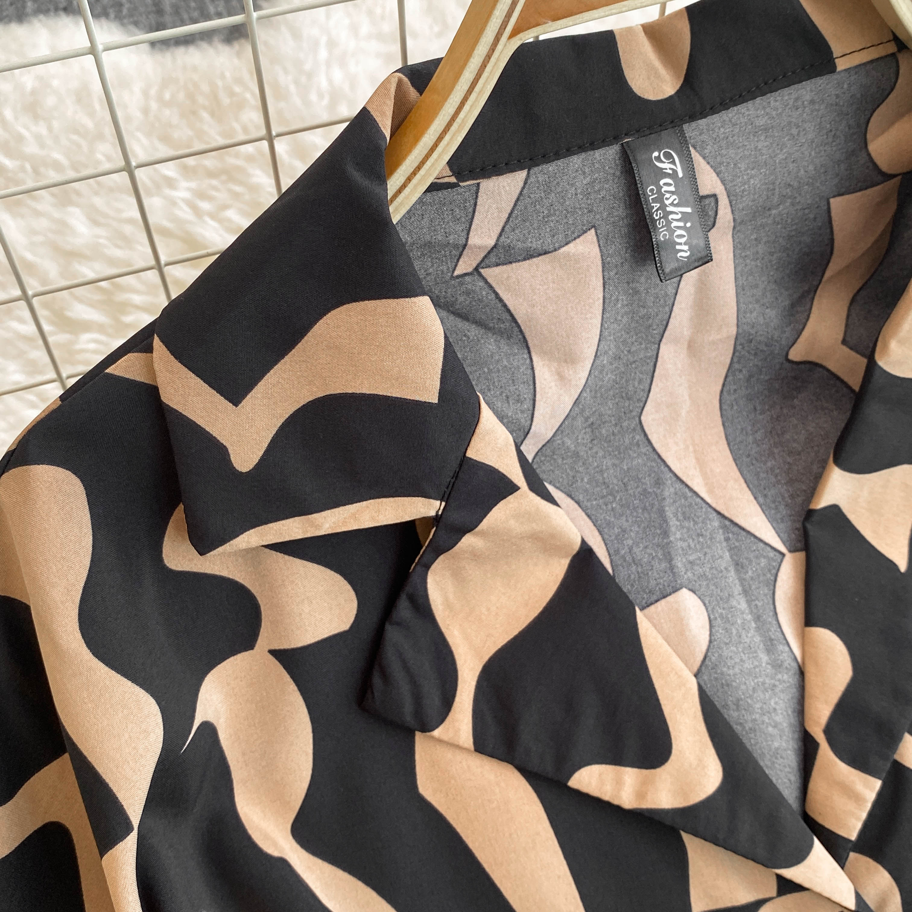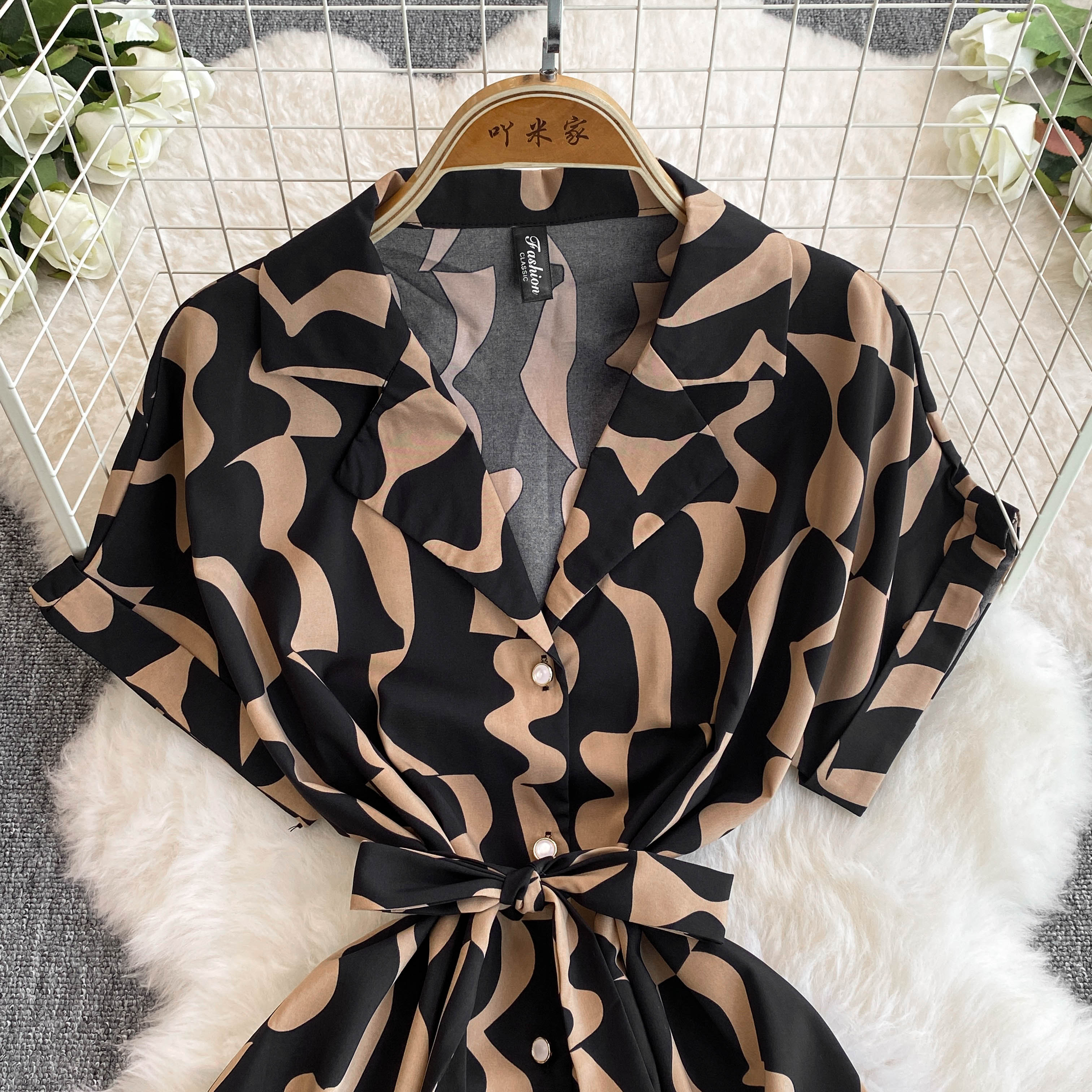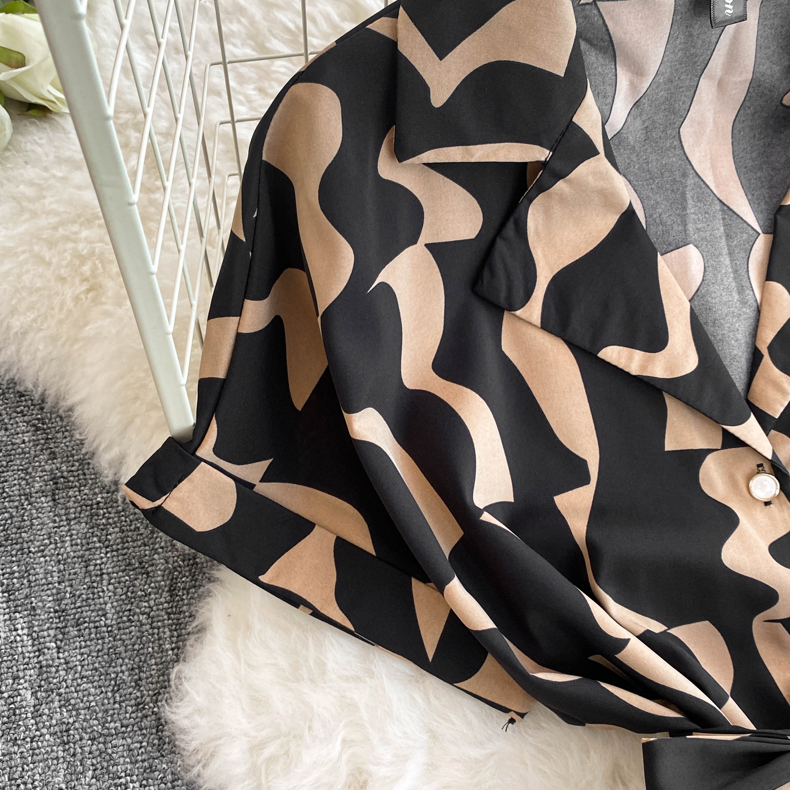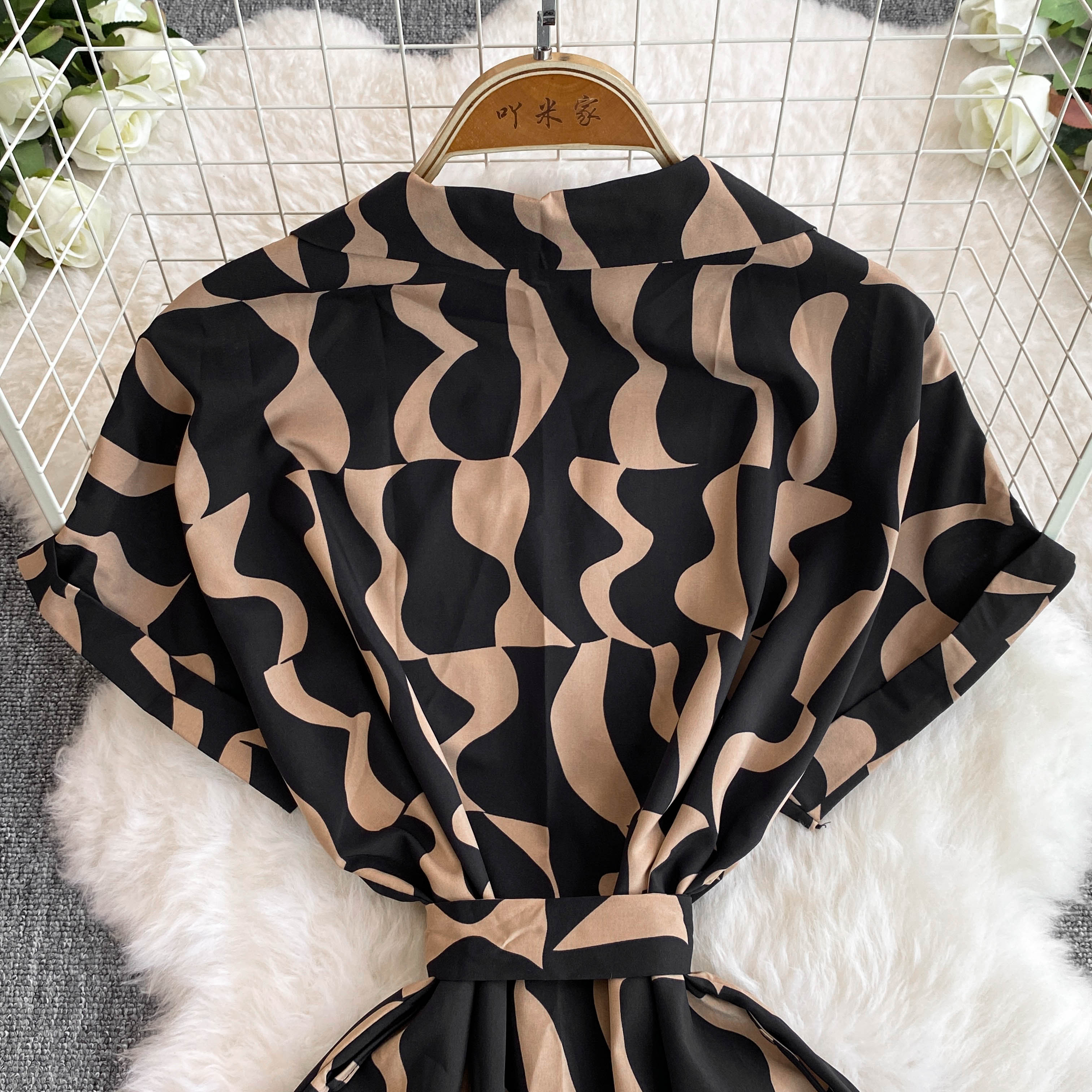 Sleek Japanese Style Mid-Length Dress with High-End Printing Design