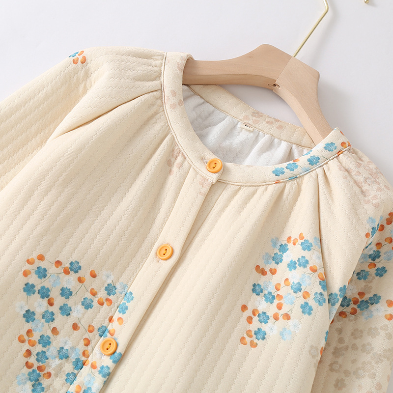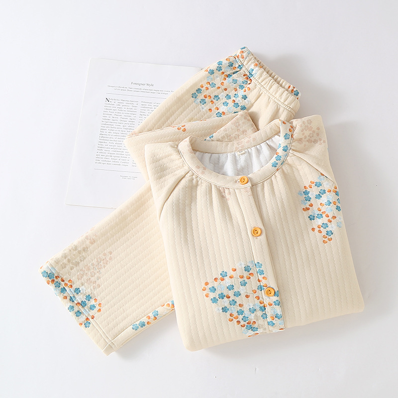 Soft & Soothing Air Cotton Three-Layer Padded Round Neck Long Sleeve Padded Loungewear Suit For Autumn And Winter