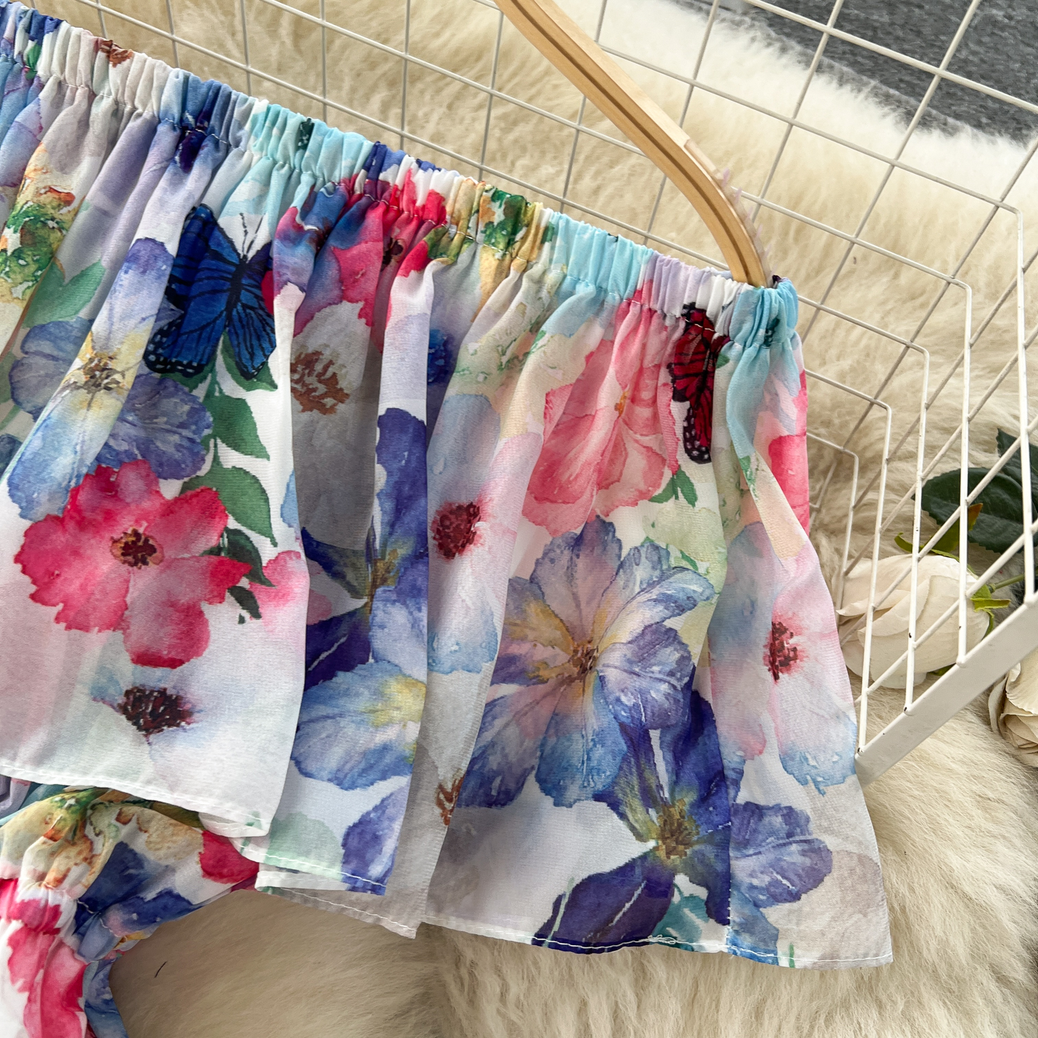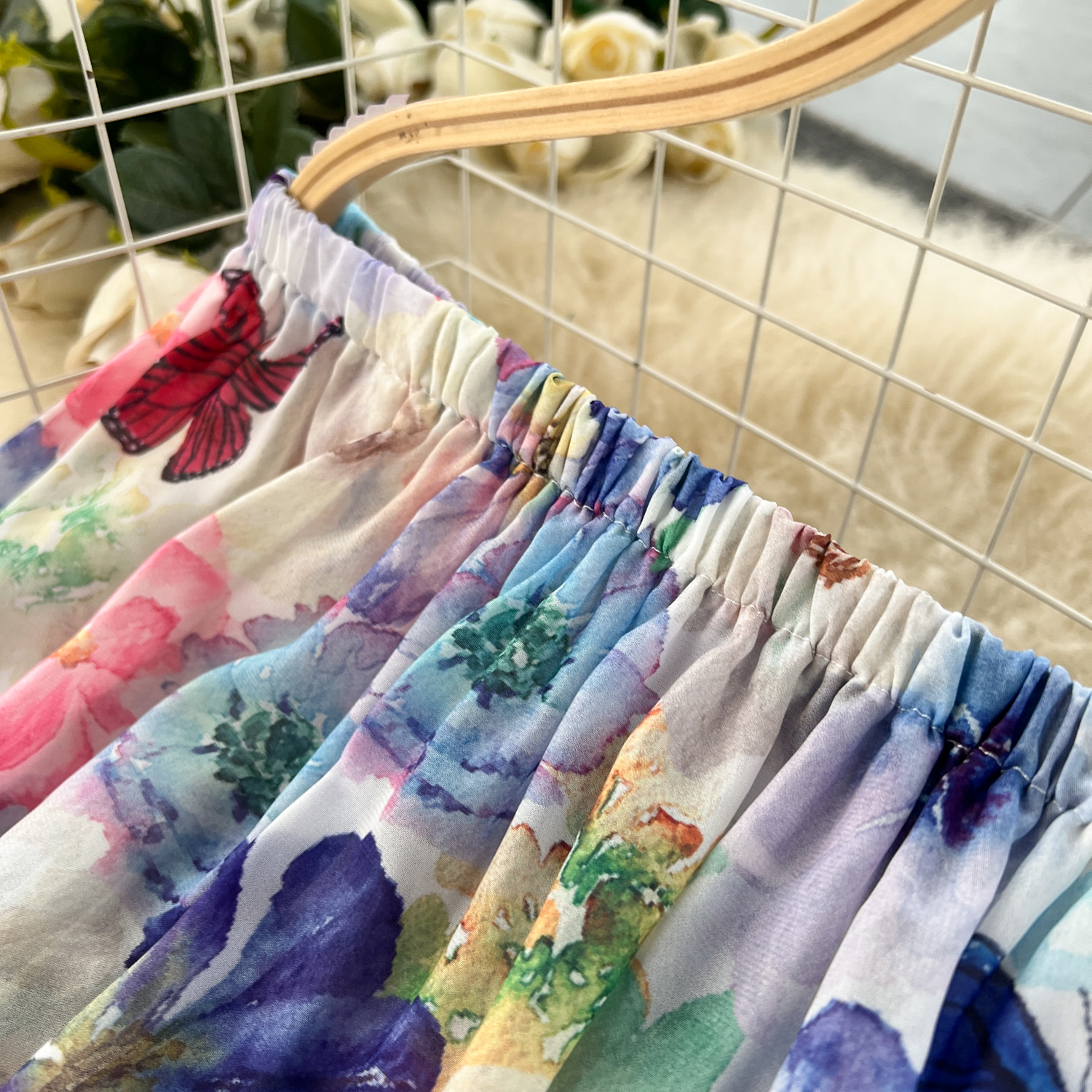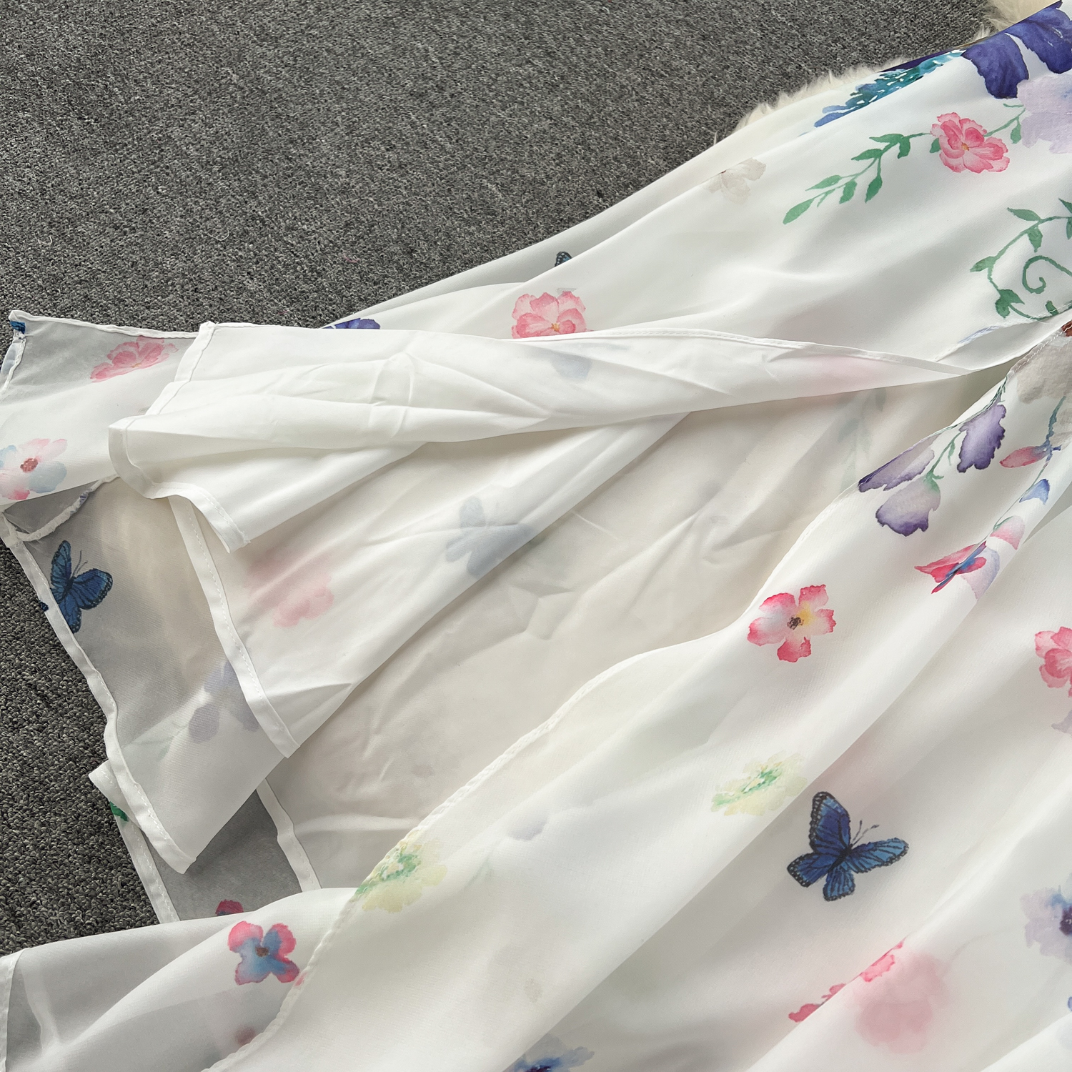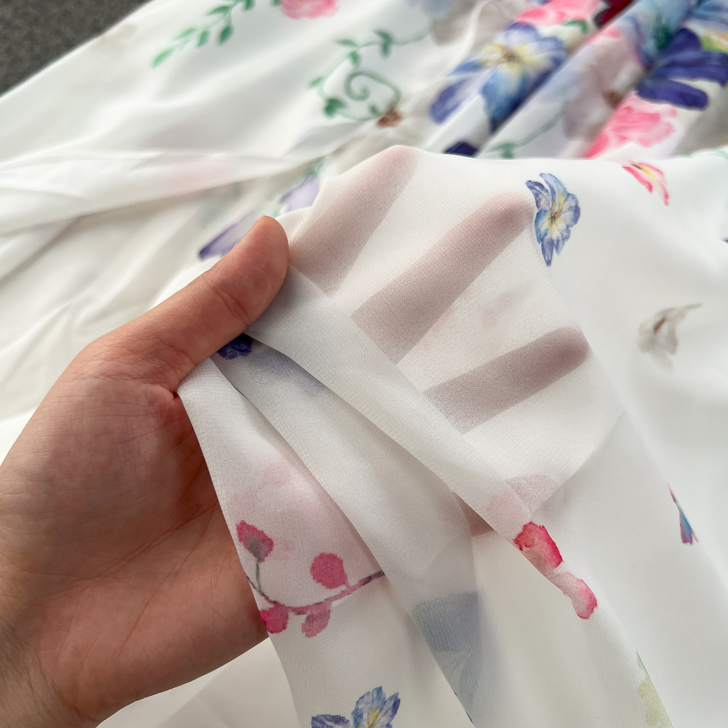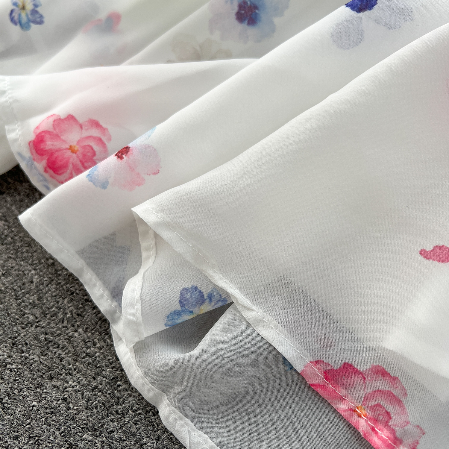 Sophisticated One Shoulder Slim Long Chiffon Fairy Dress with Beautiful Floral Patterns