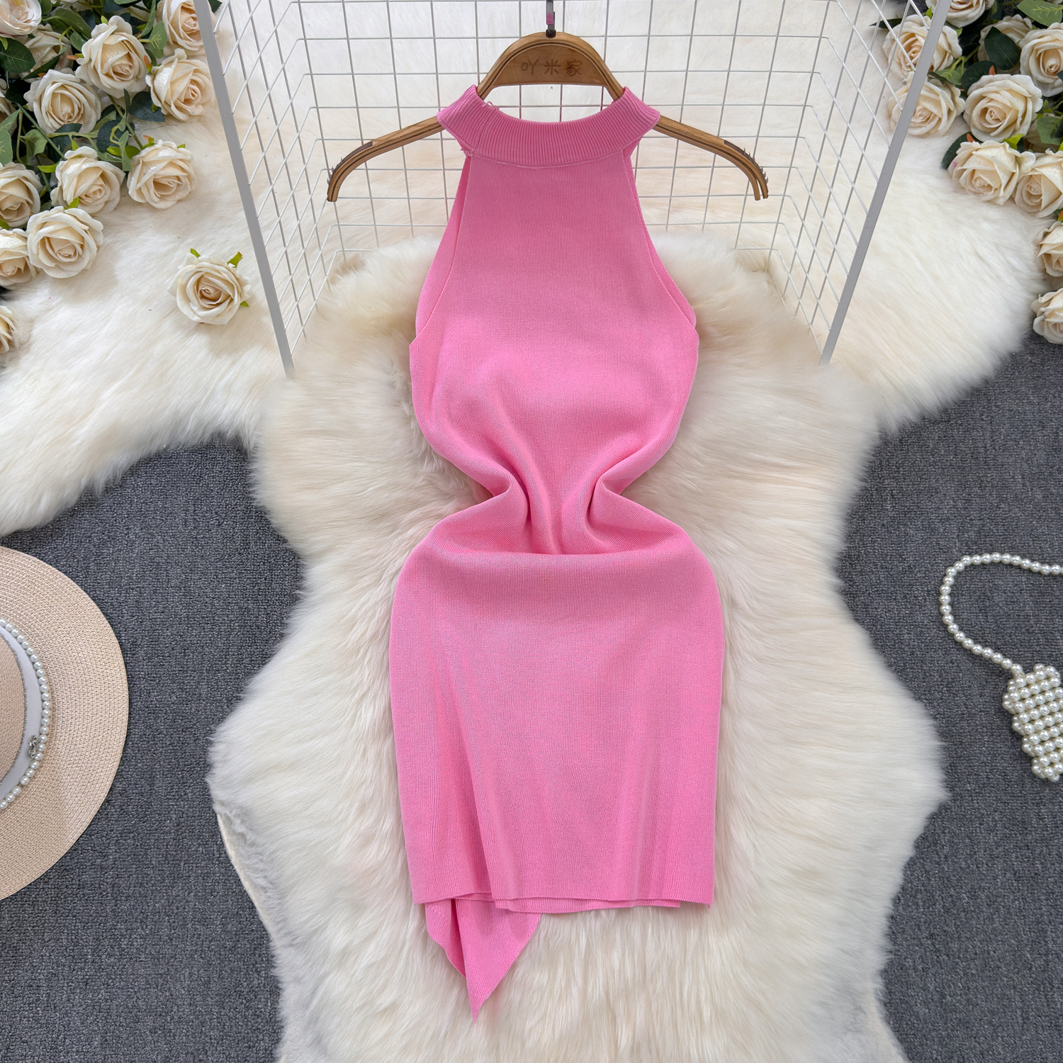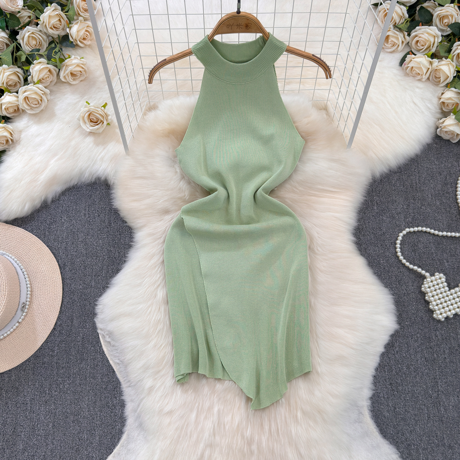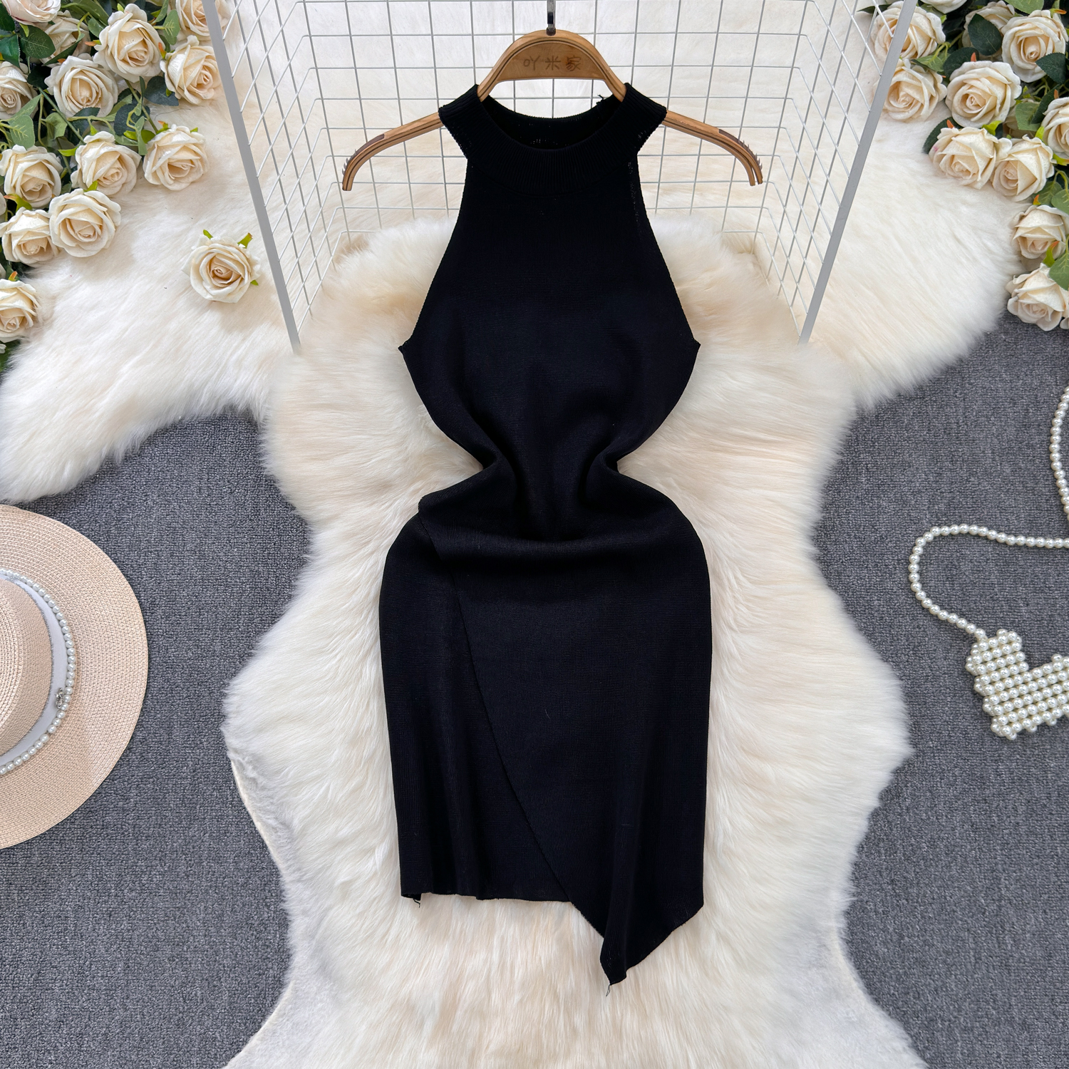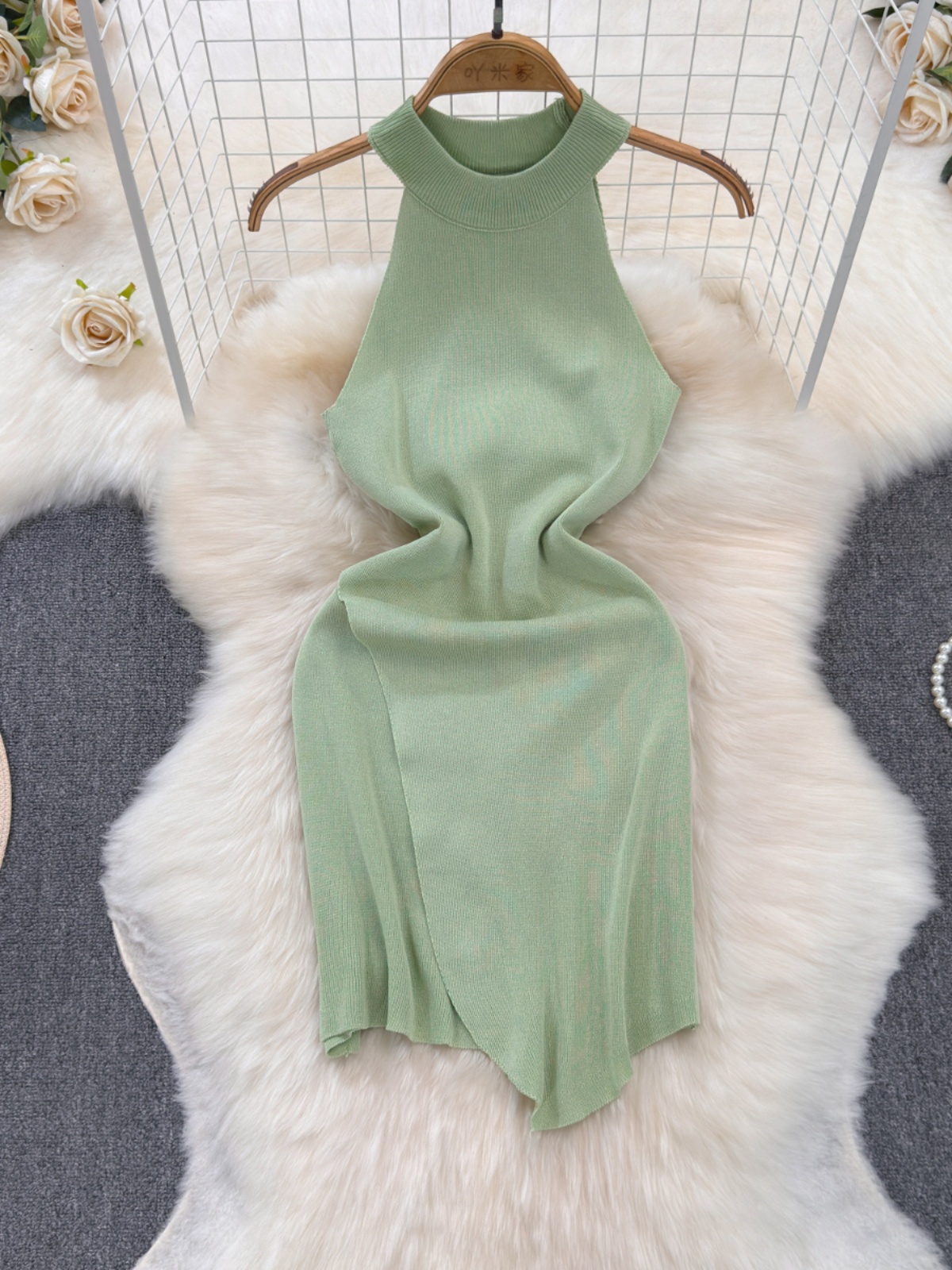 Sophisticated Summer Round Neck Off-Shoulder Sleeveless Midi Split Knitted Dress