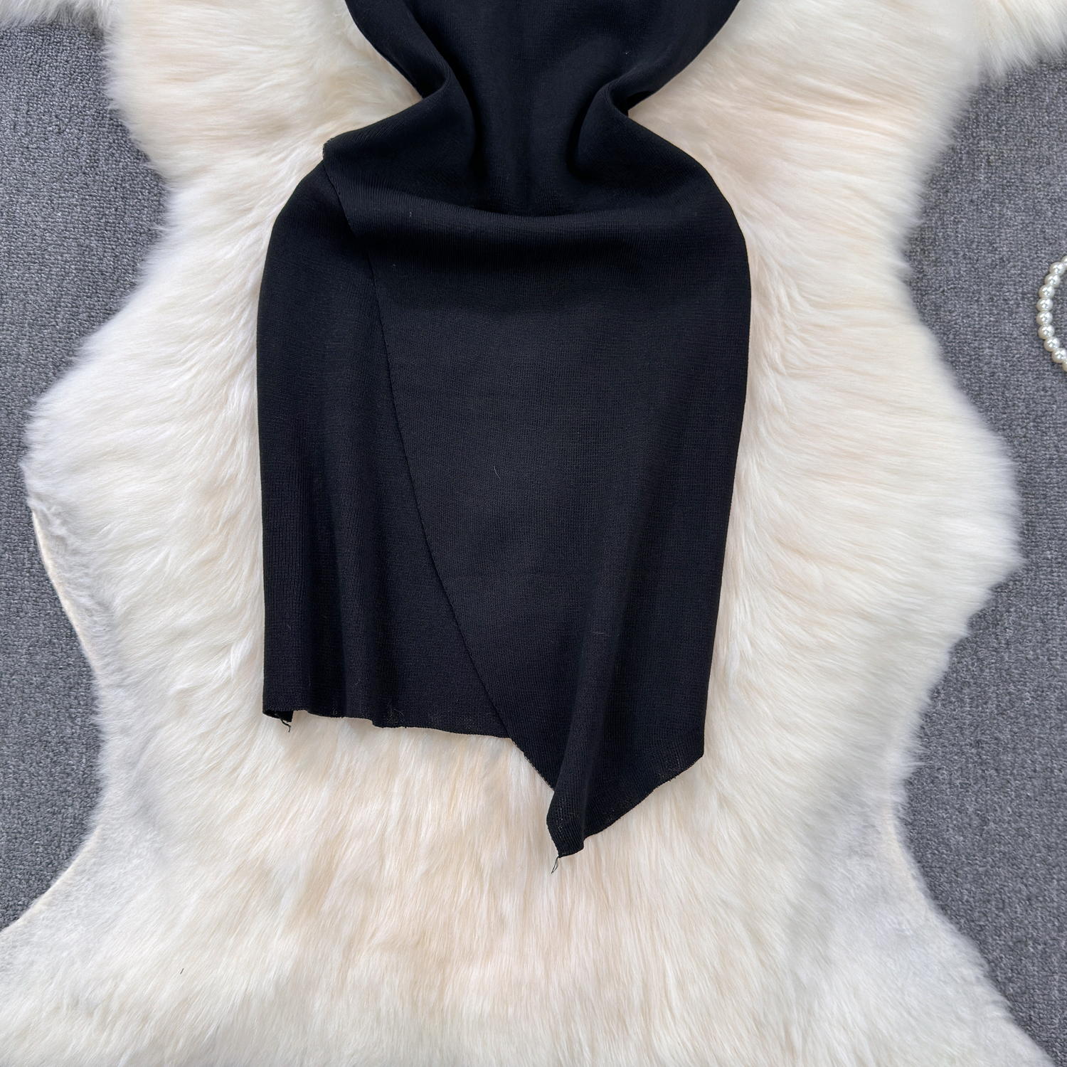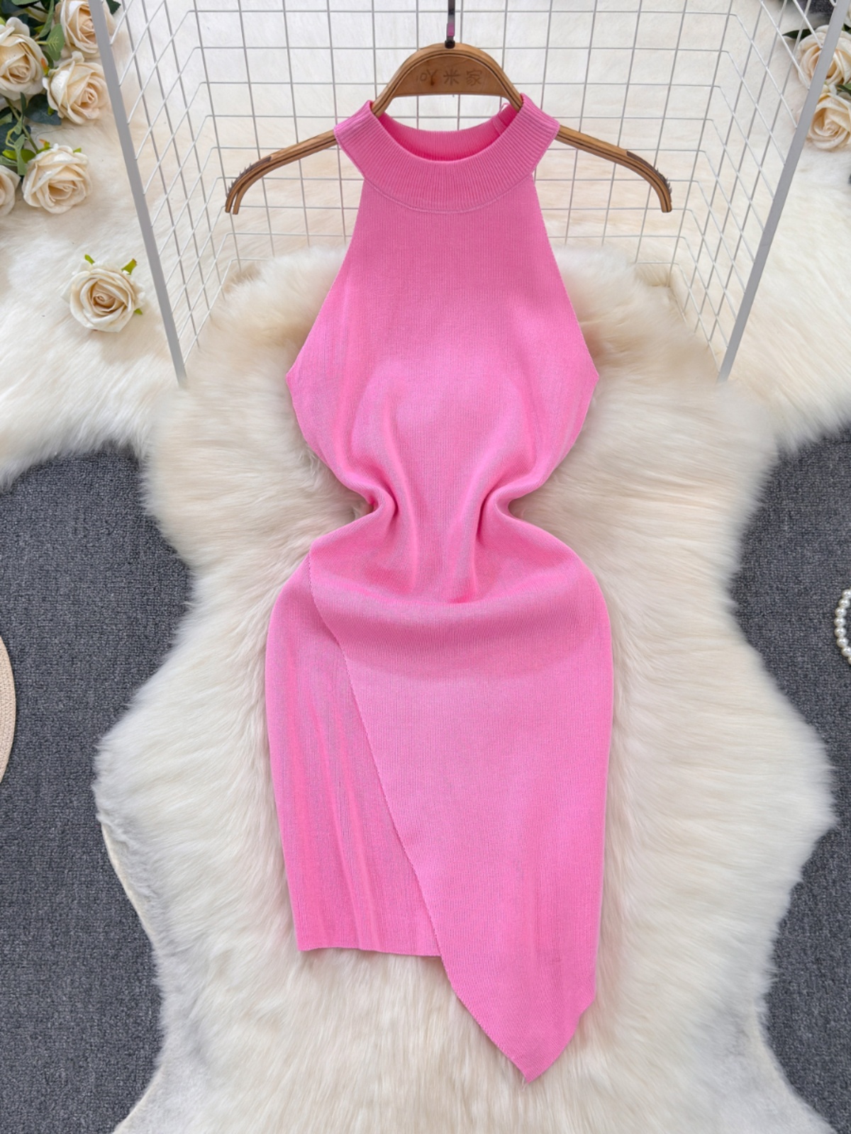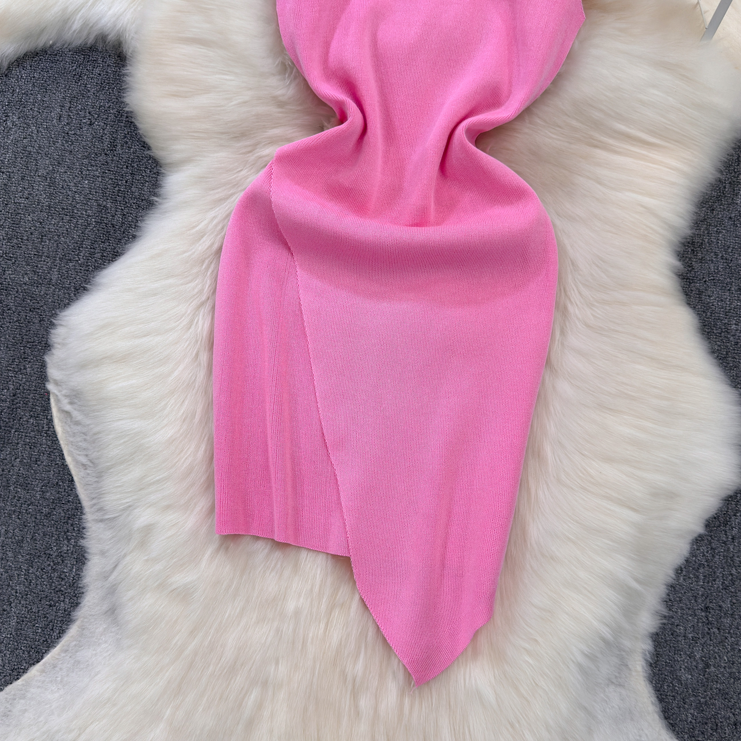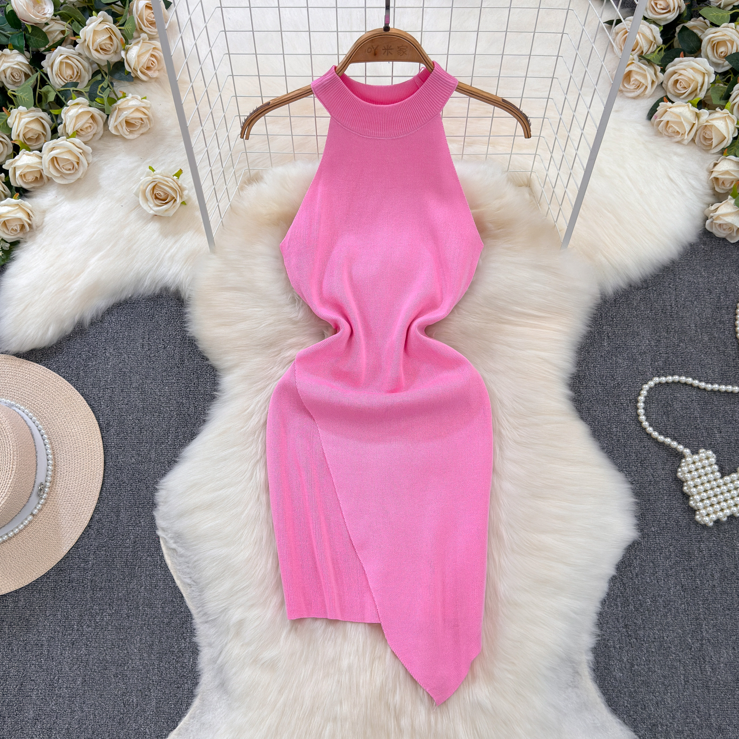 Sophisticated Summer Round Neck Off-Shoulder Sleeveless Midi Split Knitted Dress