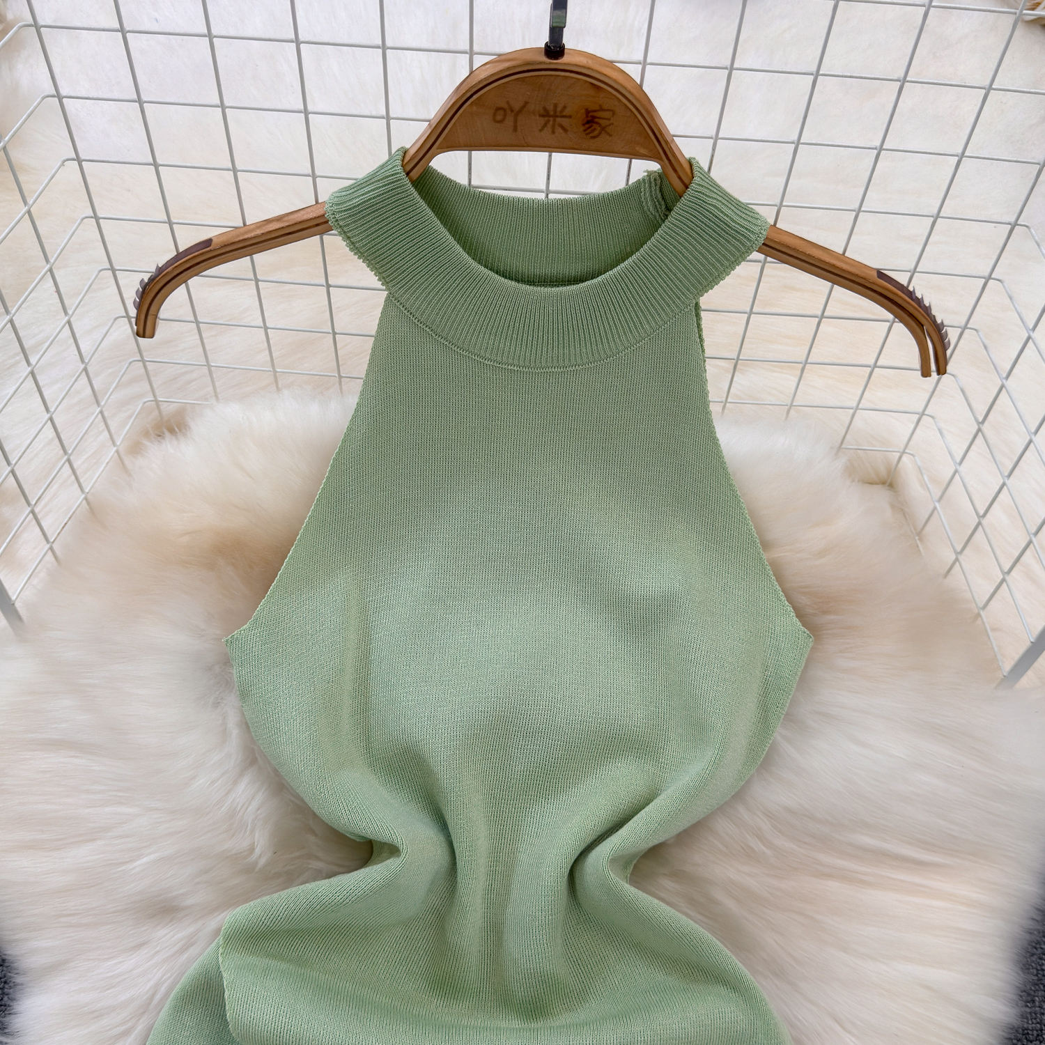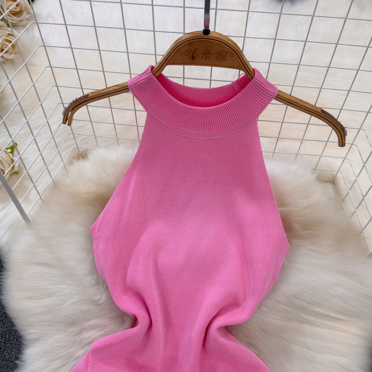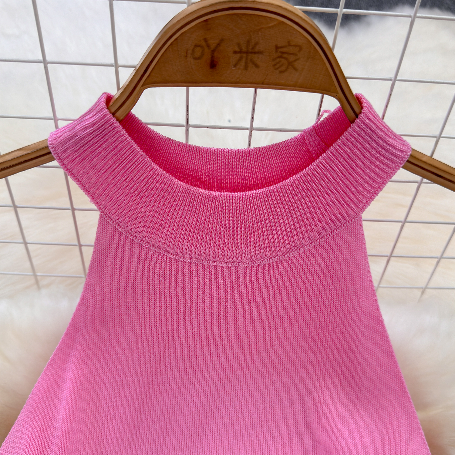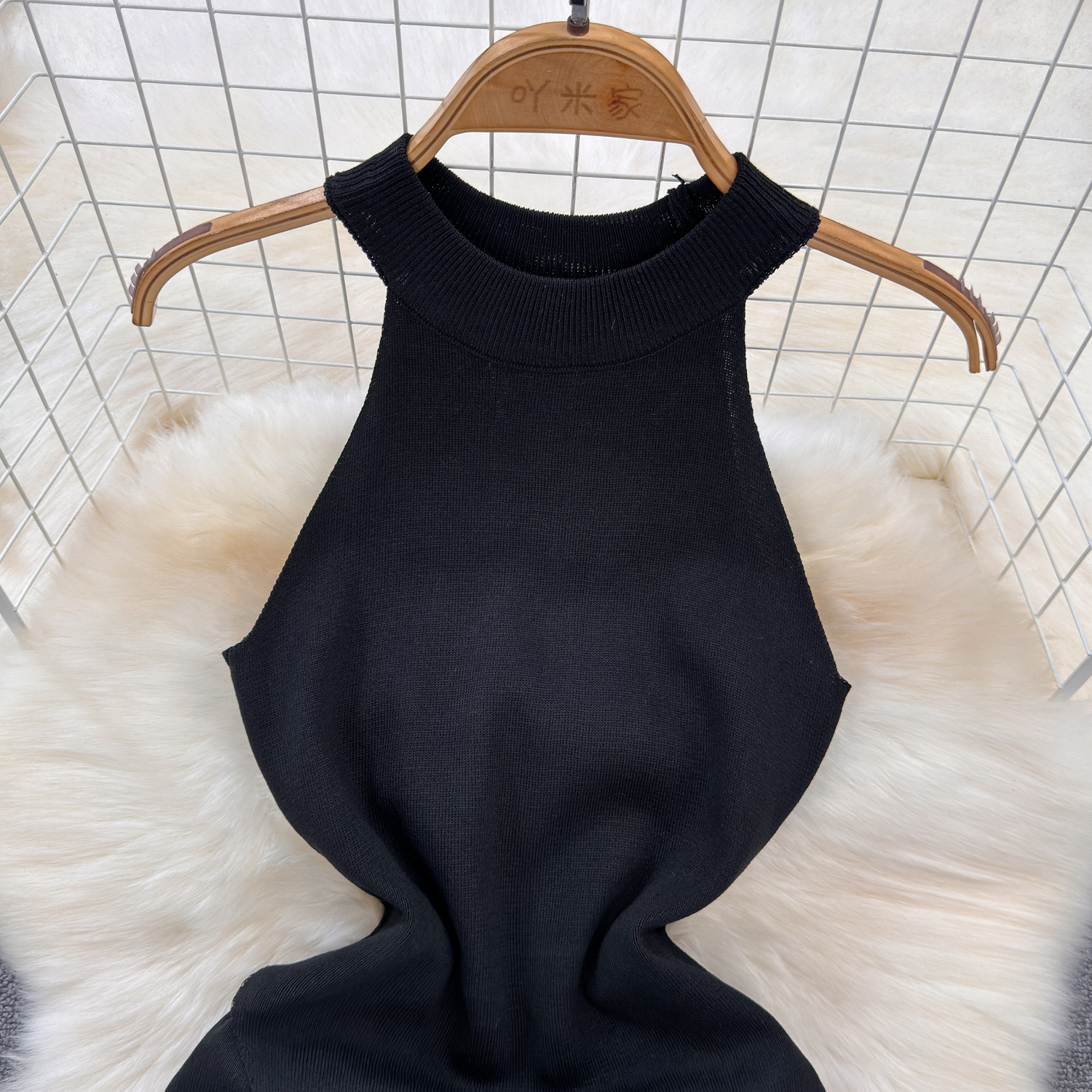 Sophisticated Summer Round Neck Off-Shoulder Sleeveless Midi Split Knitted Dress