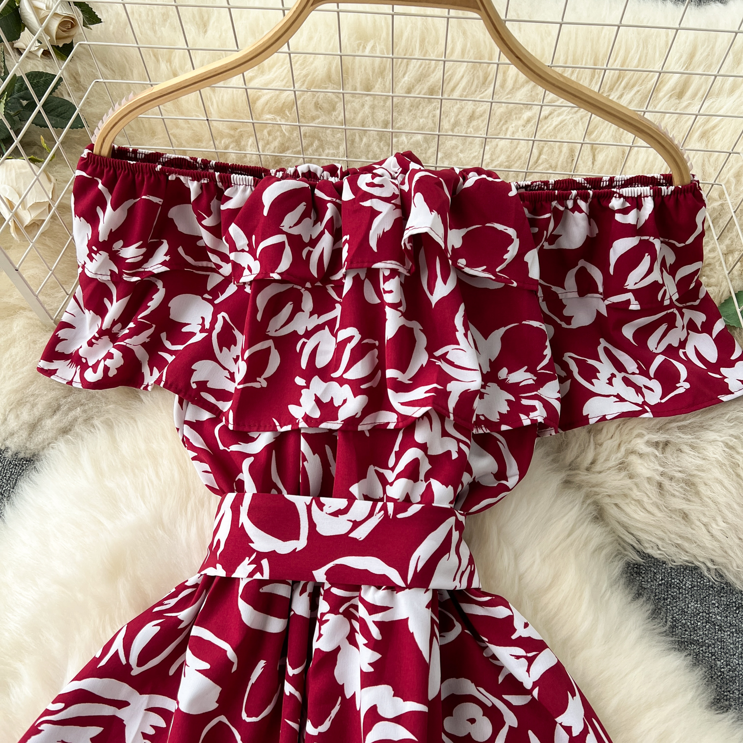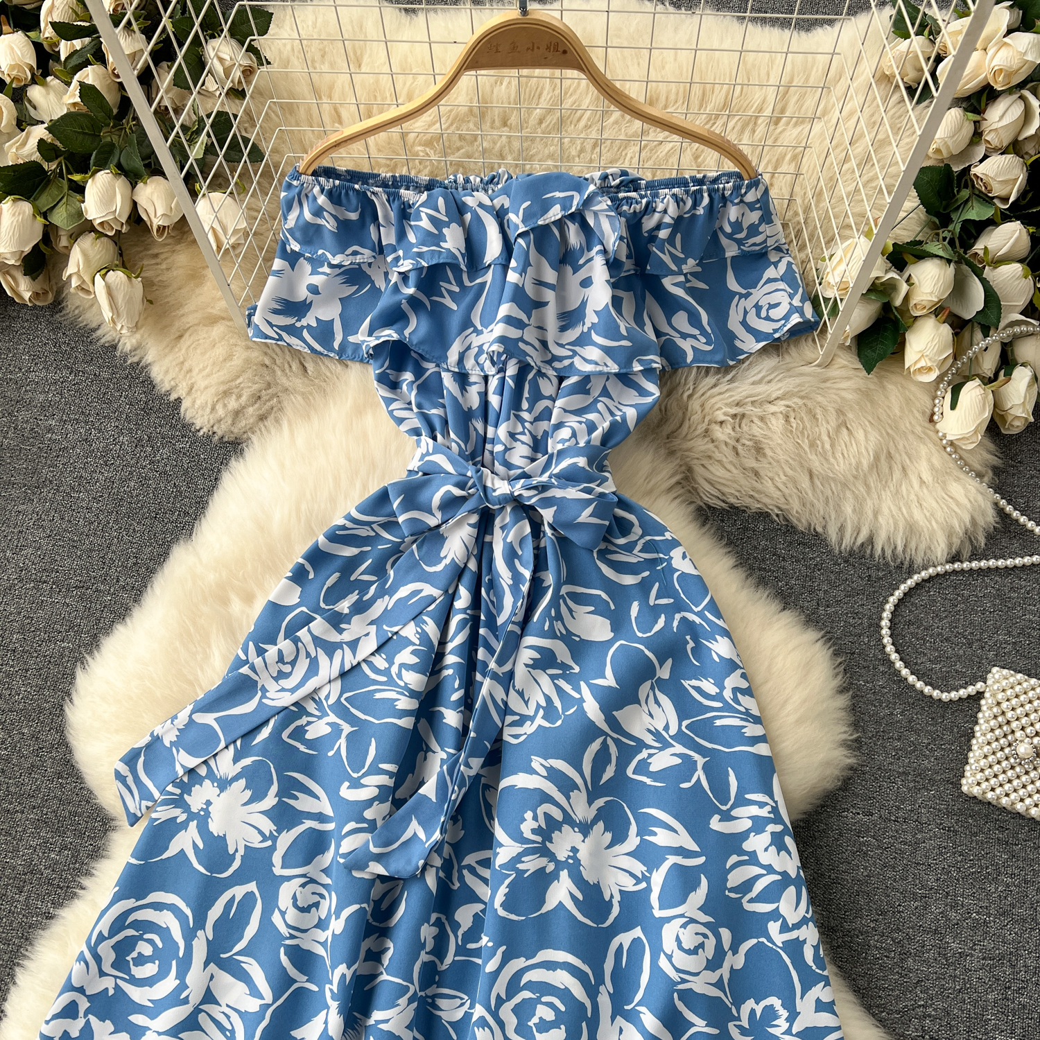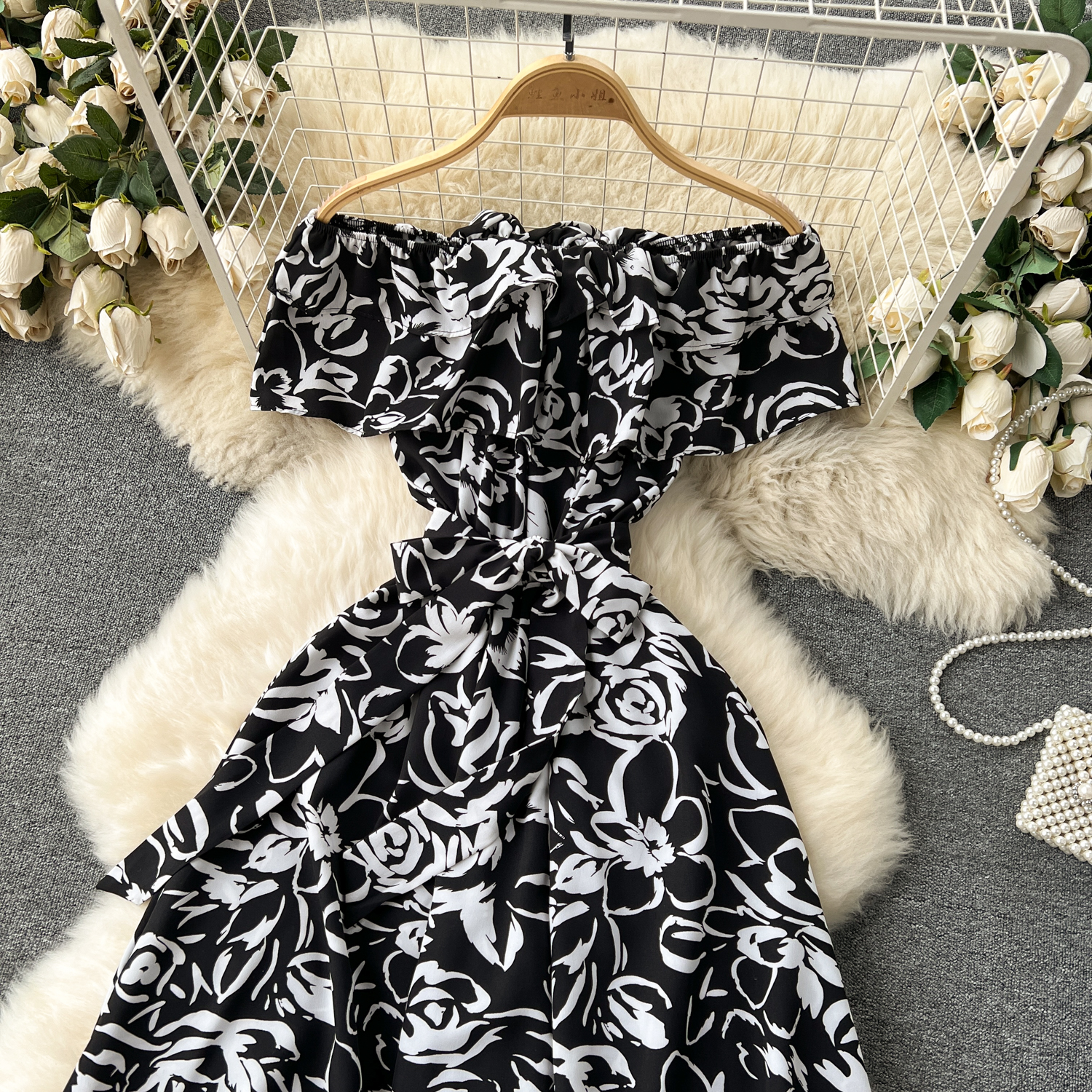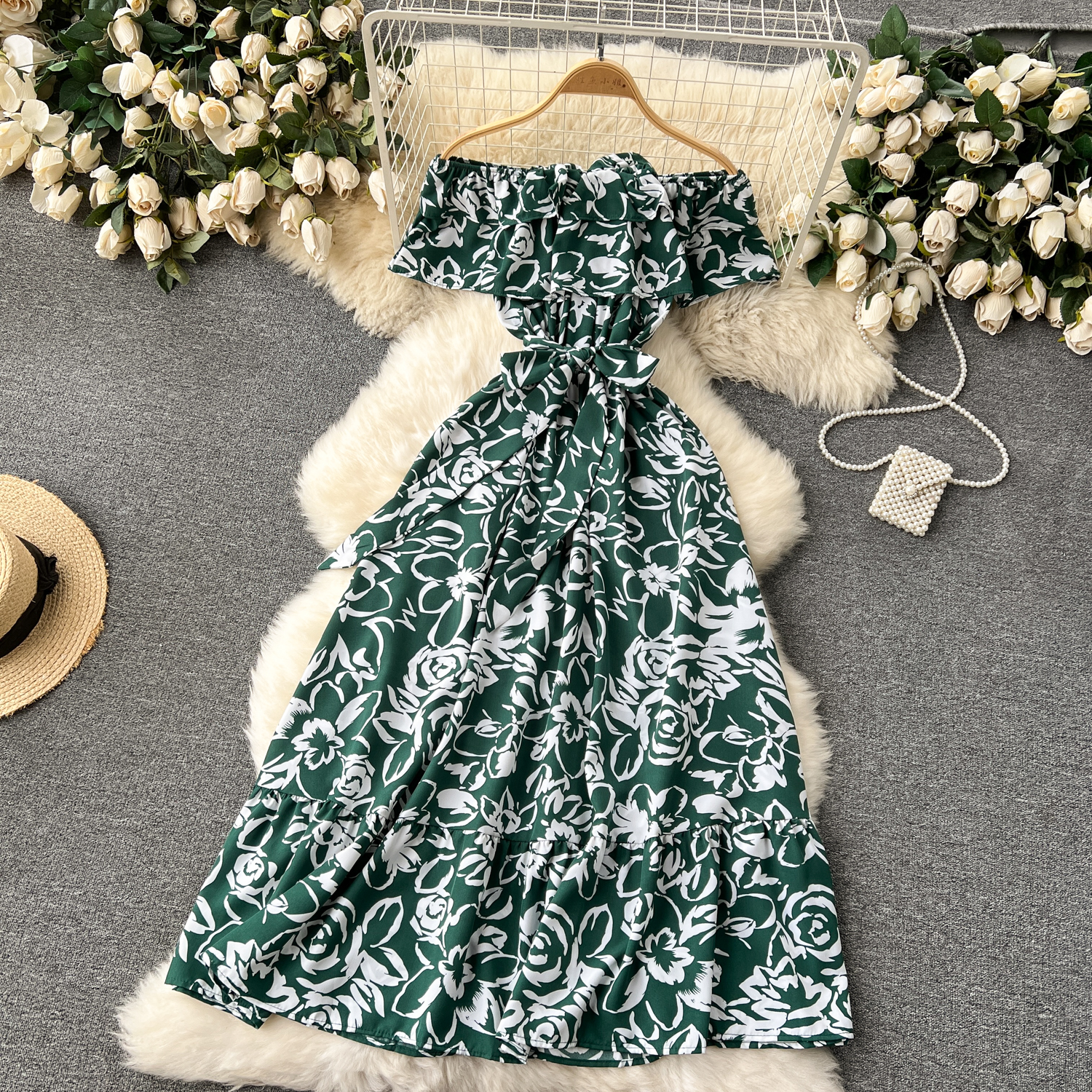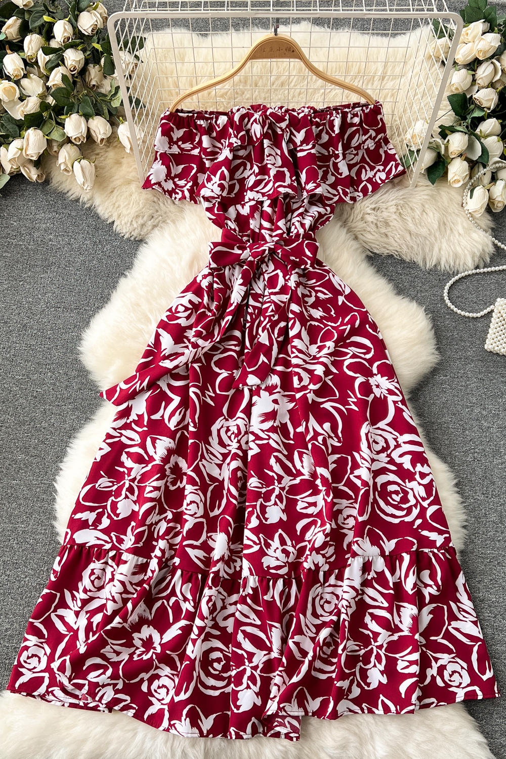 Springtime Splendor Dress with Sweet Ruffle Neckline and Off-the-Shoulder Design