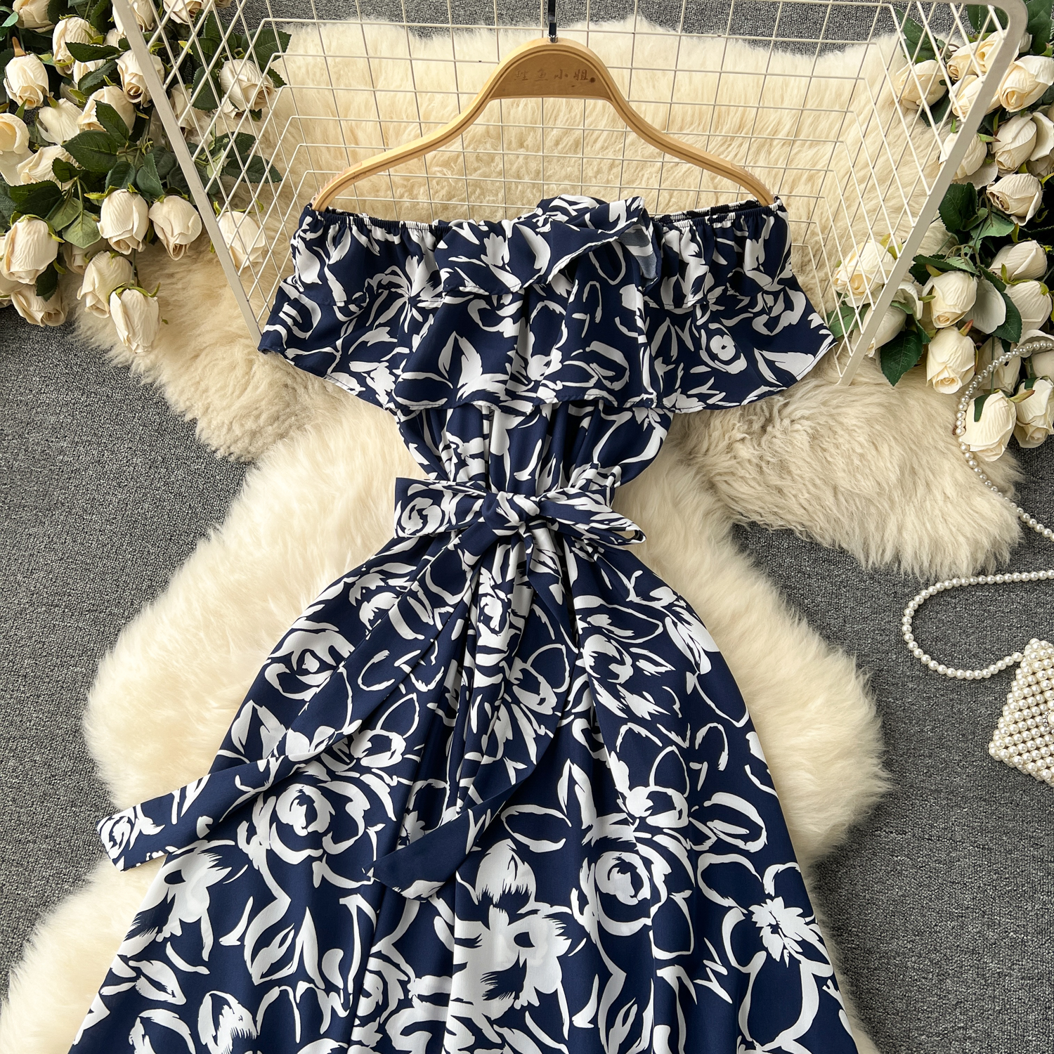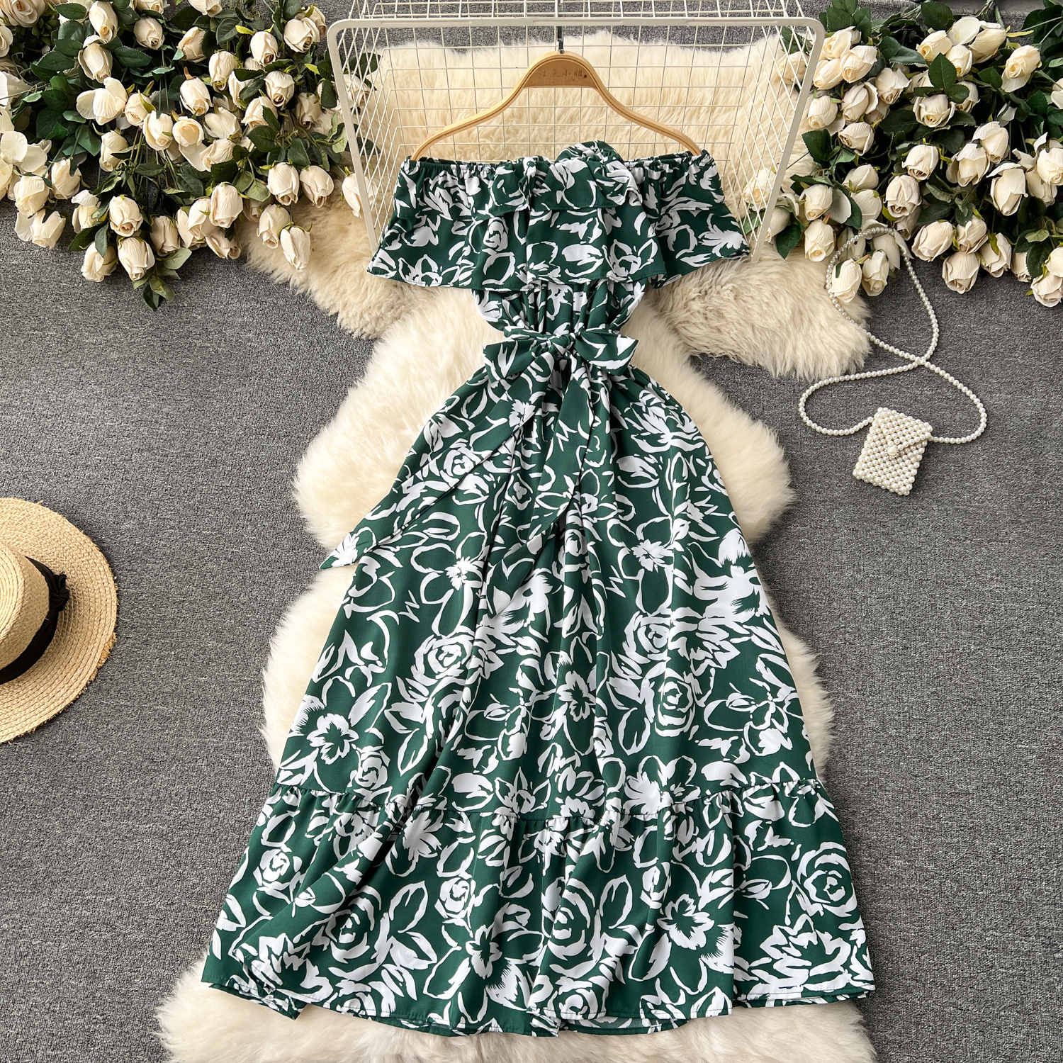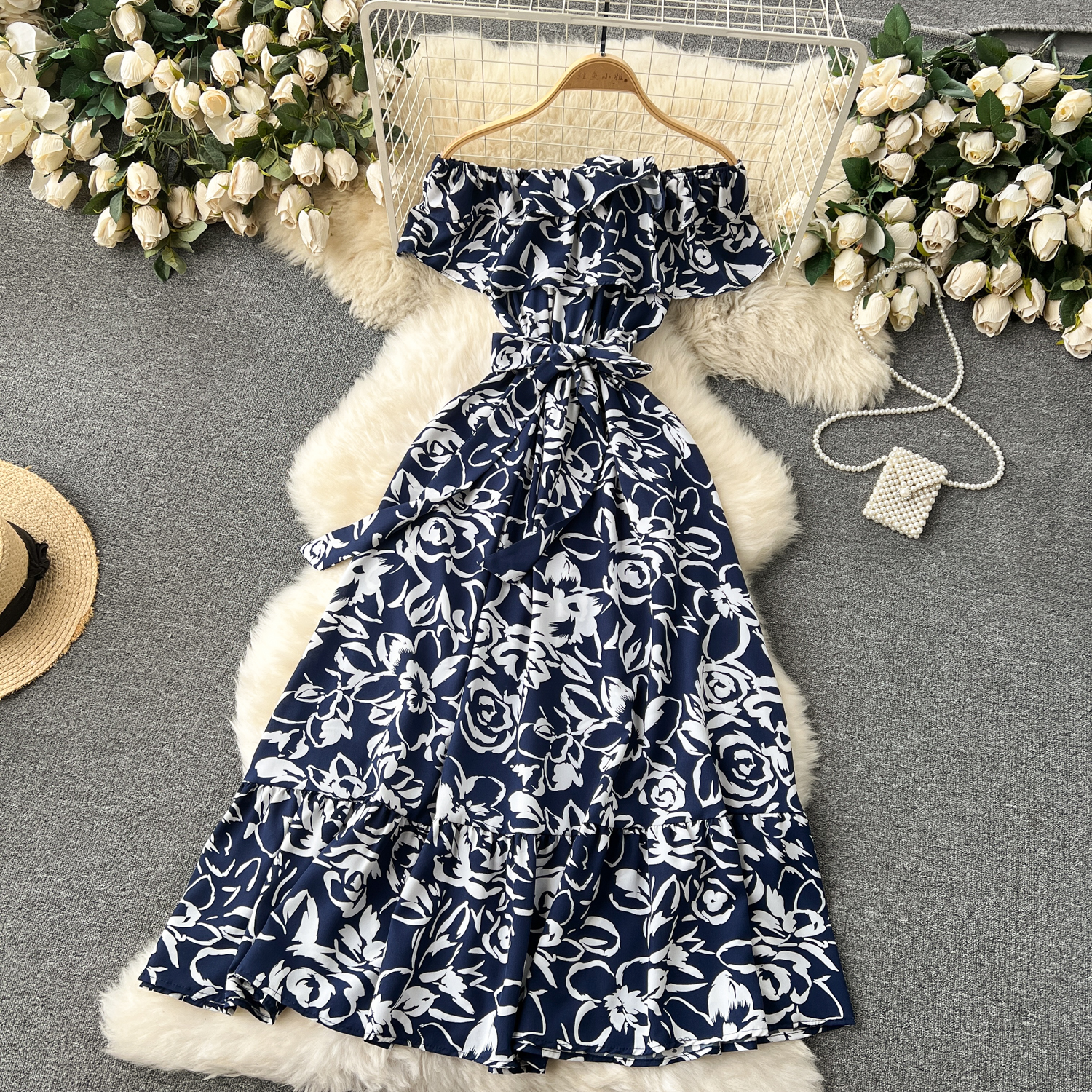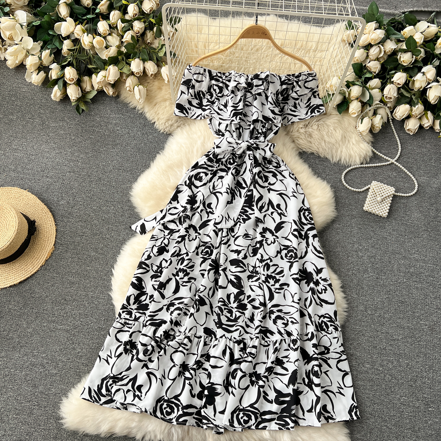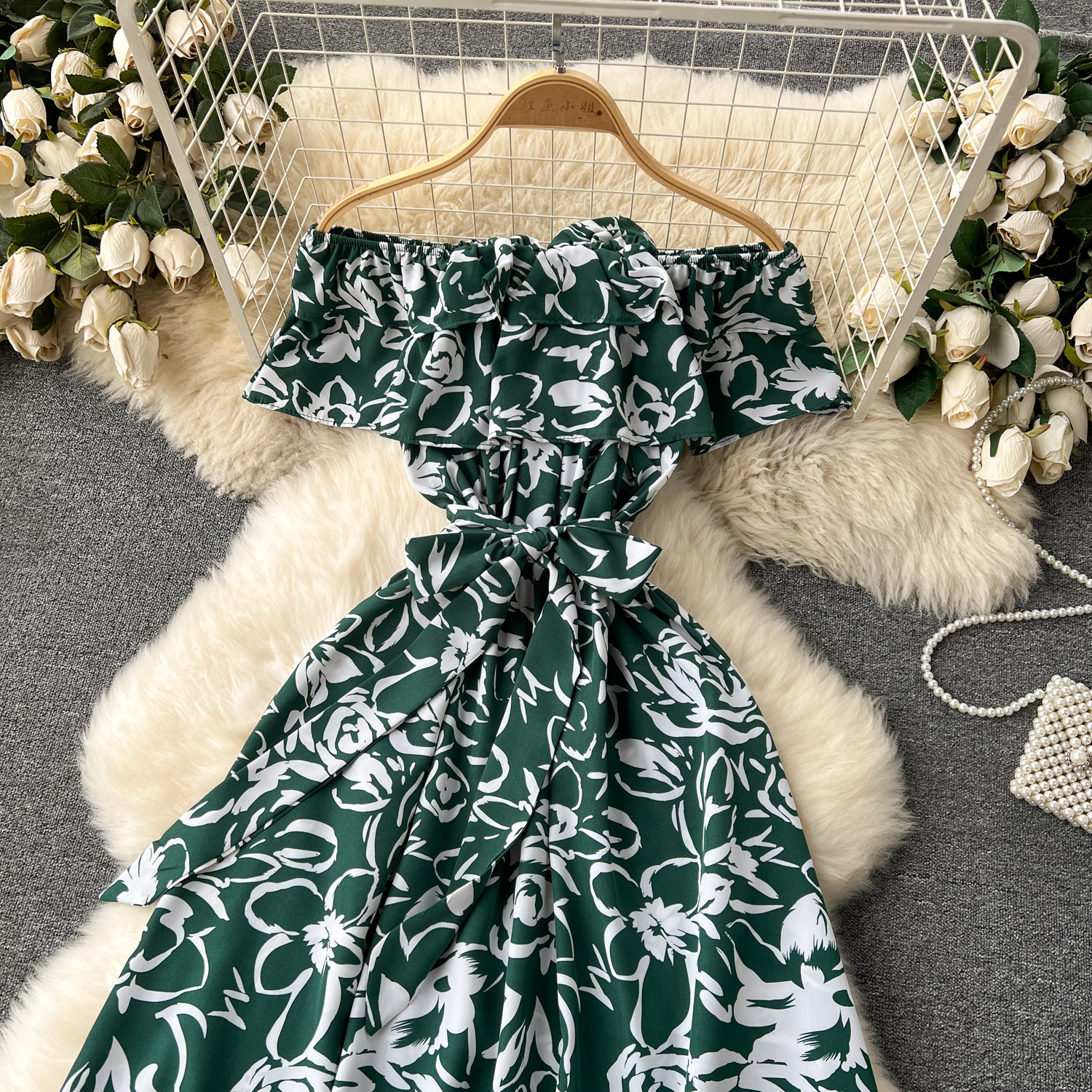 Springtime Splendor Dress with Sweet Ruffle Neckline and Off-the-Shoulder Design