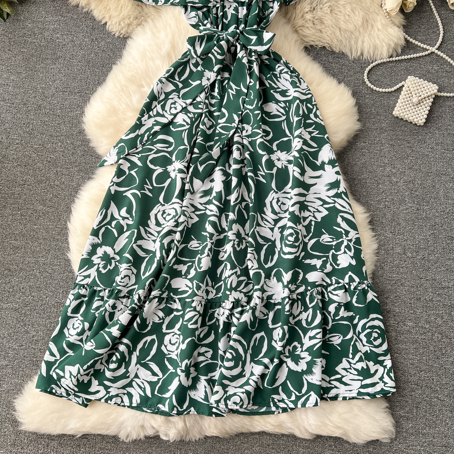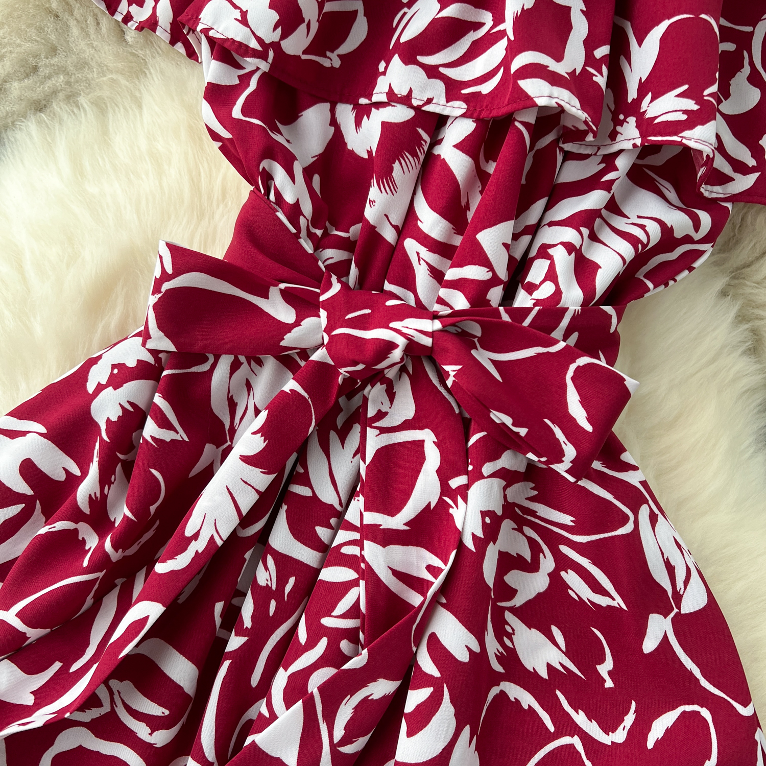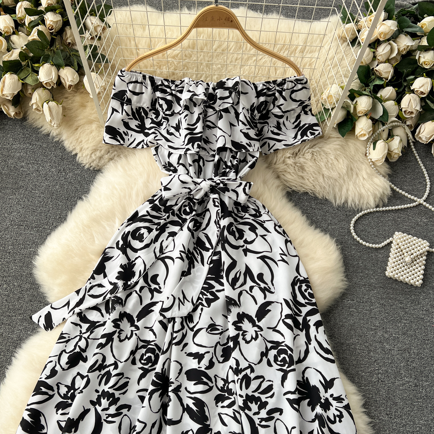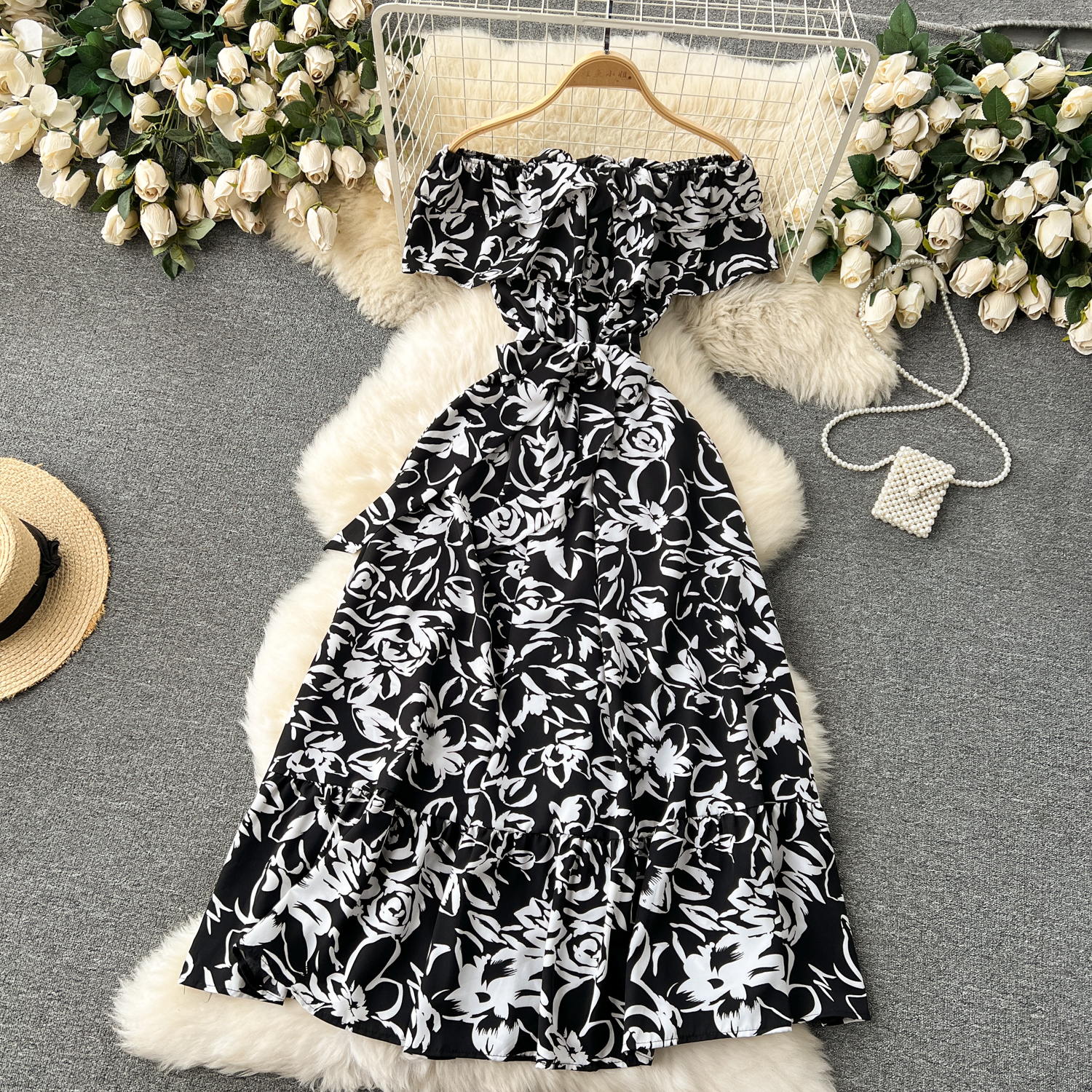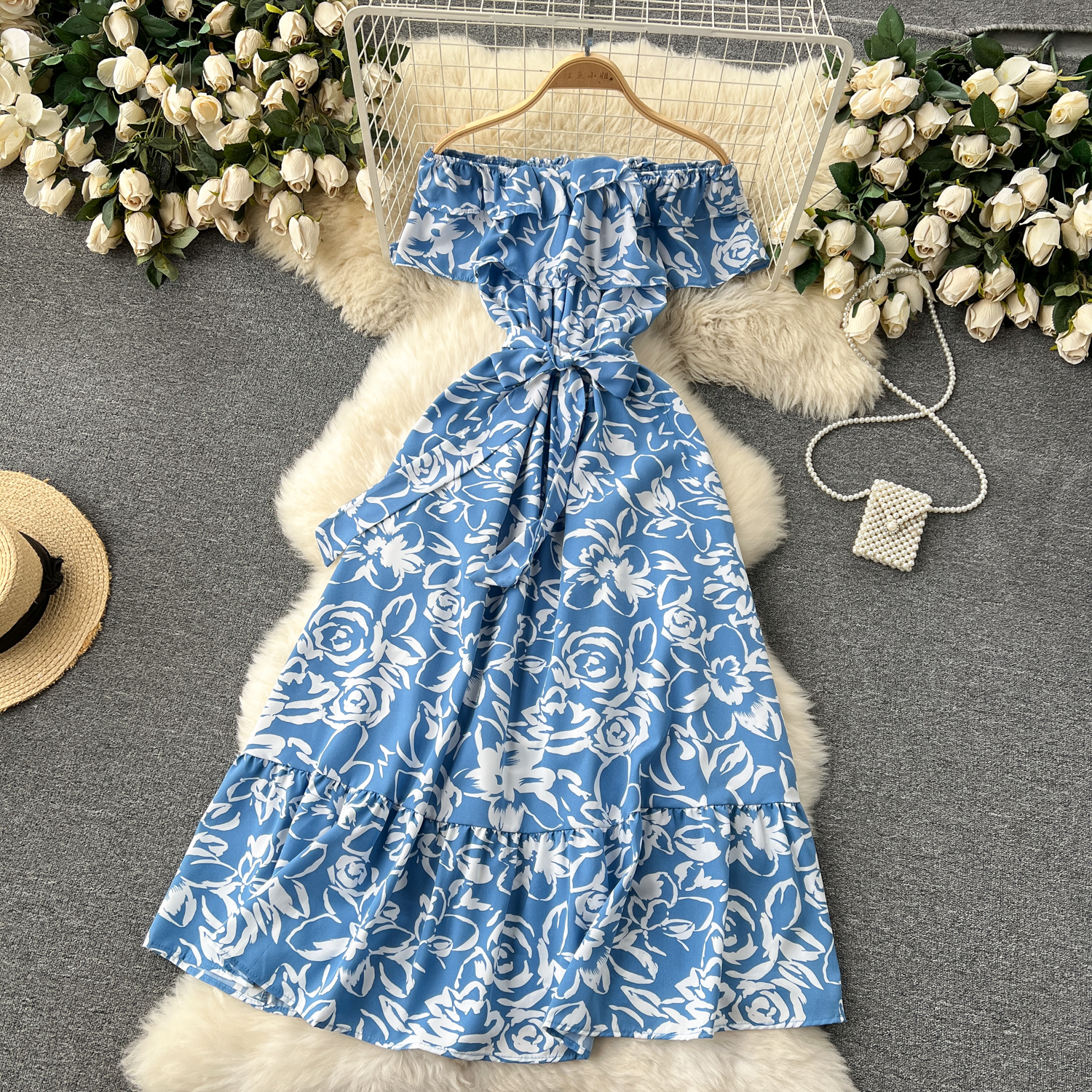 Springtime Splendor Dress with Sweet Ruffle Neckline and Off-the-Shoulder Design