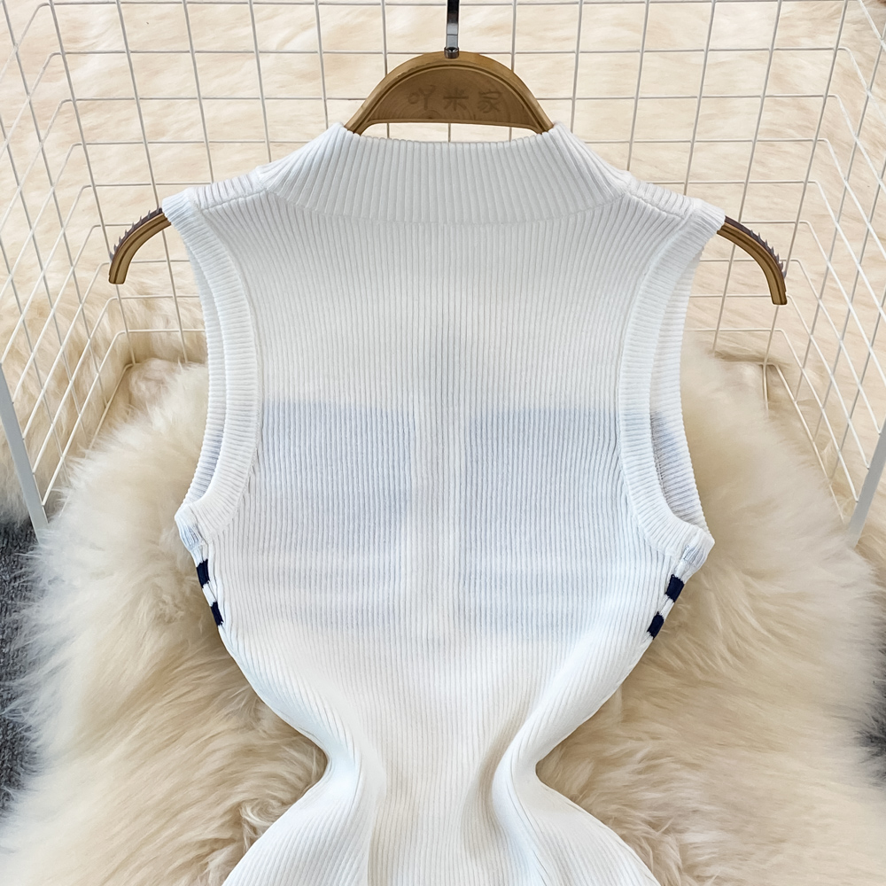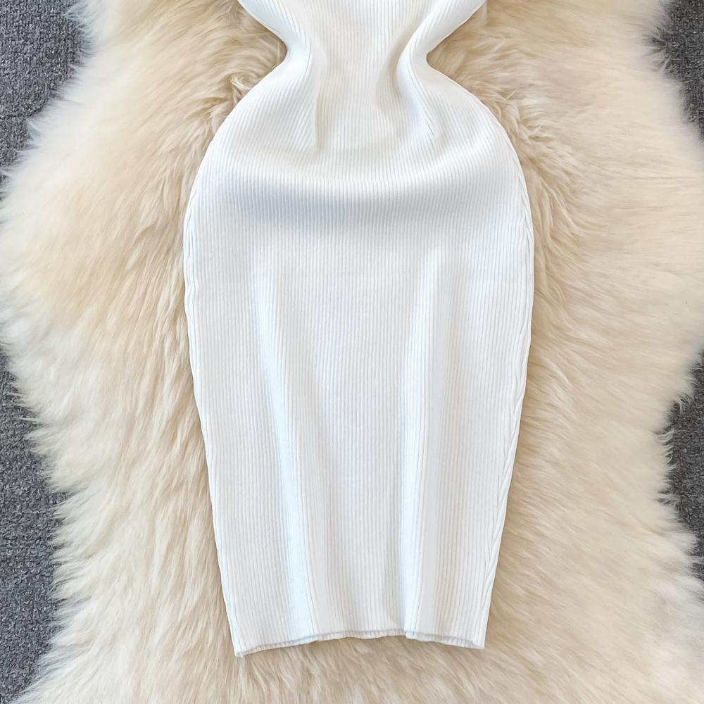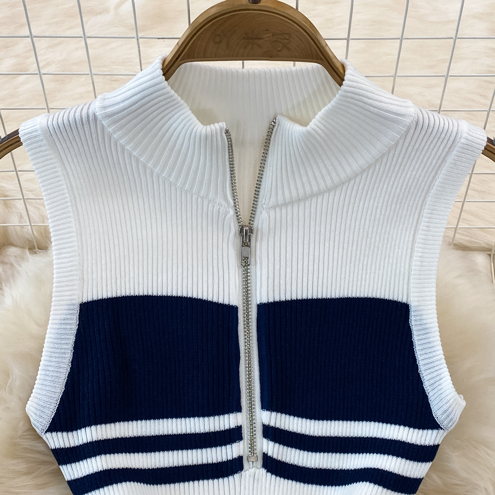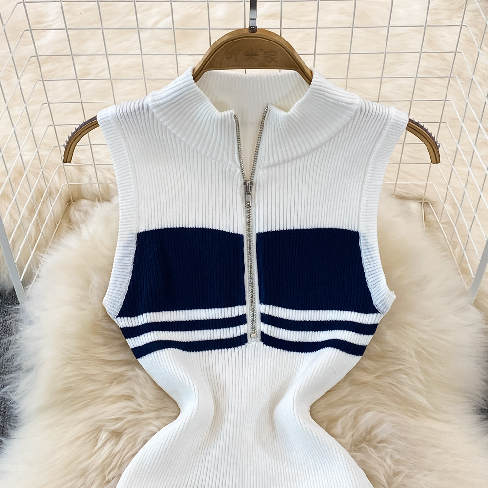 Summer High-End Polo Collar Striped knitted Vest Slim Hip Bodycon Dress