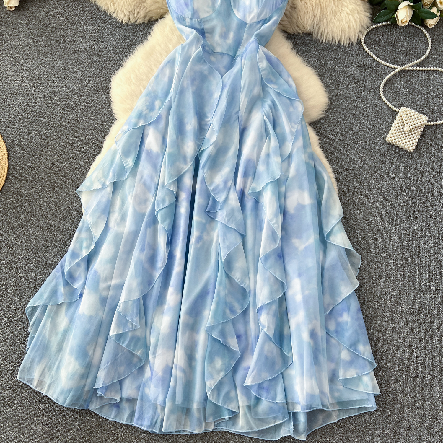 Super Fairy Bandeau Diamond Sleeveless Waist Ruffle Dress