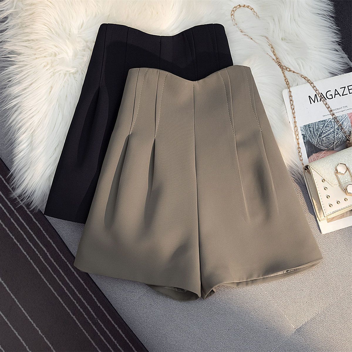Tailored Autumn Elegant A-Line Wide-Leg Shorts For Women