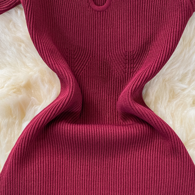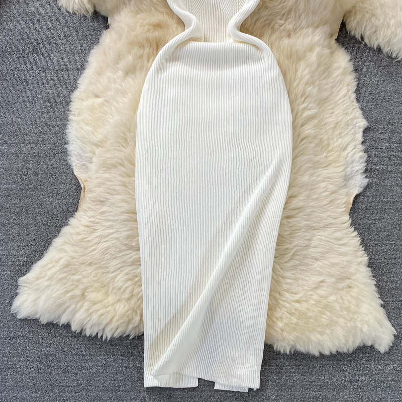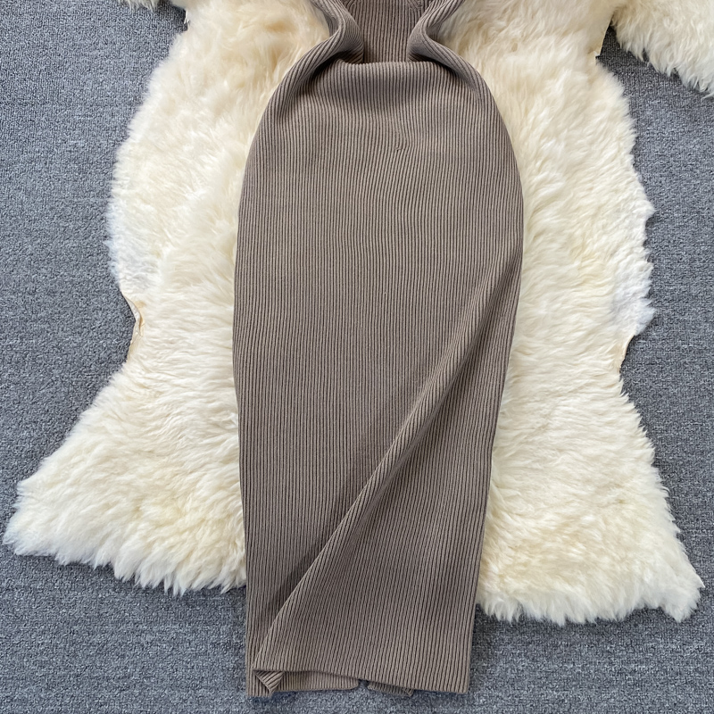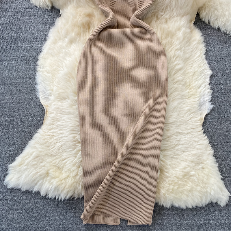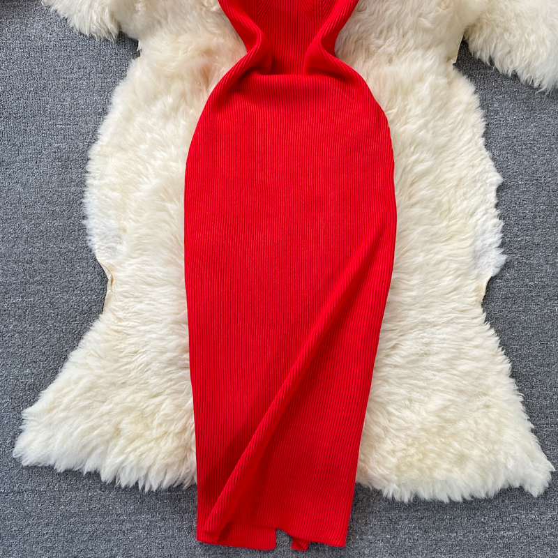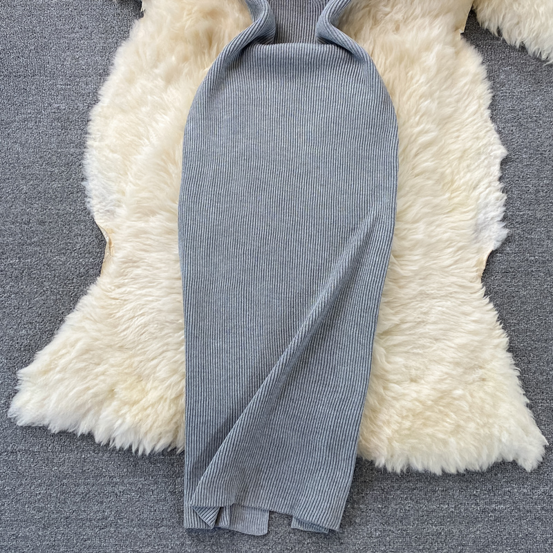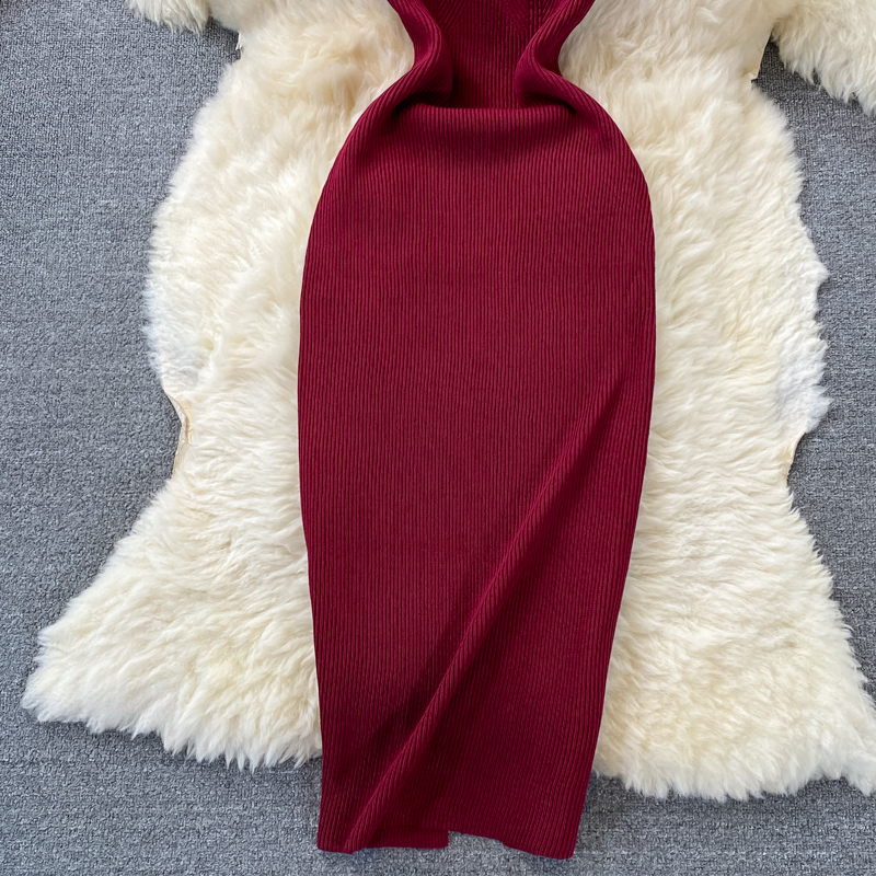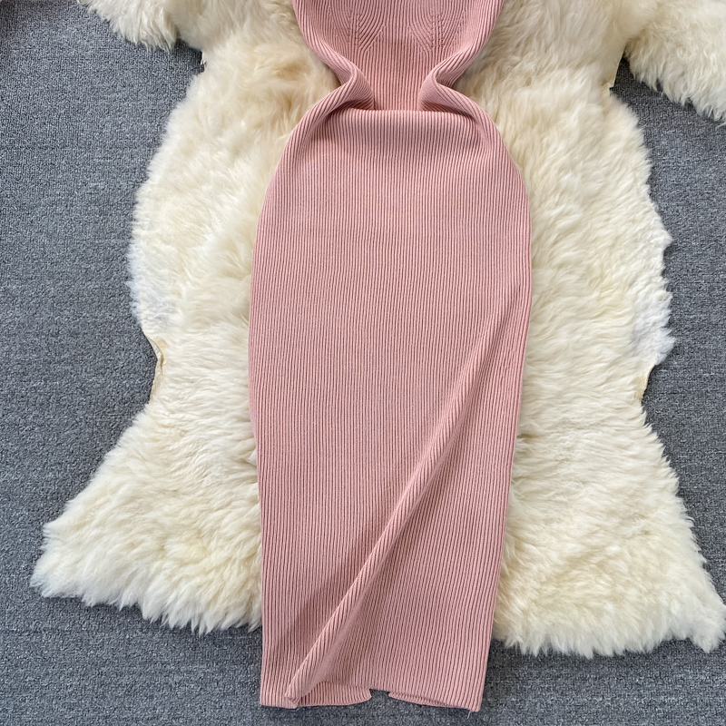 Tight and thin, square neck knit dress, short sleeves, summer 2024, new temperament, sexy hot girl, hip wrap long skirt