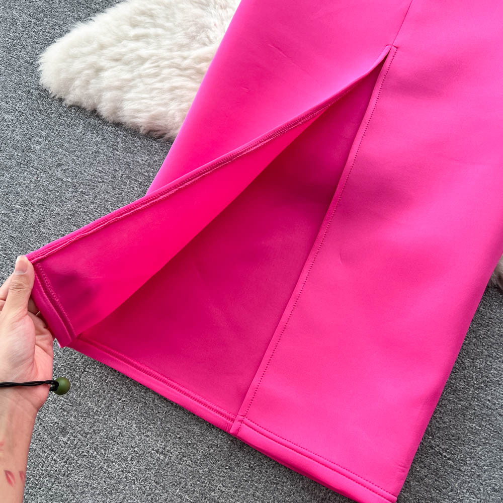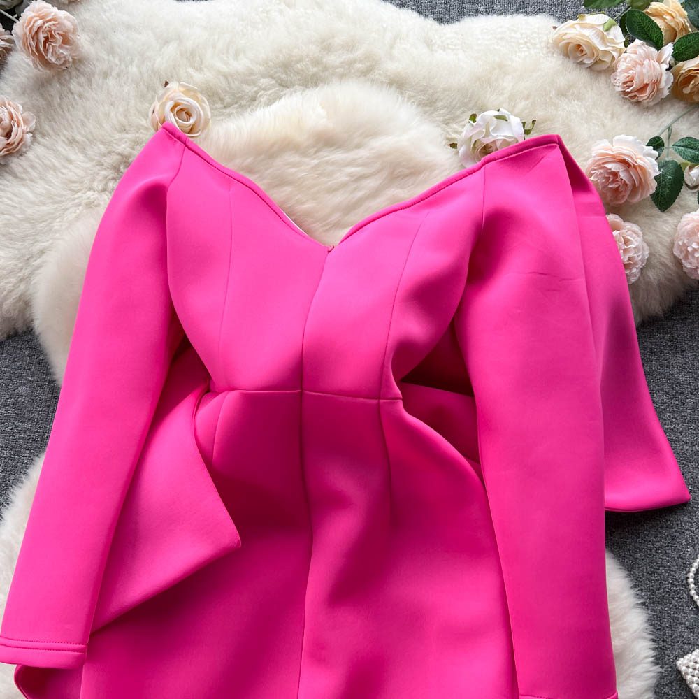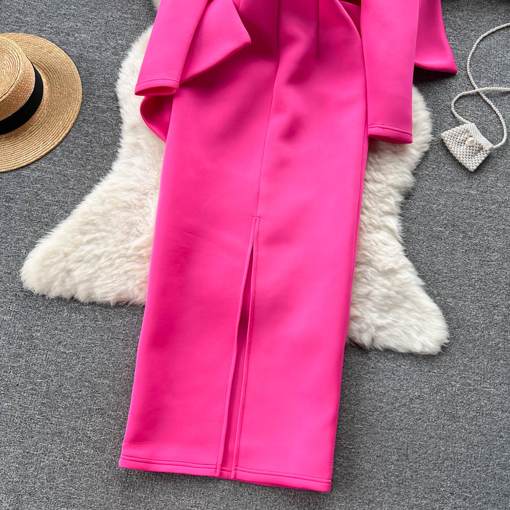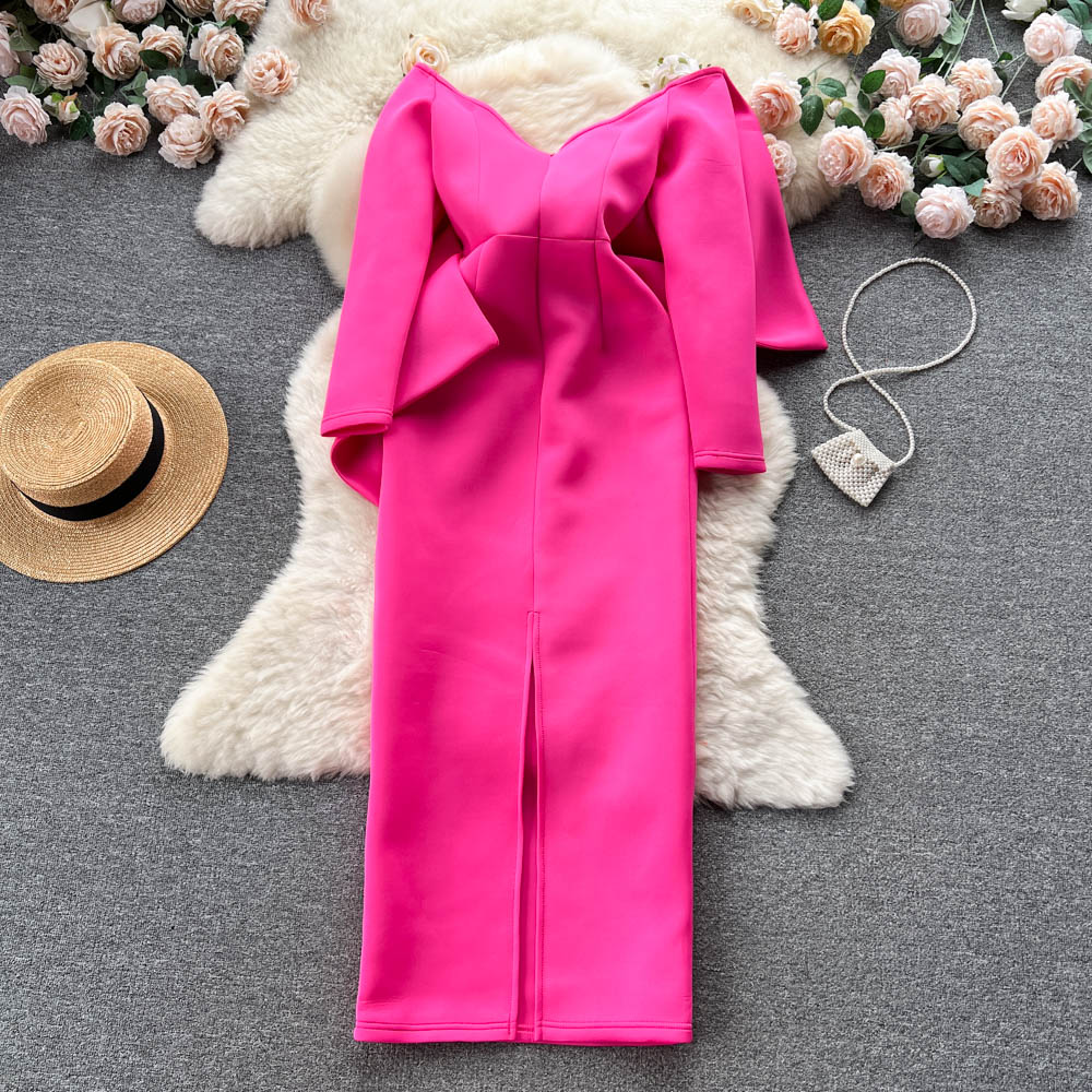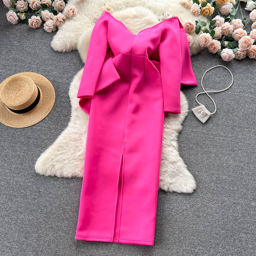 - Pattern: Split neckline dress with a gown-inspired silhouette
