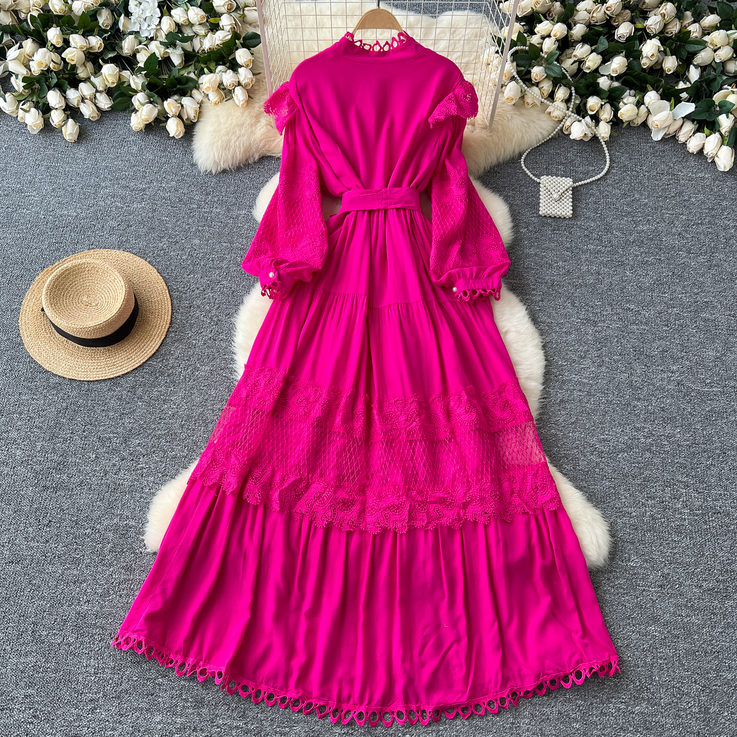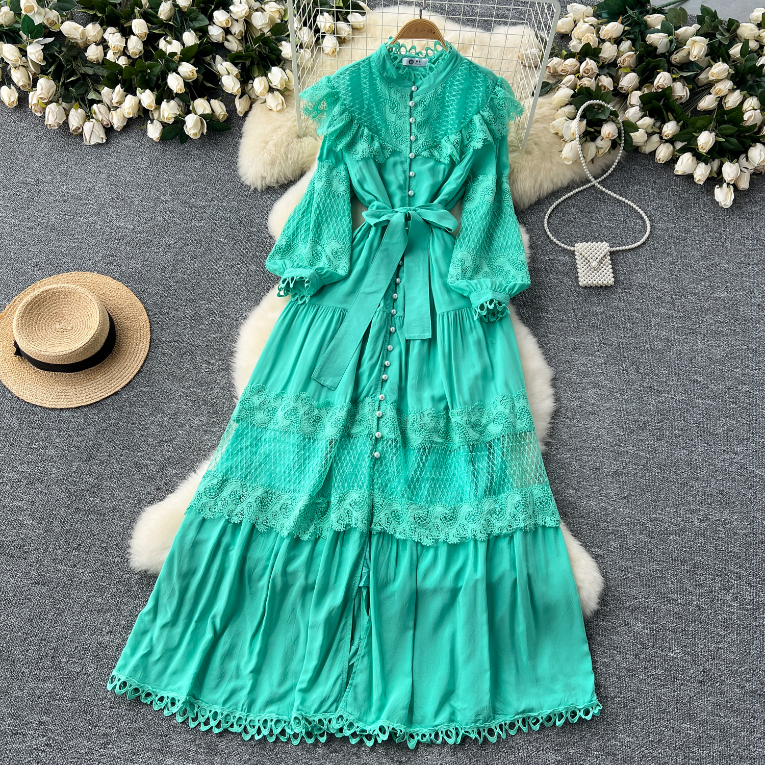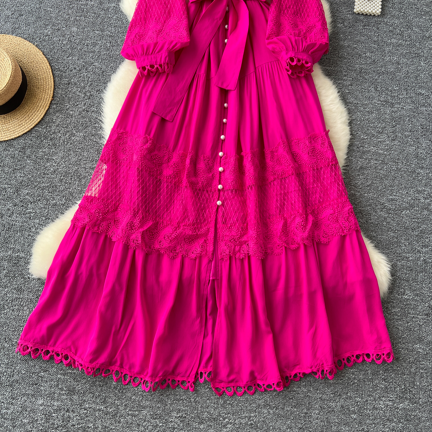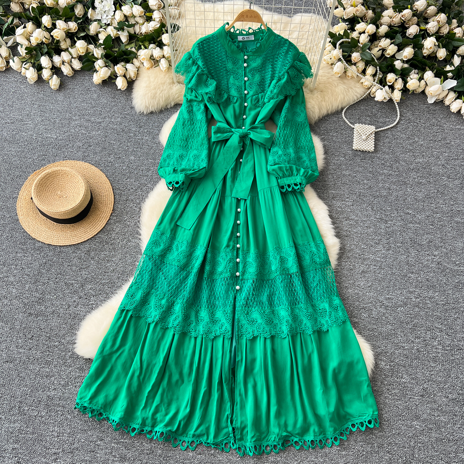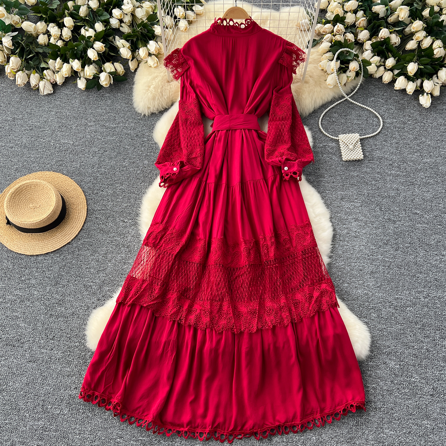Vintage Vogue French Court Maxi Dress with Lace Panels and Ruffles