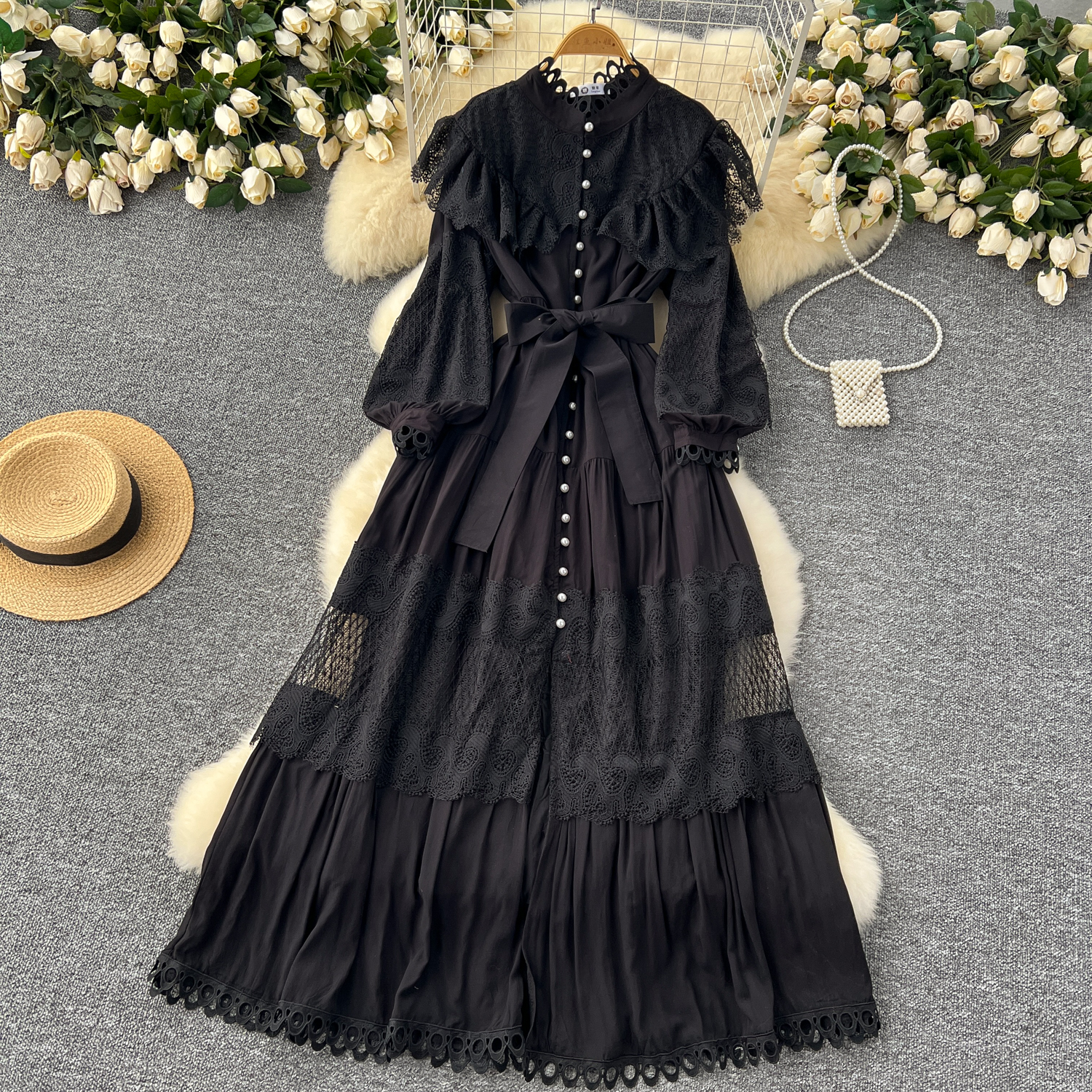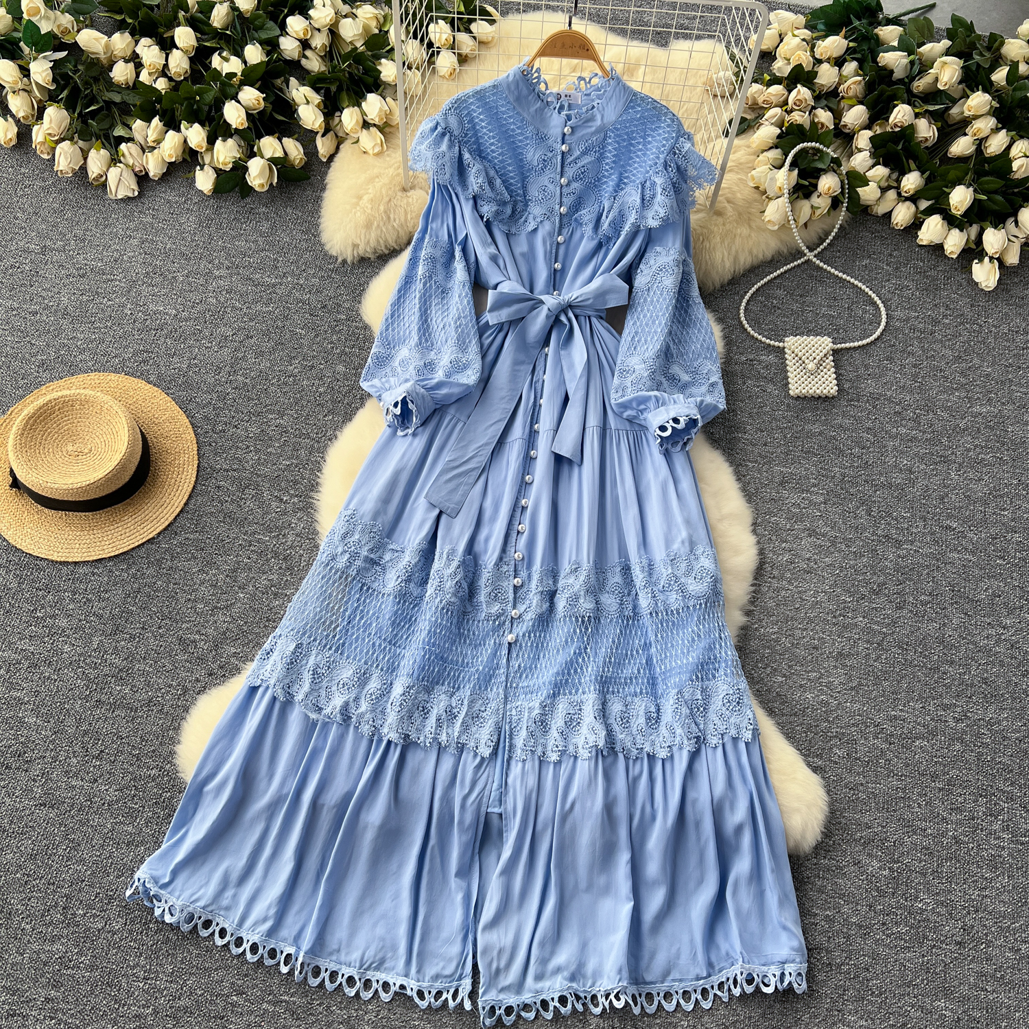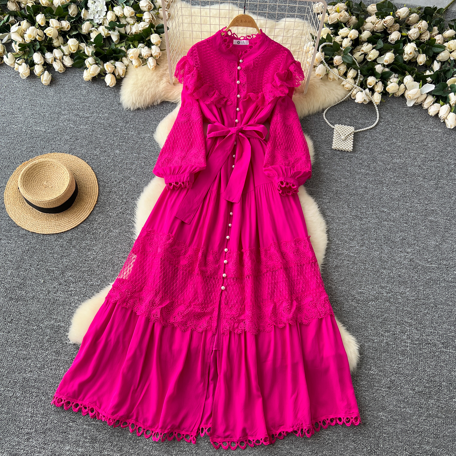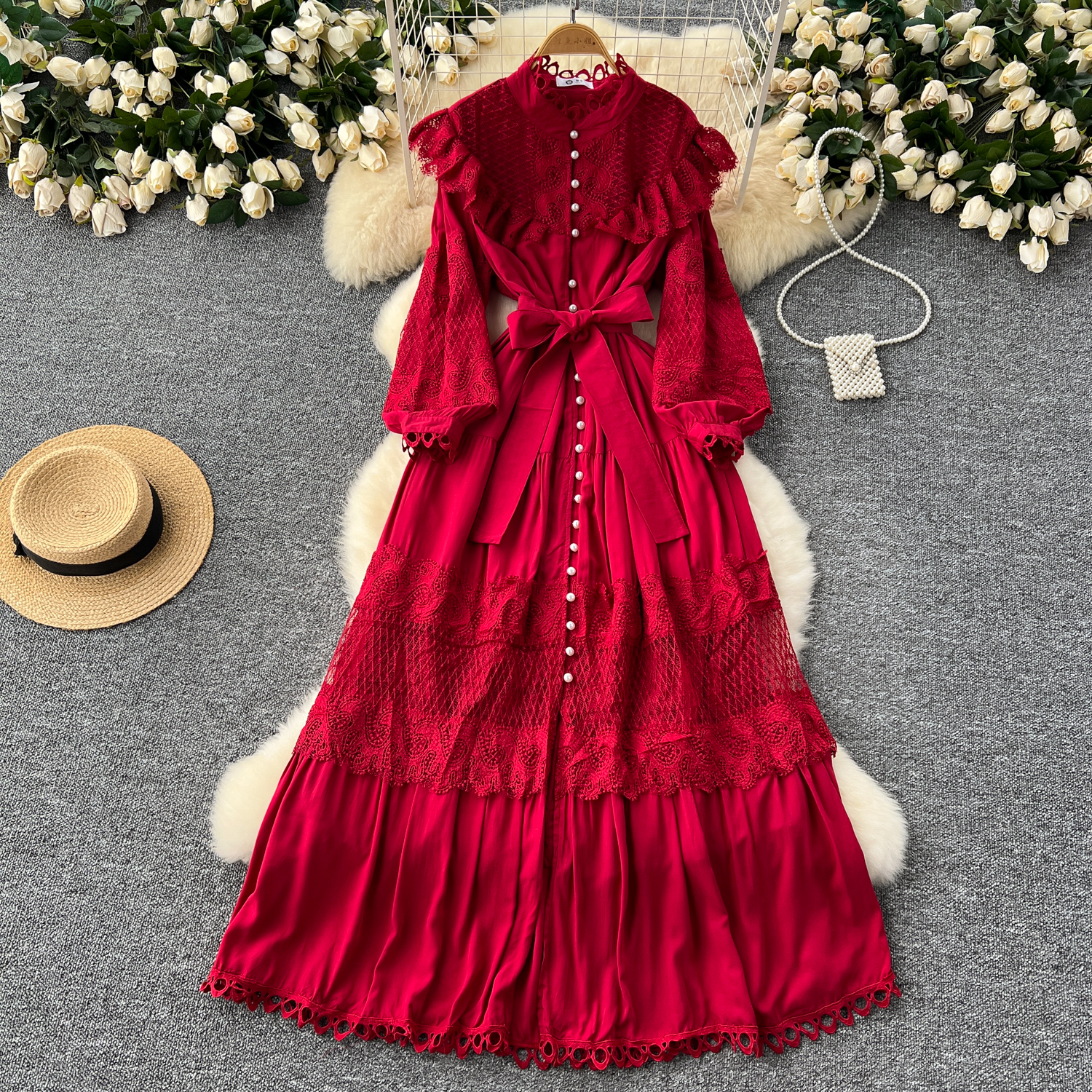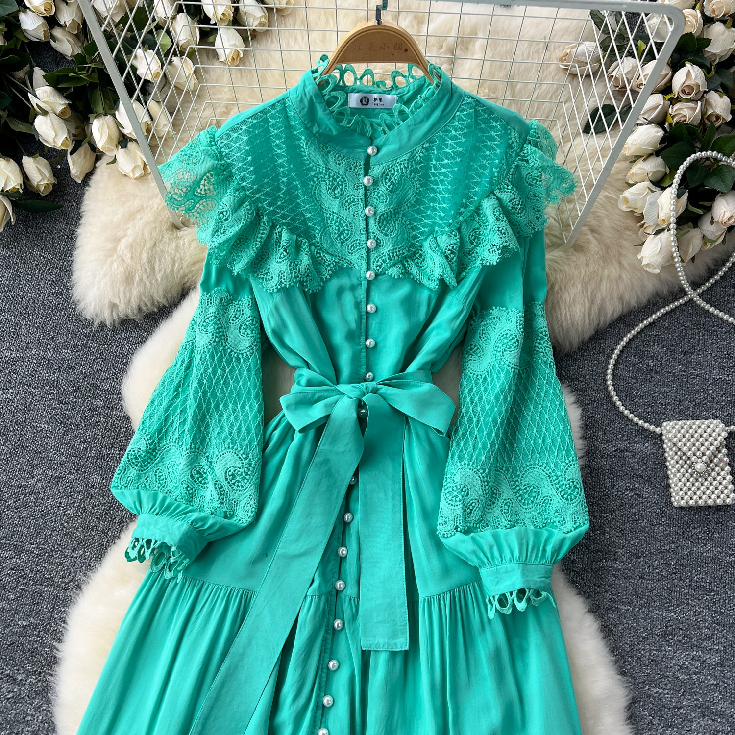 Vintage Vogue French Court Maxi Dress with Lace Panels and Ruffles