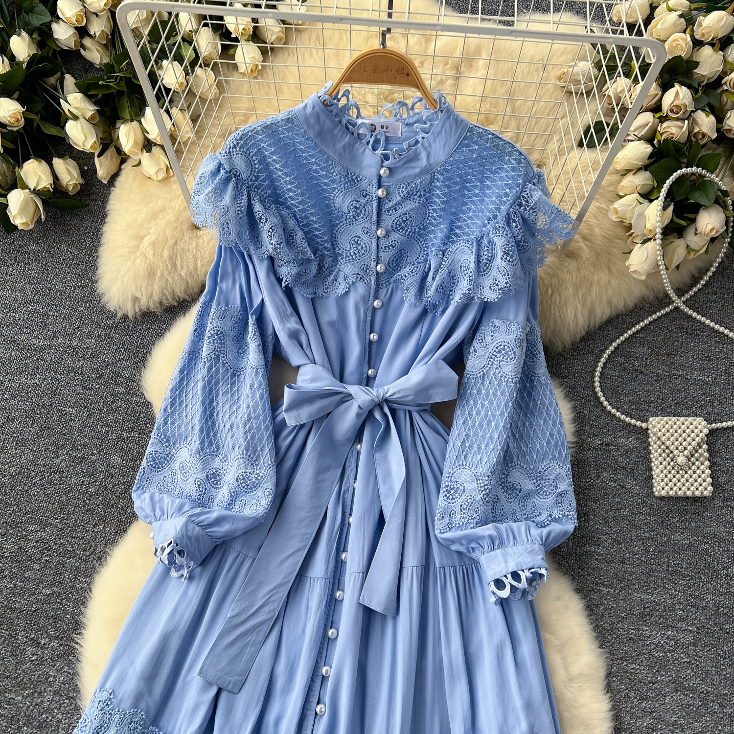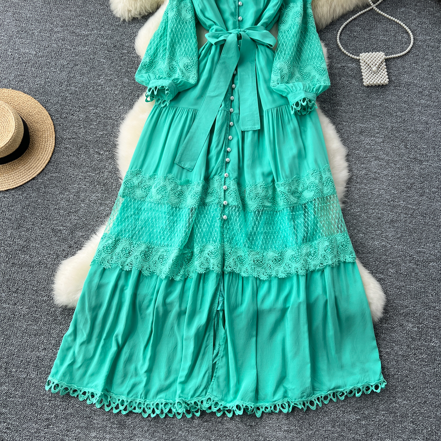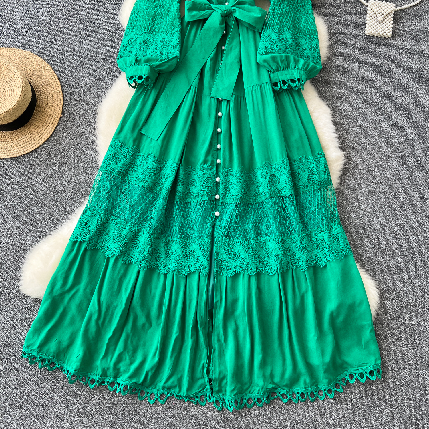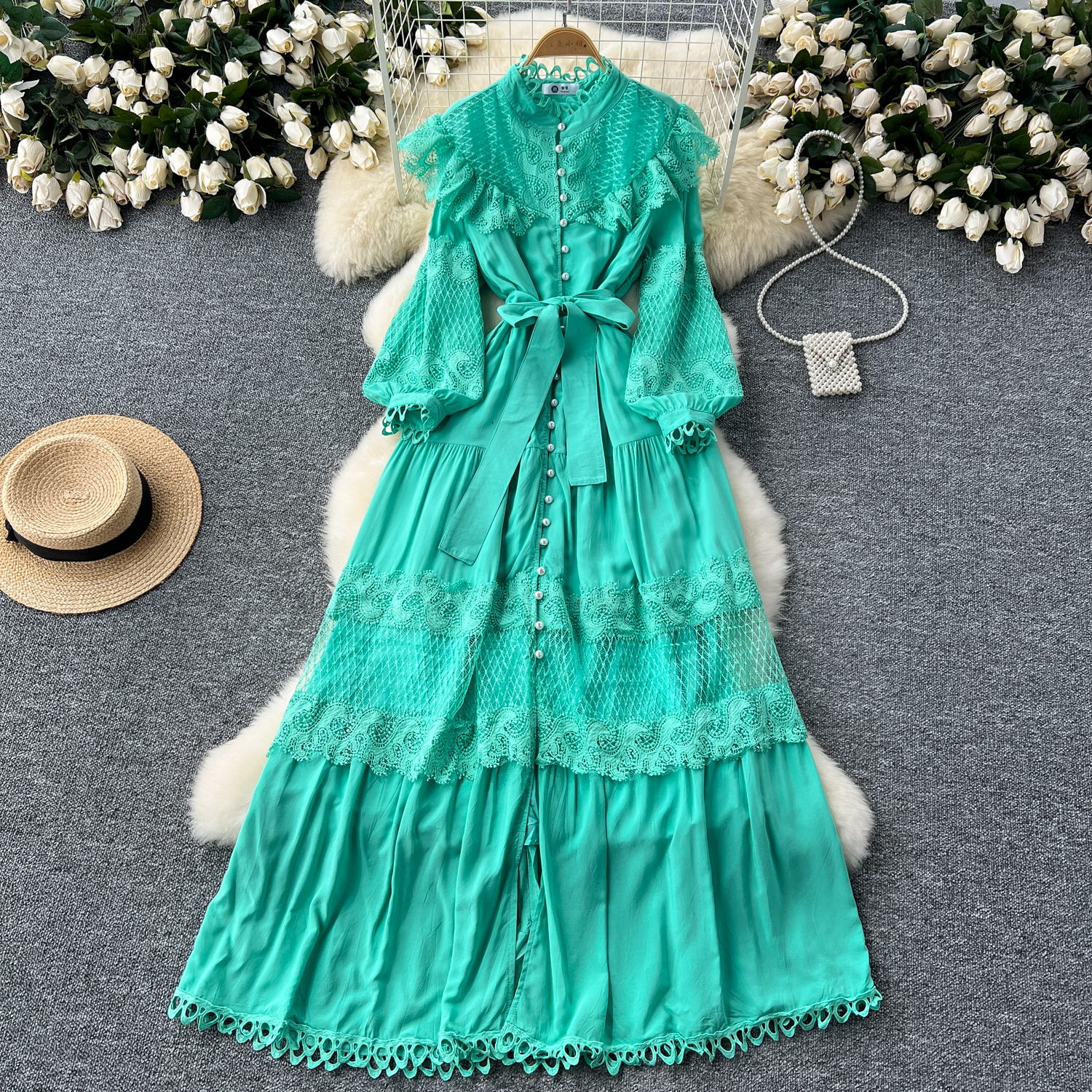 Vintage Vogue French Court Maxi Dress with Lace Panels and Ruffles